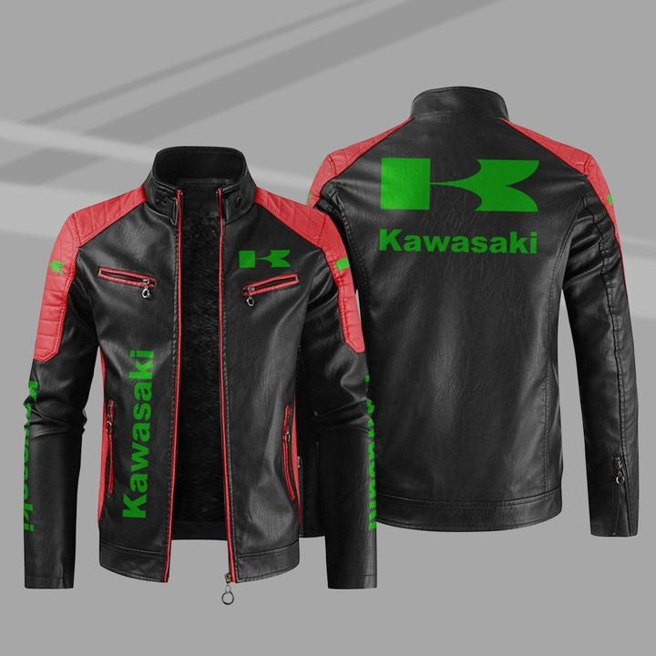 [유럽 크기 얇은] 가와사키 오토바이 가죽 코트 2022 국경 유럽 및 미국 플러스 사이즈 남성 PU 가죽 코트 플러스스토어 가기