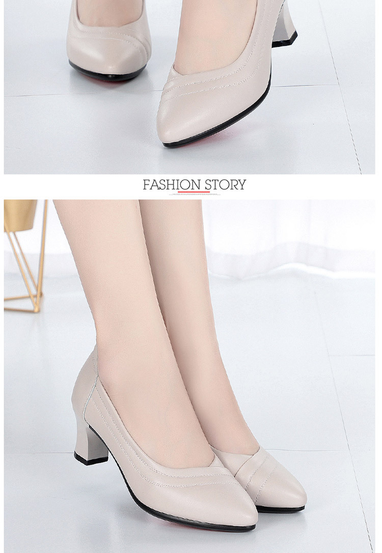 봄과 가을의 뾰족한 발가락 얕은 입 유행 편안한 경량 통근 매일 청키 한 발 뒤꿈치 편안한 엄마 여성 신발