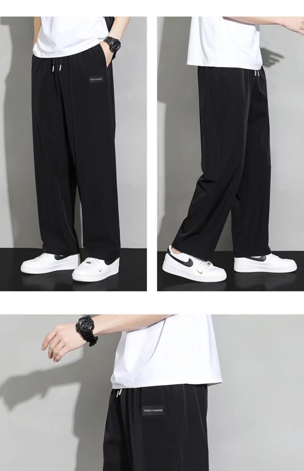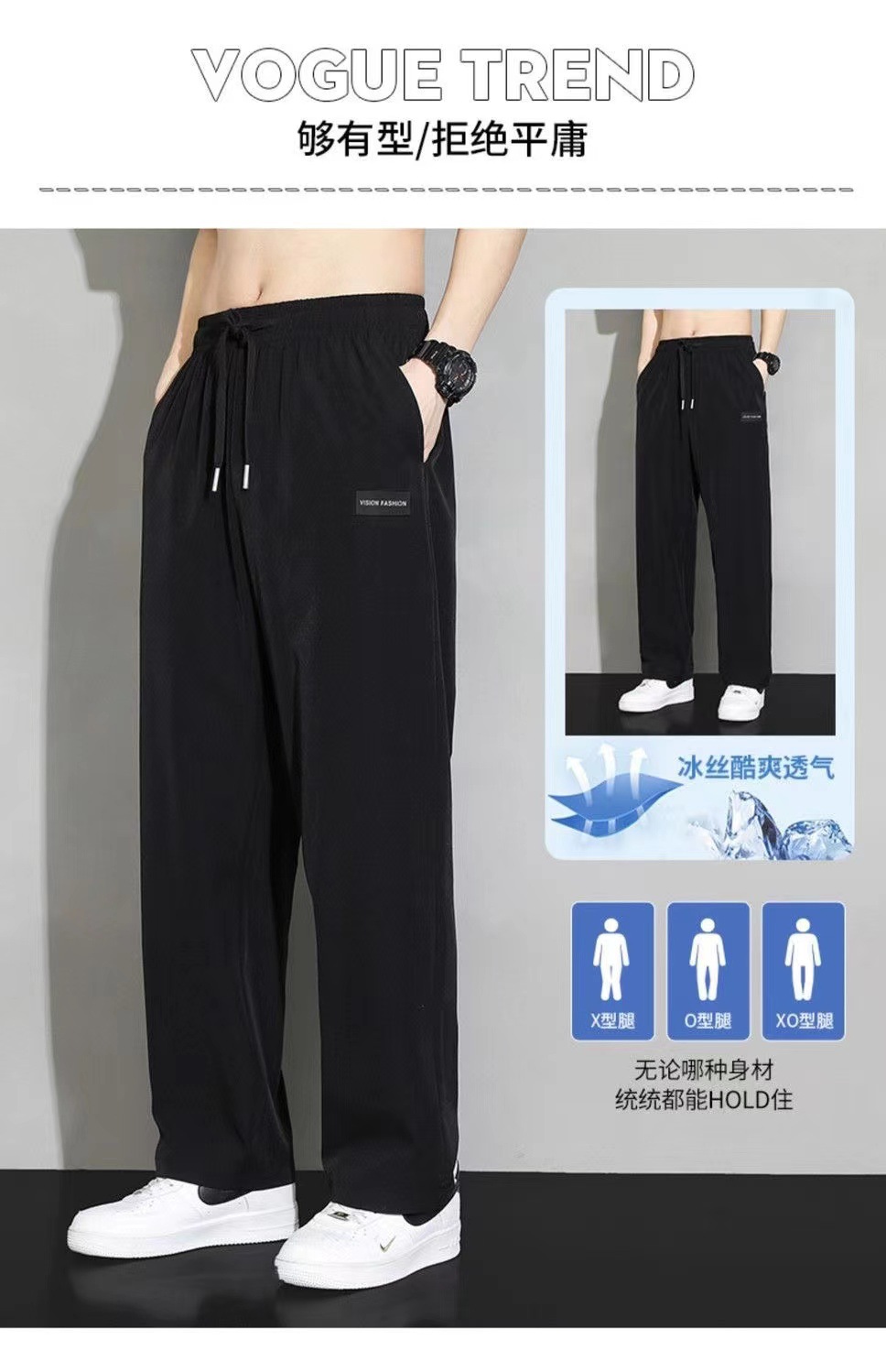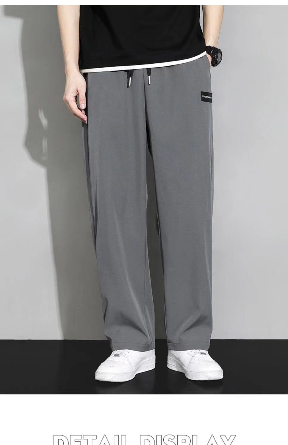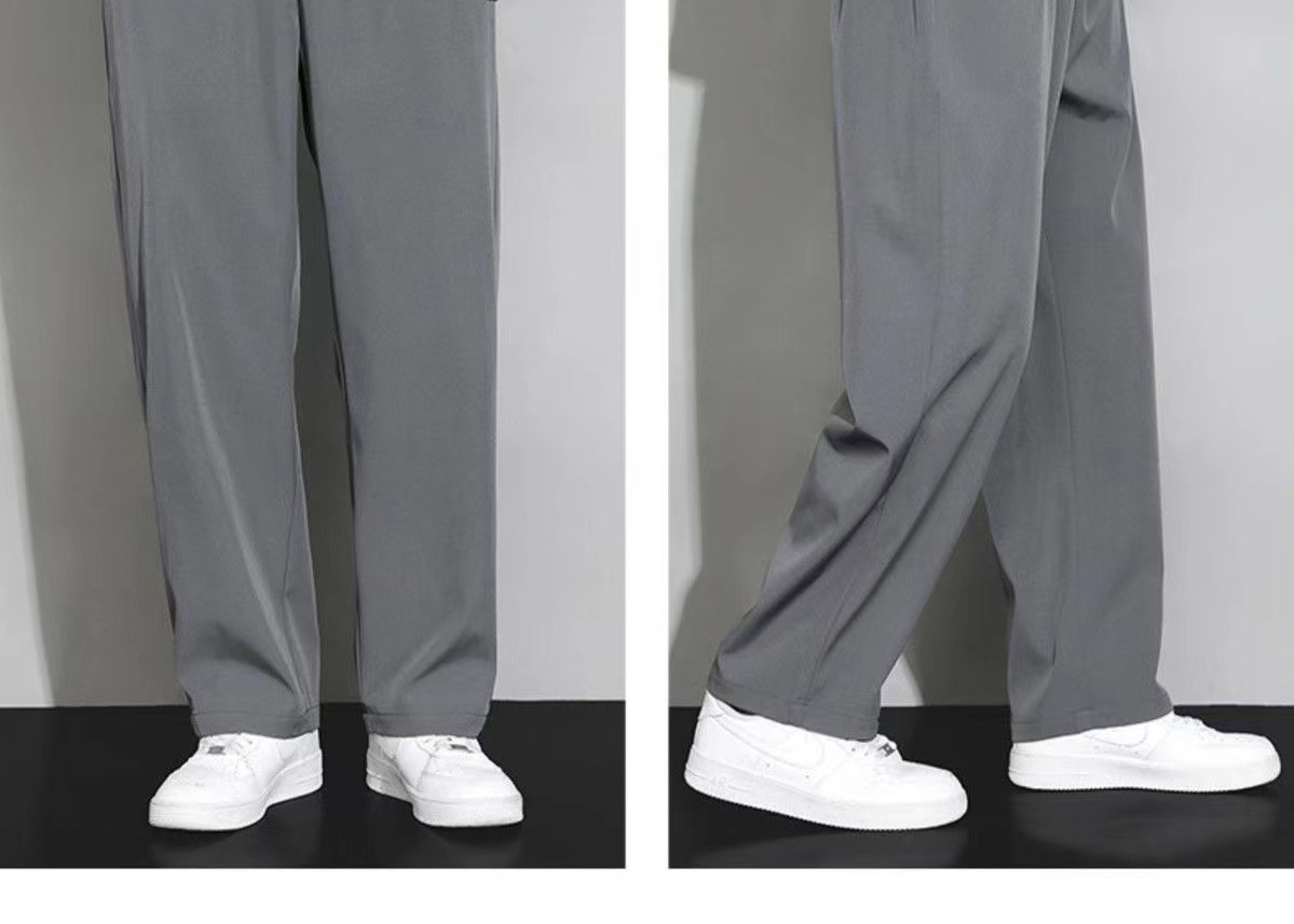 아이스 실크 스트레이트 바지 남자 여름 얇은 트렌디 브랜드 랩 느슨한 넓은 다리 빠른 건조 스포츠 캐주얼 바지