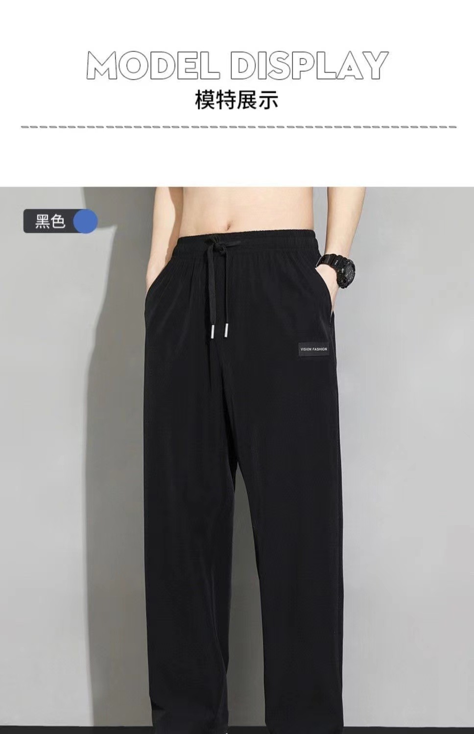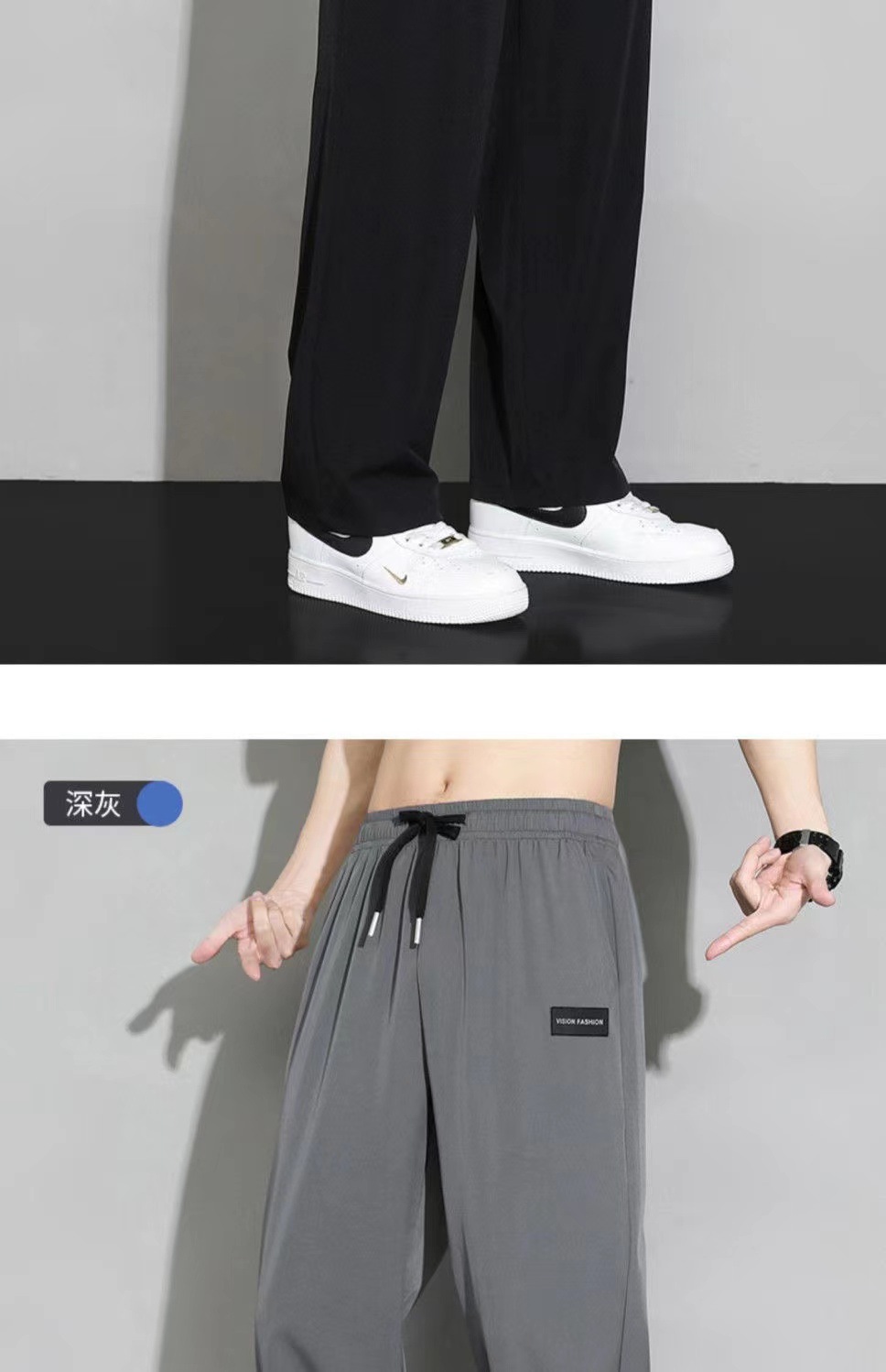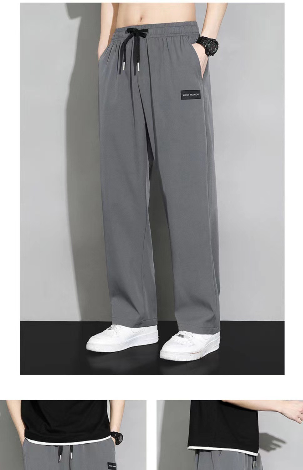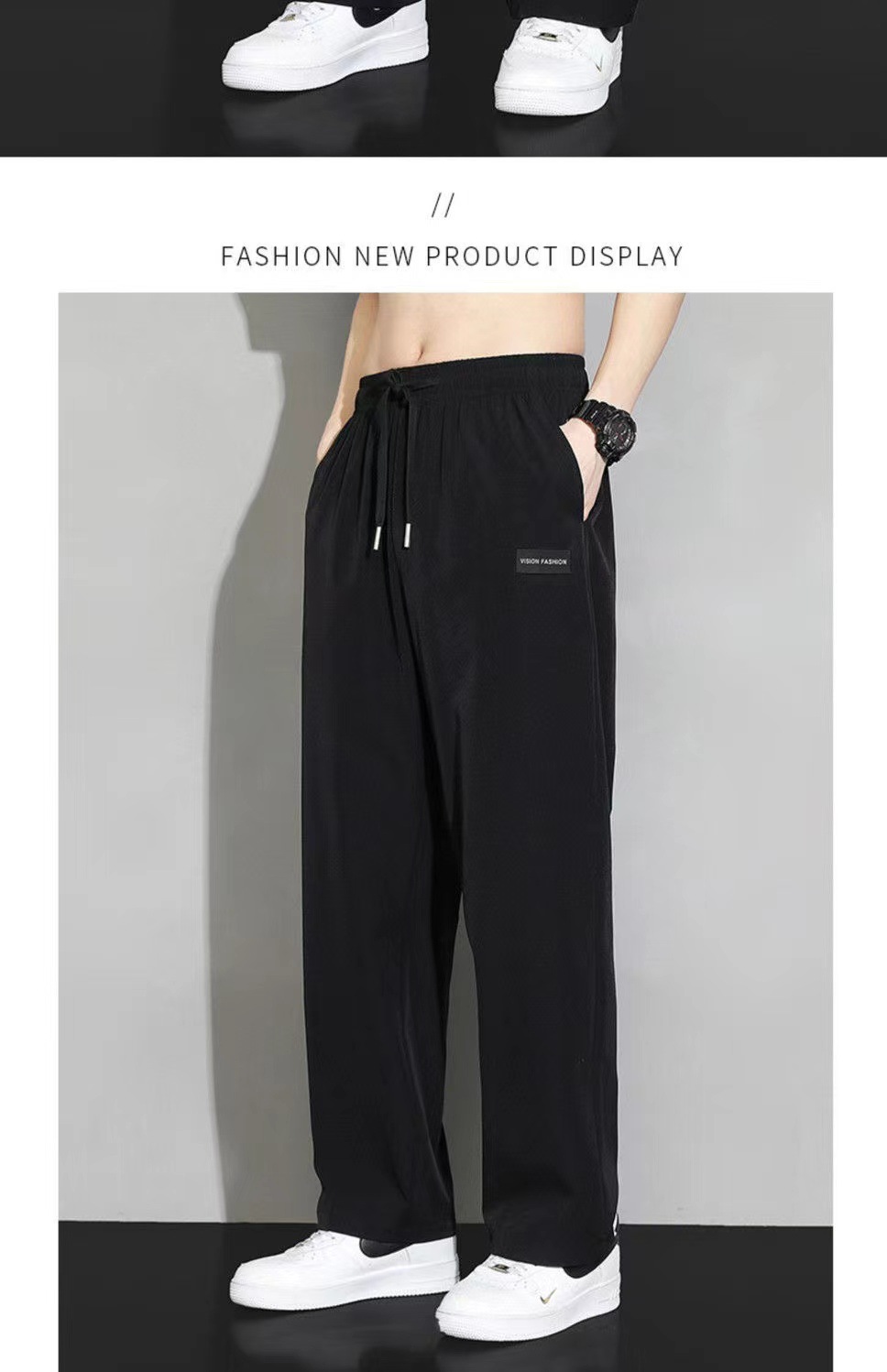 아이스 실크 스트레이트 바지 남자 여름 얇은 트렌디 브랜드 랩 느슨한 넓은 다리 빠른 건조 스포츠 캐주얼 바지스토어 가기