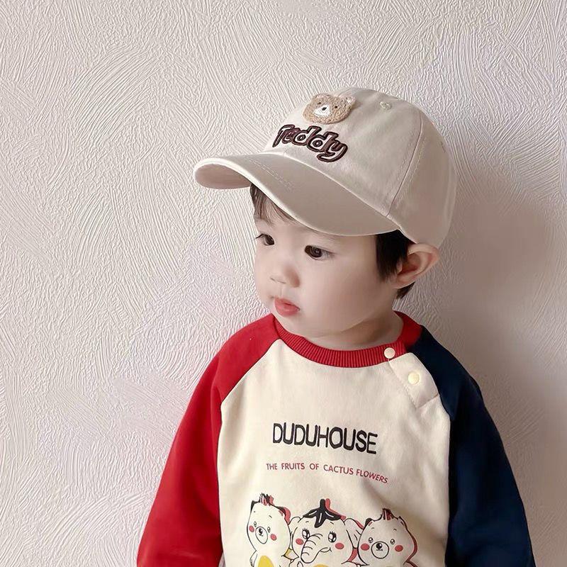 어린이 야구 모자, 남녀 아기용 자외선 차단 모자, 곰돌이 모자, 야외 봄 여름 나들이용, 만화 귀여운 아기 모자