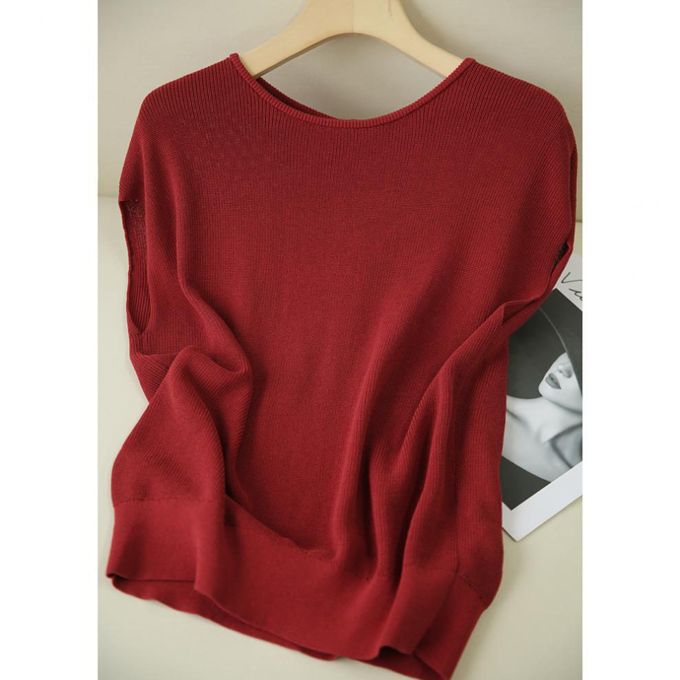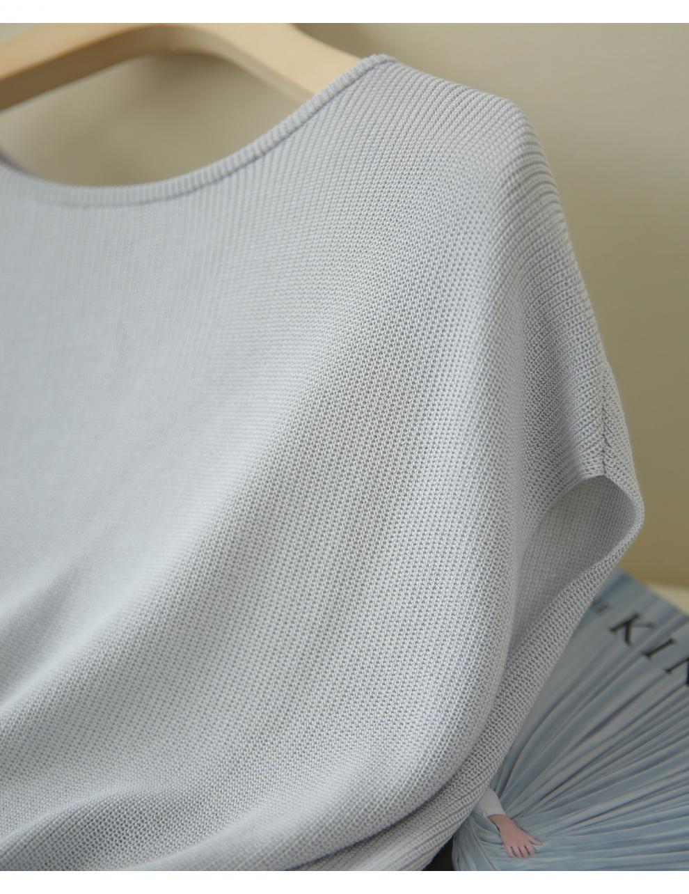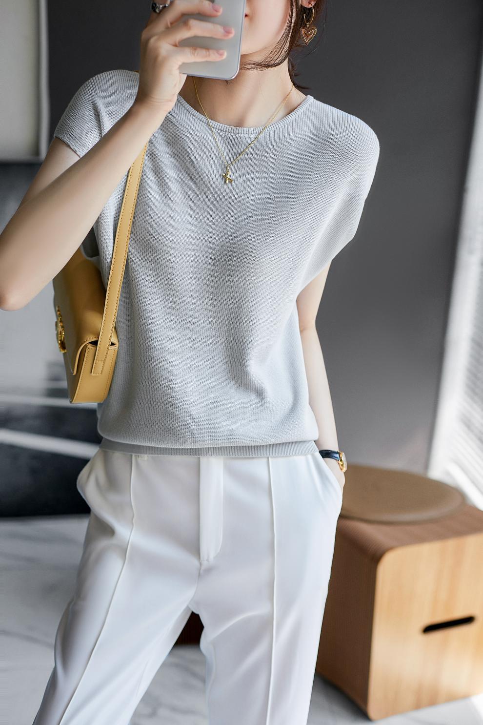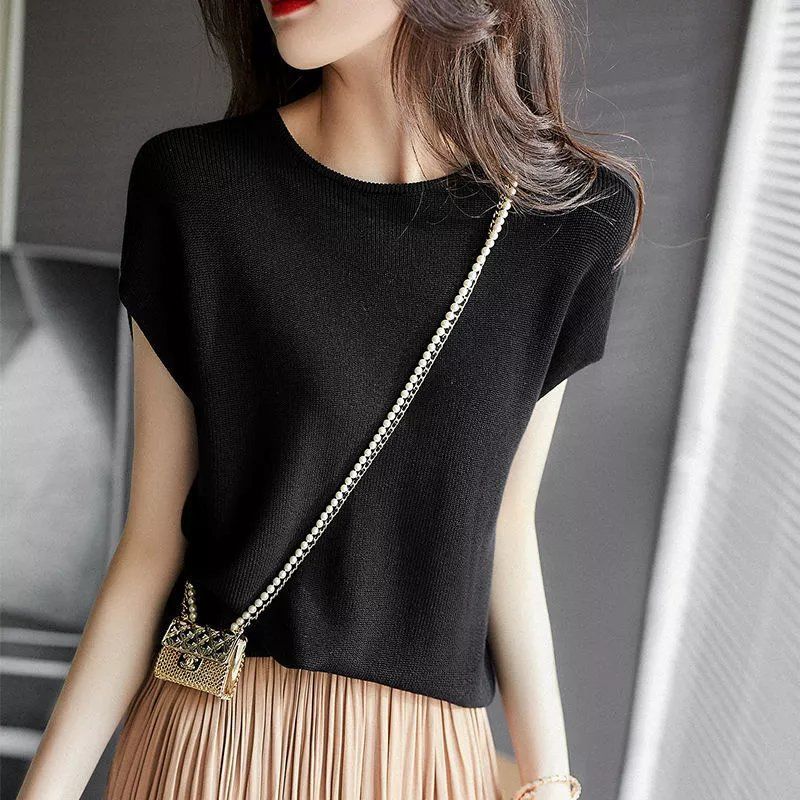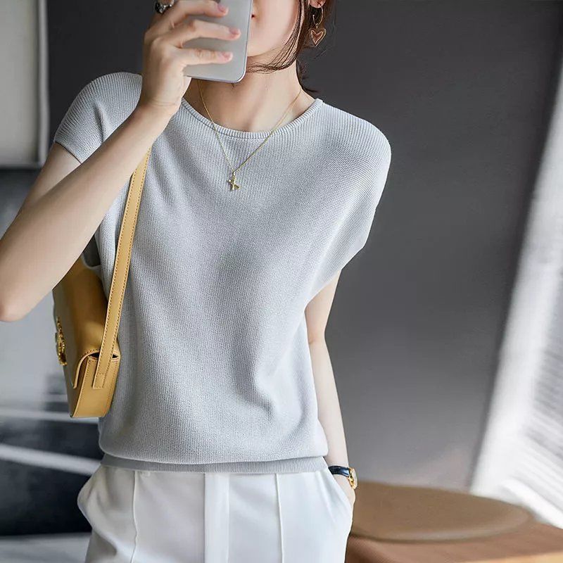 아이스 실크 반팔 여성용 티셔츠 드롭 숄더 스웨터 2024 여름 새로운 패션 올 매치 느슨한 서양식 쇼트 탑