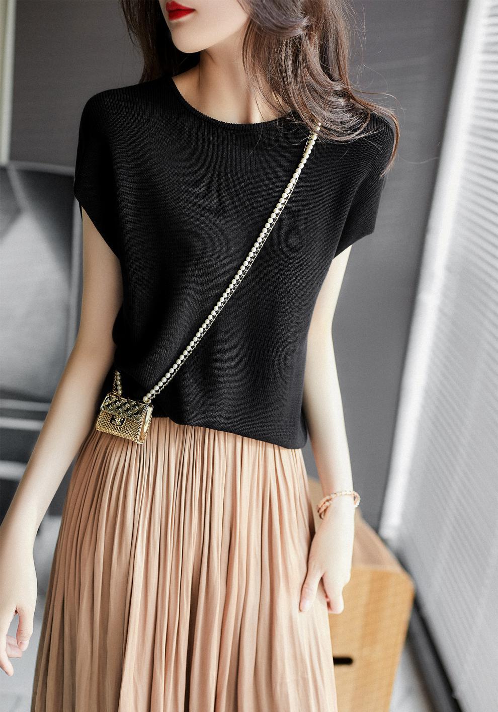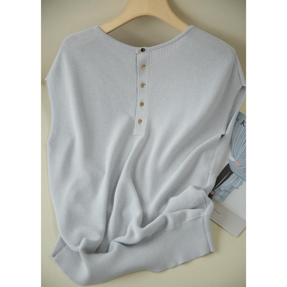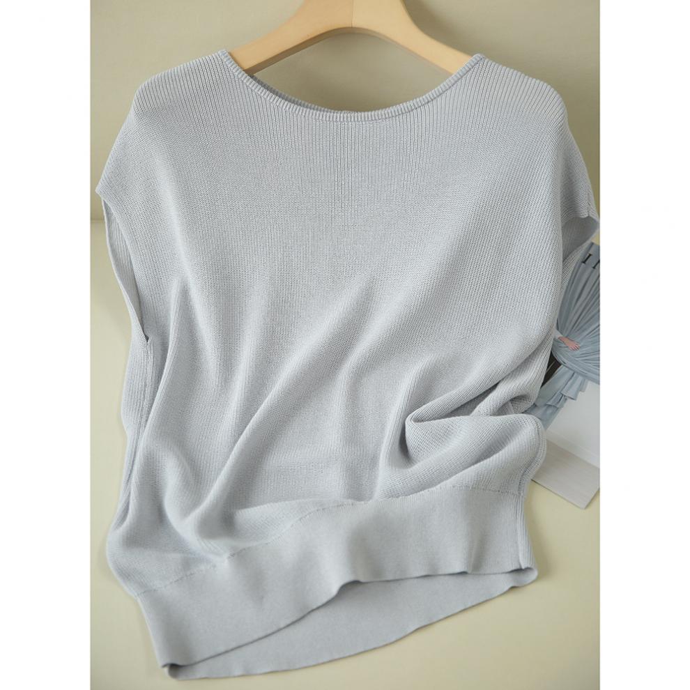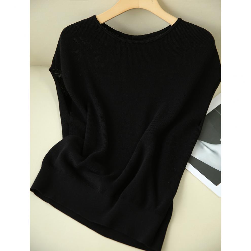 아이스 실크 반팔 여성용 티셔츠 드롭 숄더 스웨터 2024 여름 새로운 패션 올 매치 느슨한 서양식 쇼트 탑