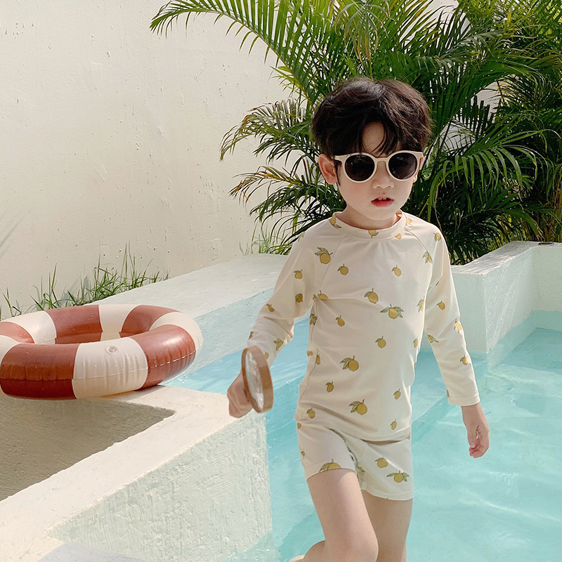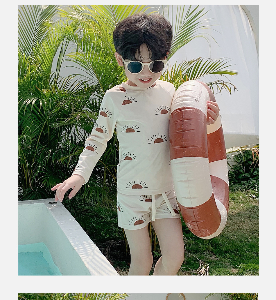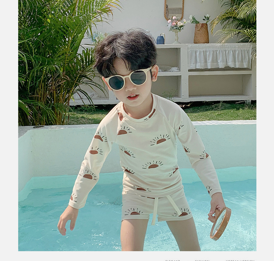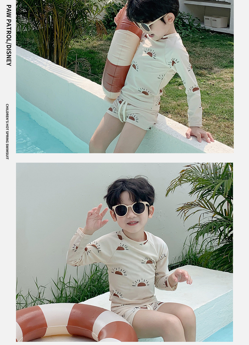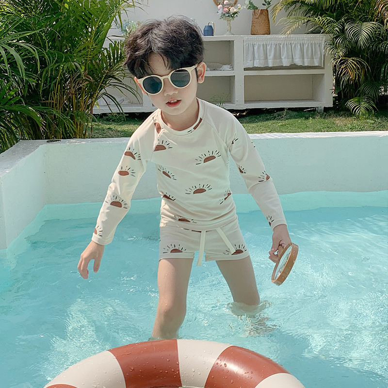 새로운 어린이 수영복 소년의 아기 선 스크린 만화 작은 태양 긴 소매 분할 해변 빠른 건조 여름 수영복스토어 가기