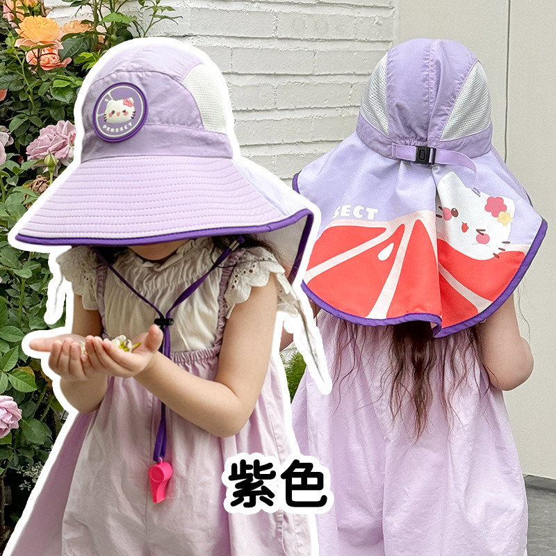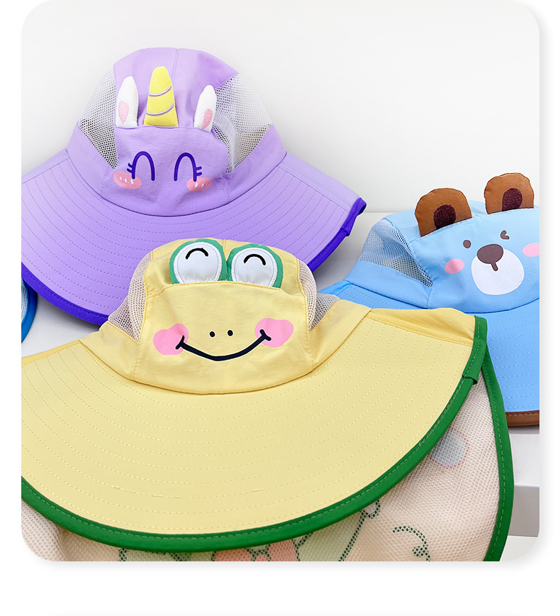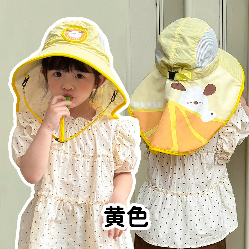 어린이 태양 모자 목 보호자 목도리 모자 여름 얇은 큰 브림 어부 모자 아기 선 스크린 모자 소년과 소녀