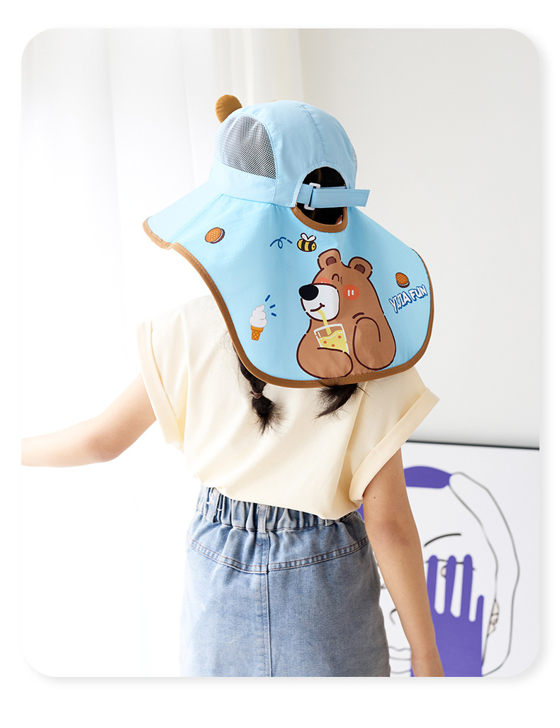 어린이 태양 모자 목 보호자 목도리 모자 여름 얇은 큰 브림 어부 모자 아기 선 스크린 모자 소년과 소녀스토어 가기