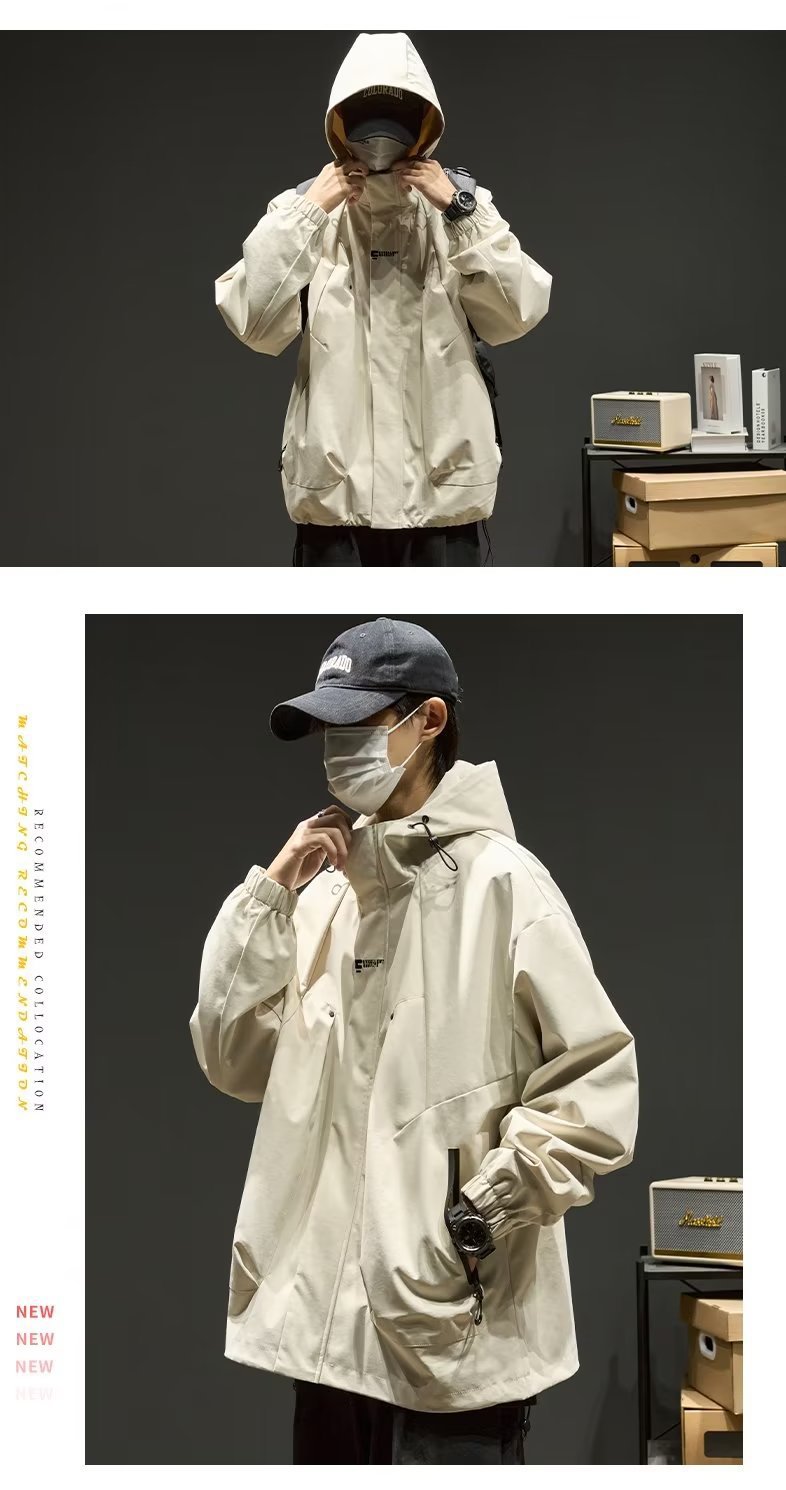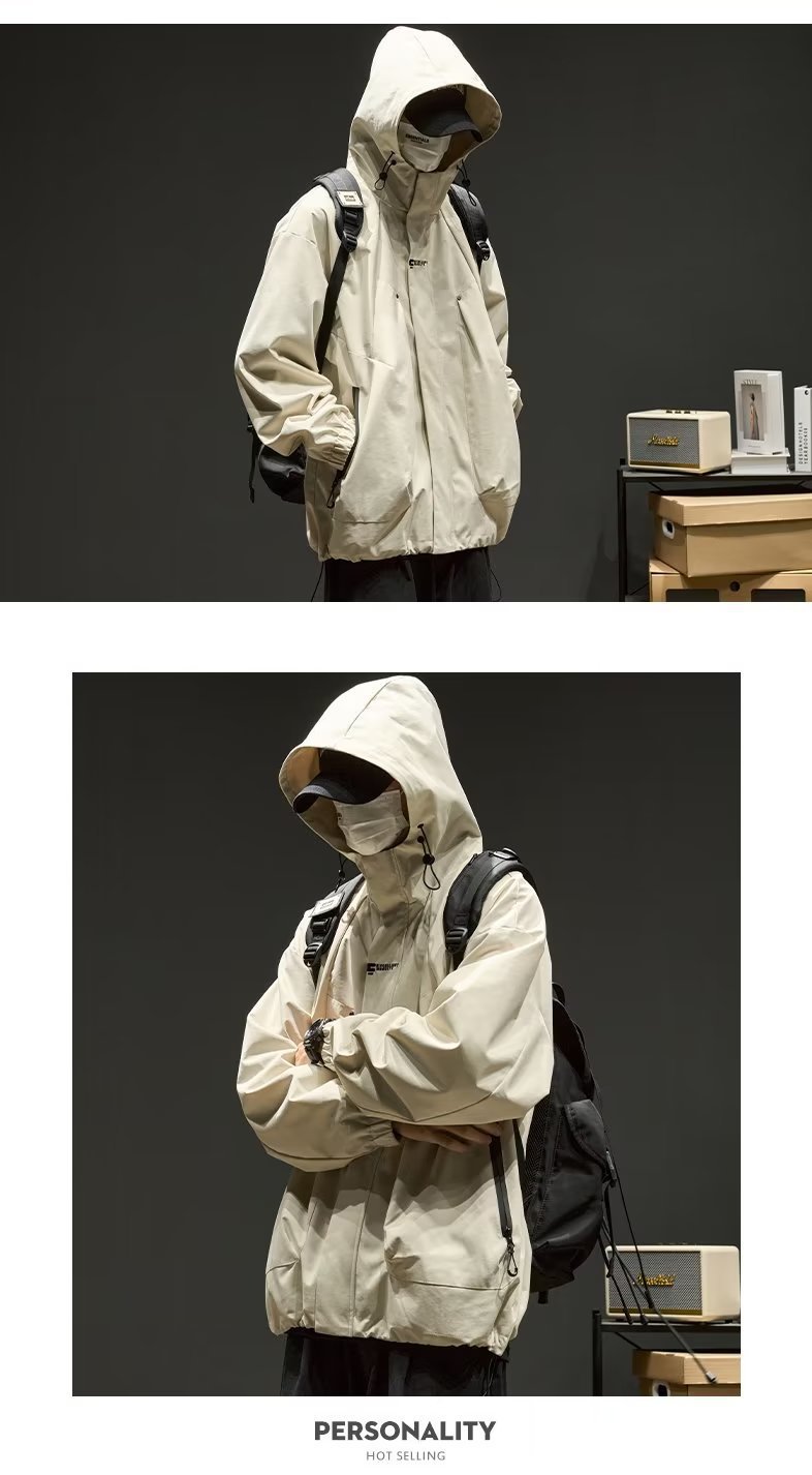 남성 일본식 패션 브랜드 헐렁한 후드 등산 재킷 남성 봄과 가을 미국식 캐주얼 작업복 재킷스토어 가기