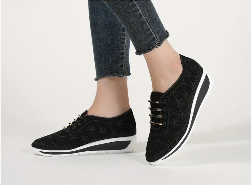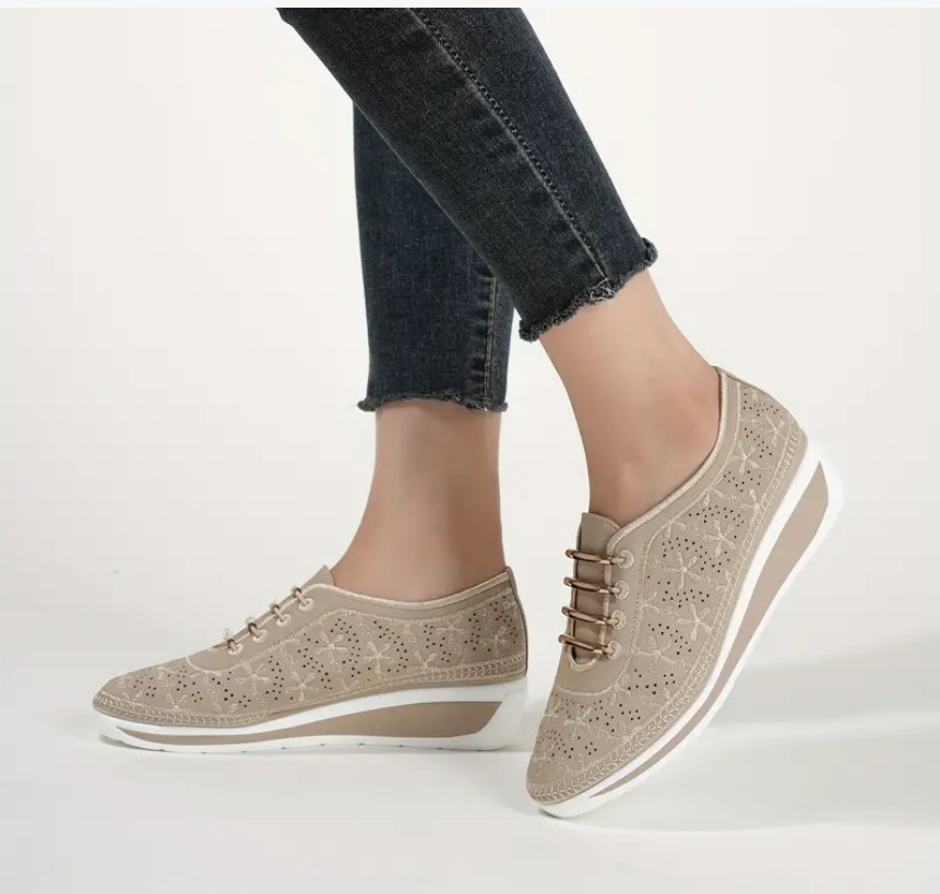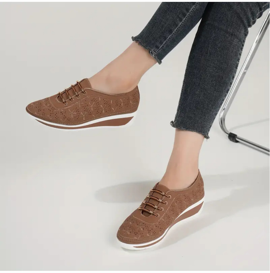 대외 무역 2024 새로운 봄 스타일 편안한 여성용 신발 웨지 힐 중공 레이스 업 캐주얼 스포츠 신발 대형 사이즈 재고 있음스토어 가기