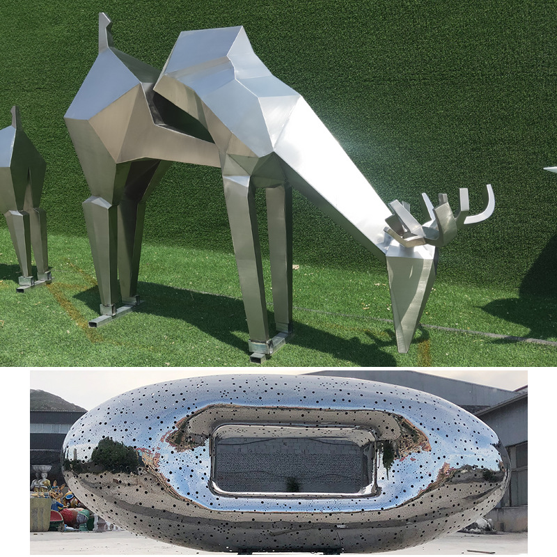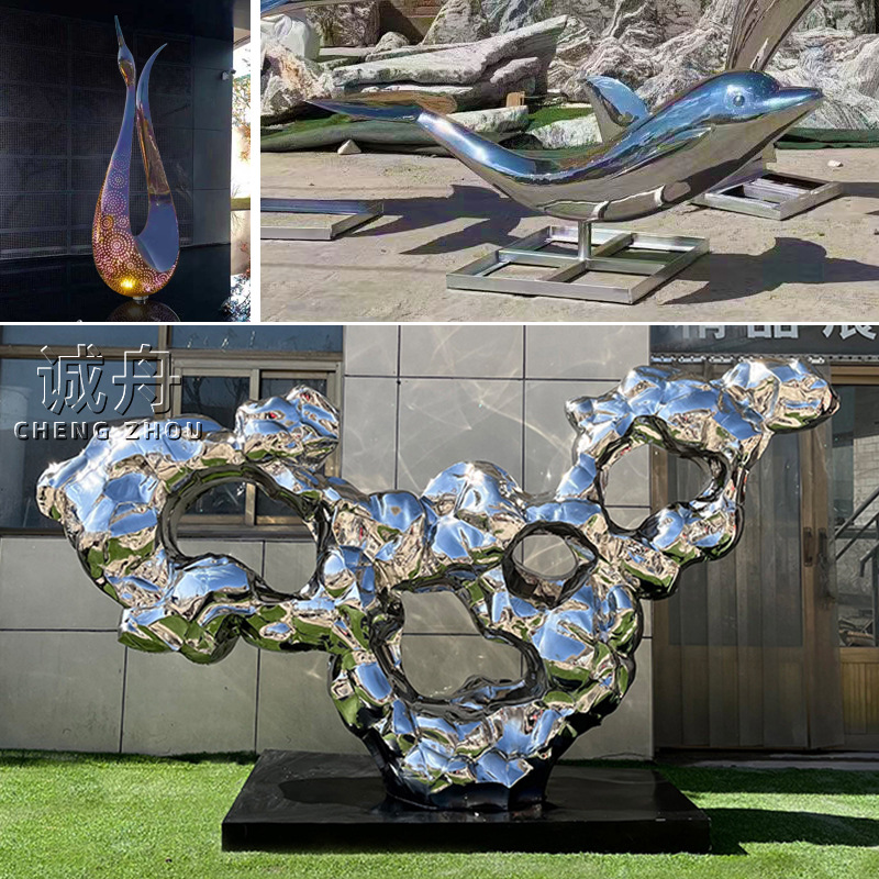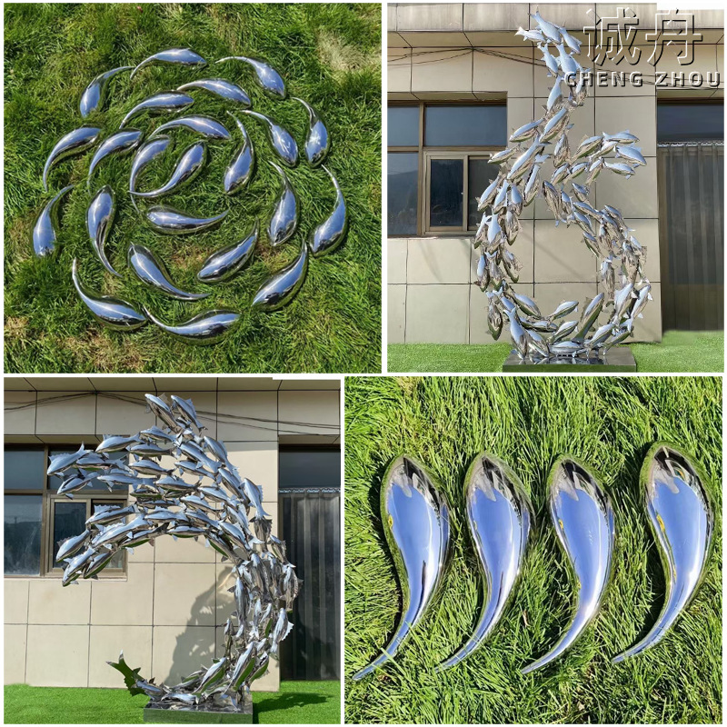 스테인리스 거울 조각 물고기 그룹 기하학적 동물 추상 예술 모델링 야외 정원 광장 흐르는 물 풍경 장식