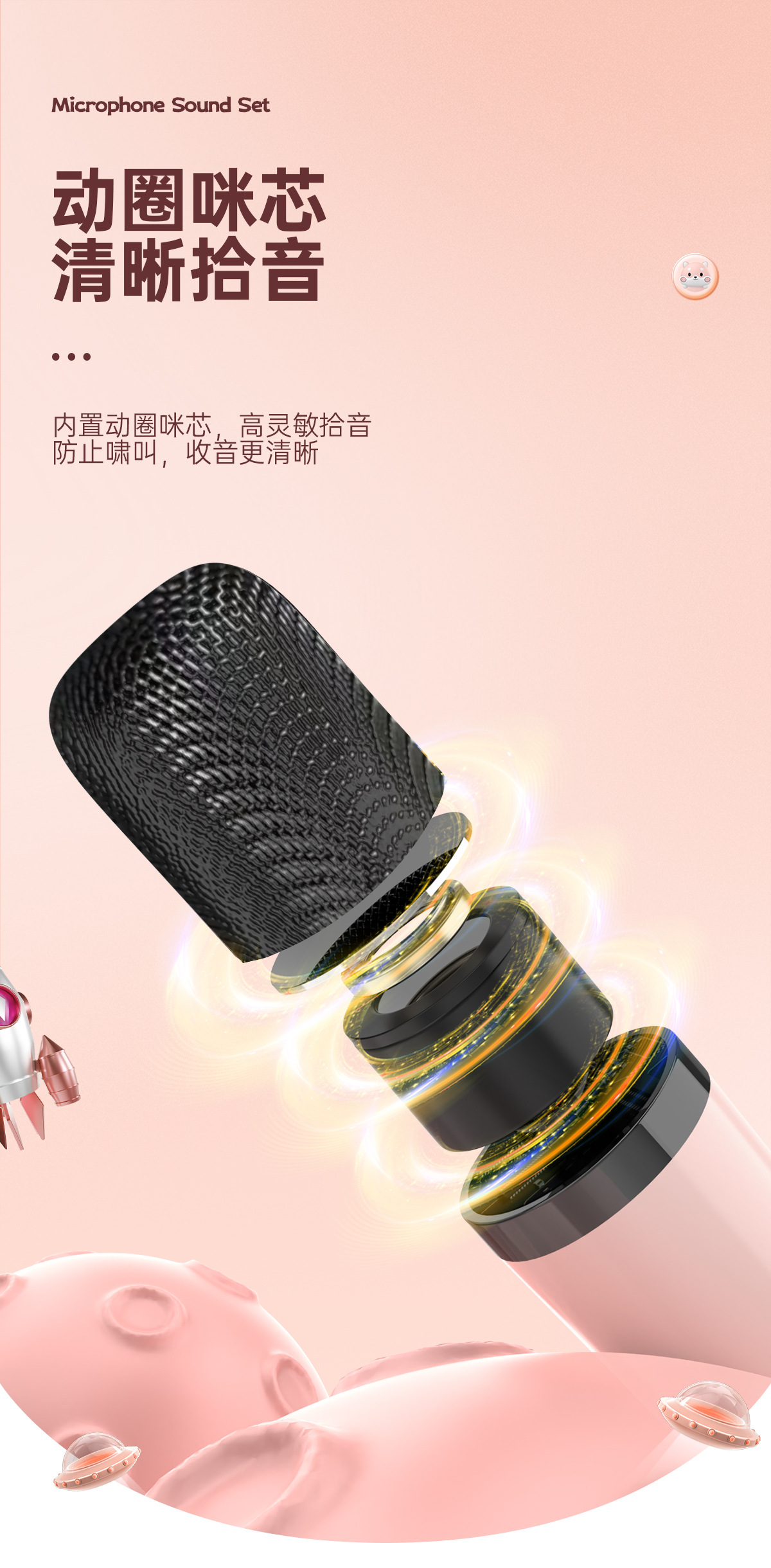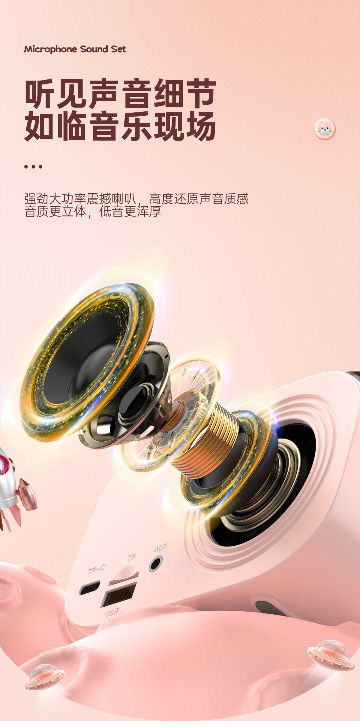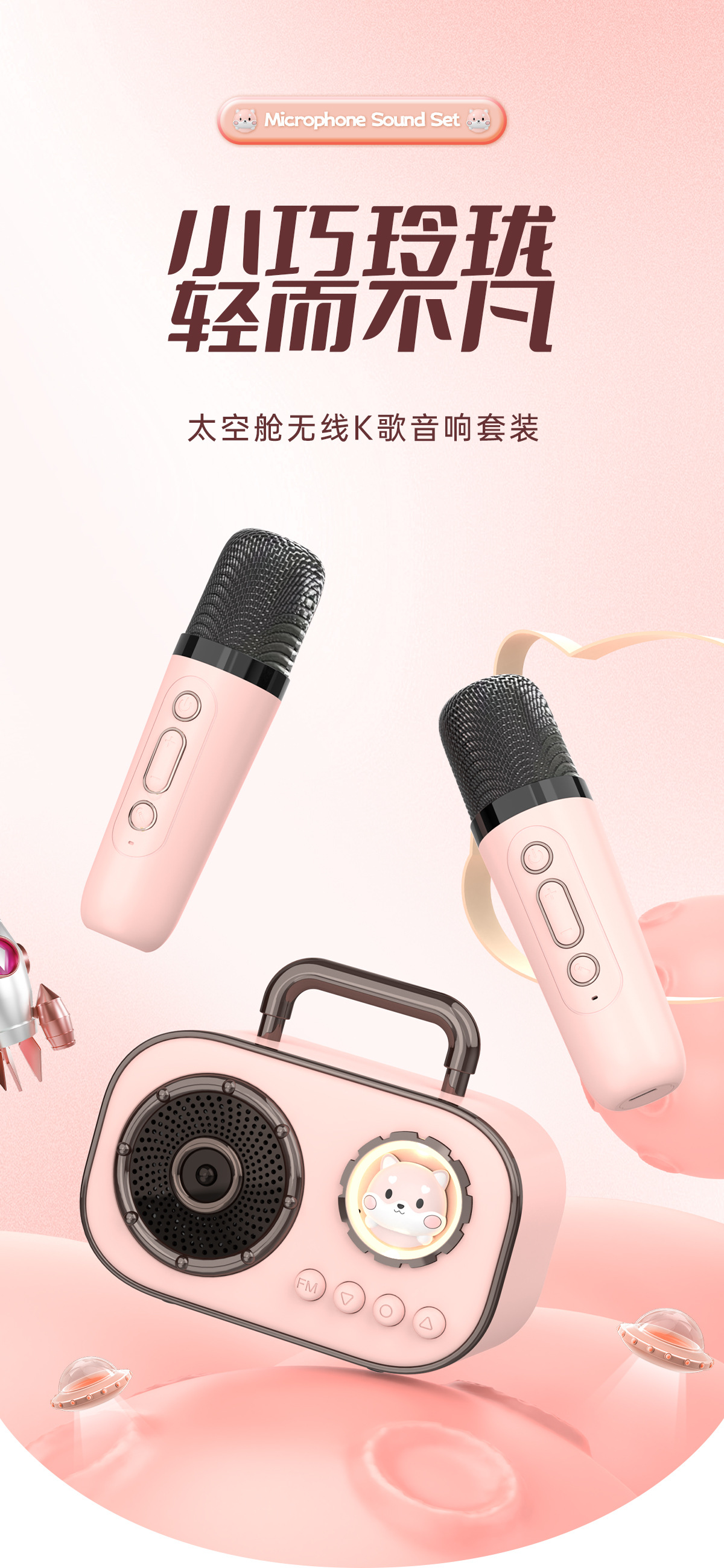 창조적 인 공간 캡슐 블루투스 오디오 휴대용 야외 노래 작은 가족 KTV 무선 스피커 마이크
