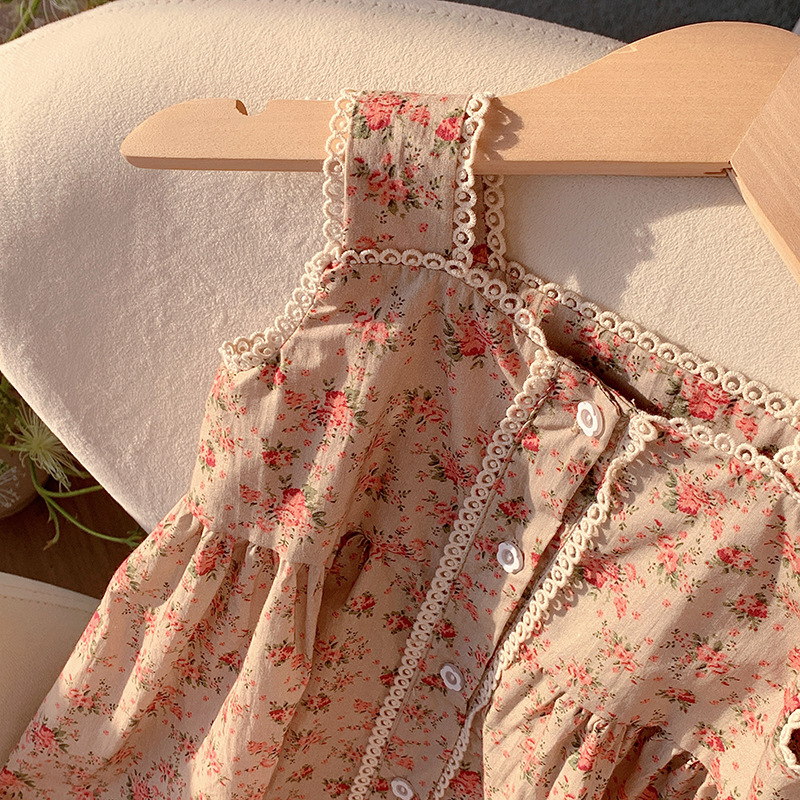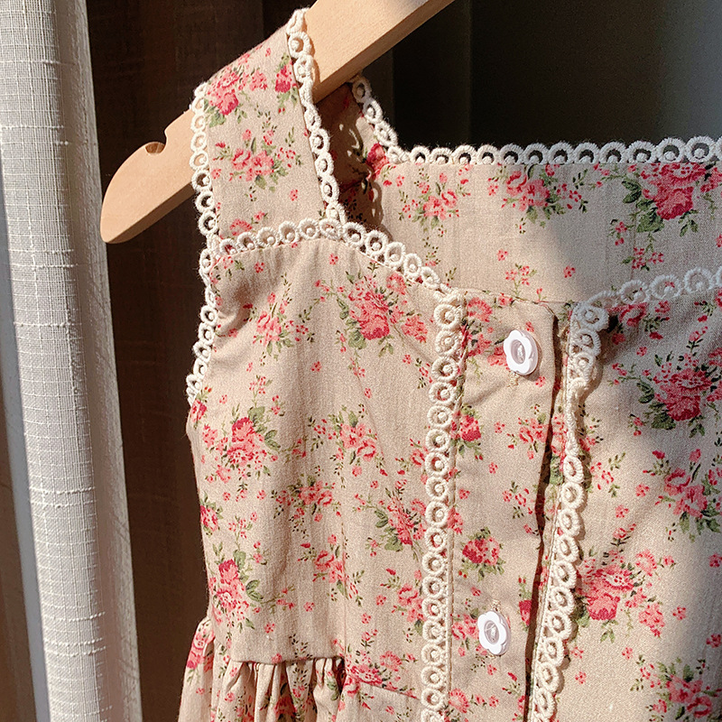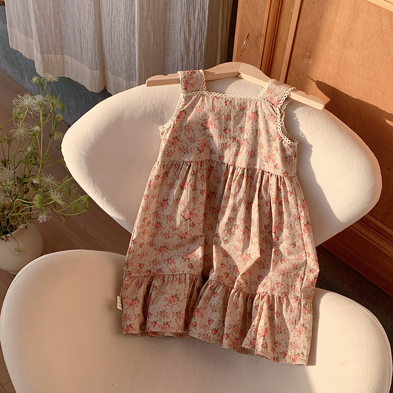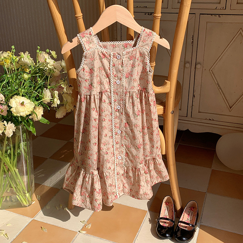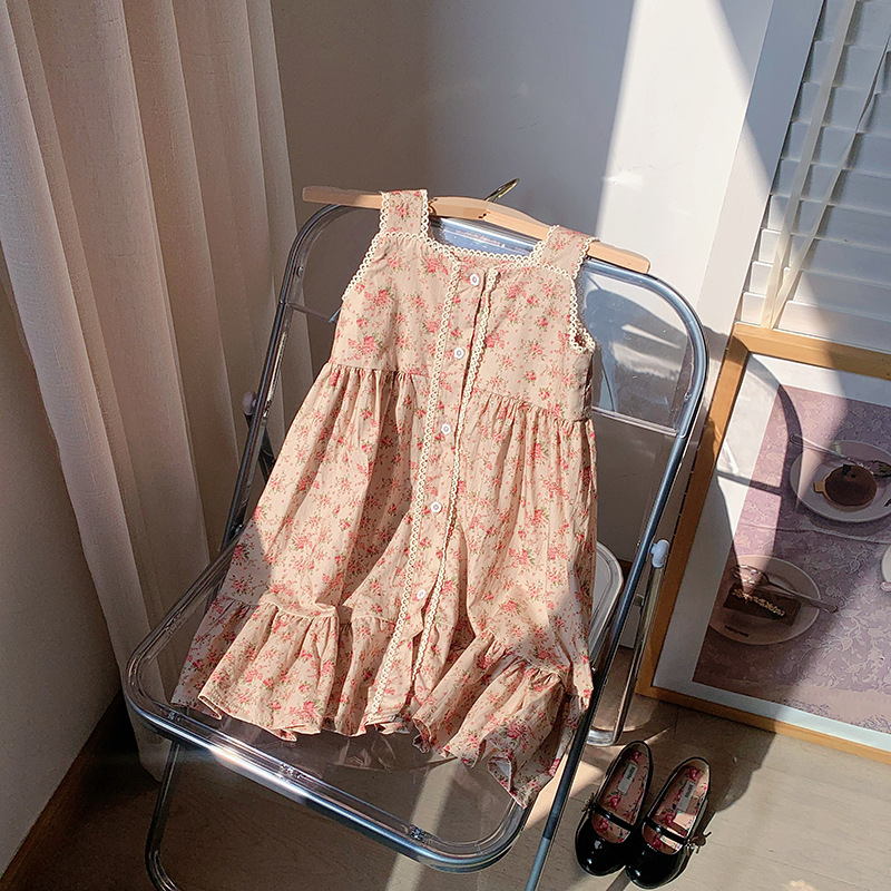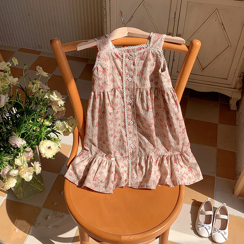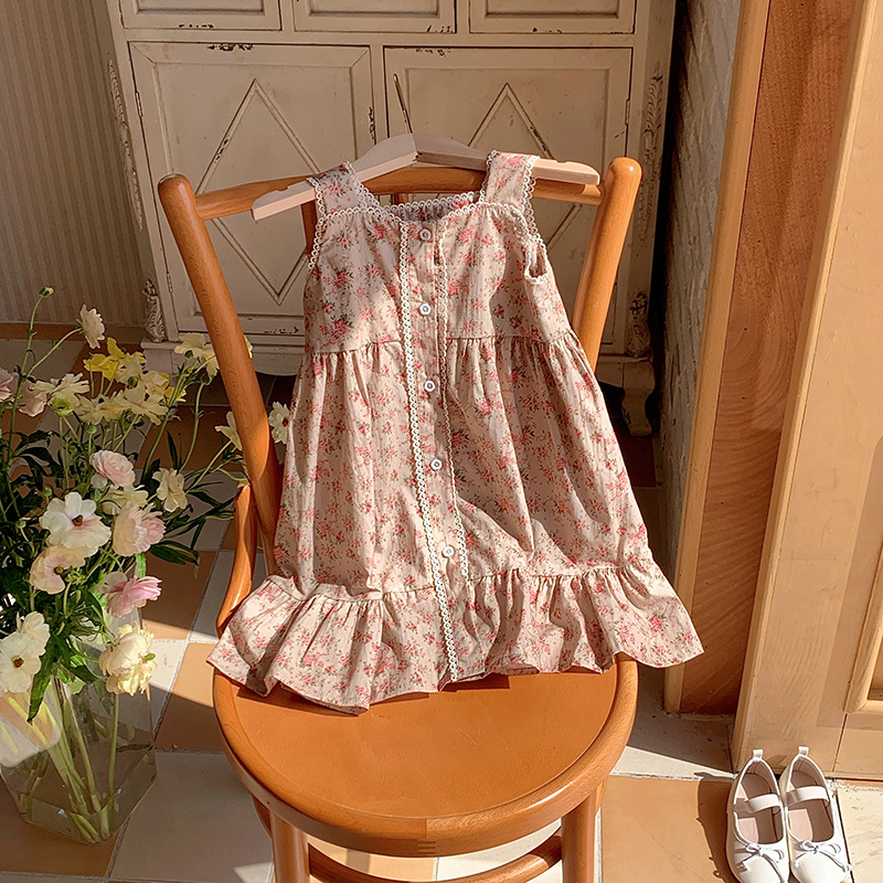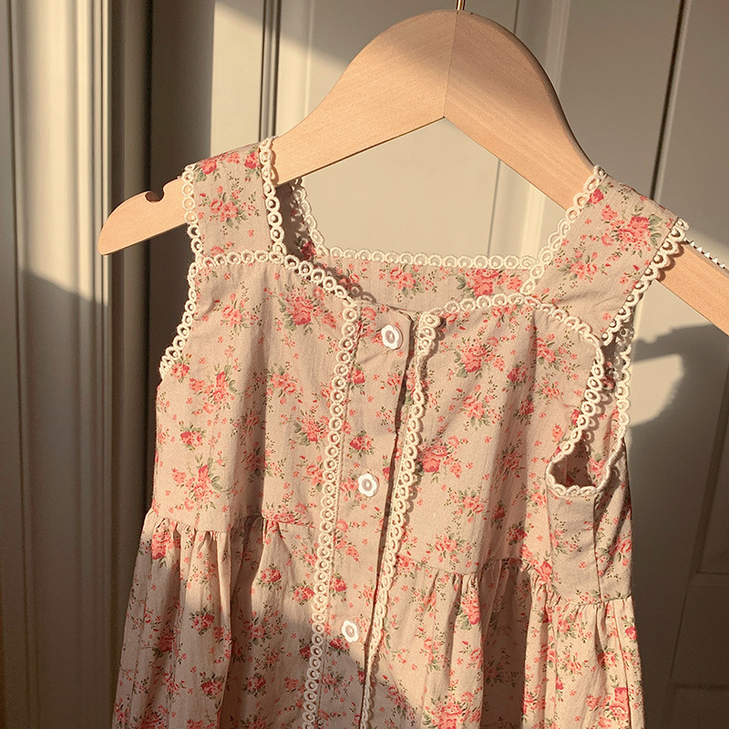 프렌치 레트로 레이스 여아 원피스 2025 여름 아동복 한국 스타일 꽃무늬 우아한 아동용 민소매 원피스스토어 가기