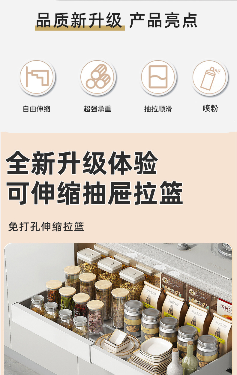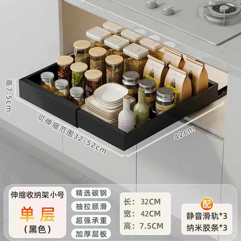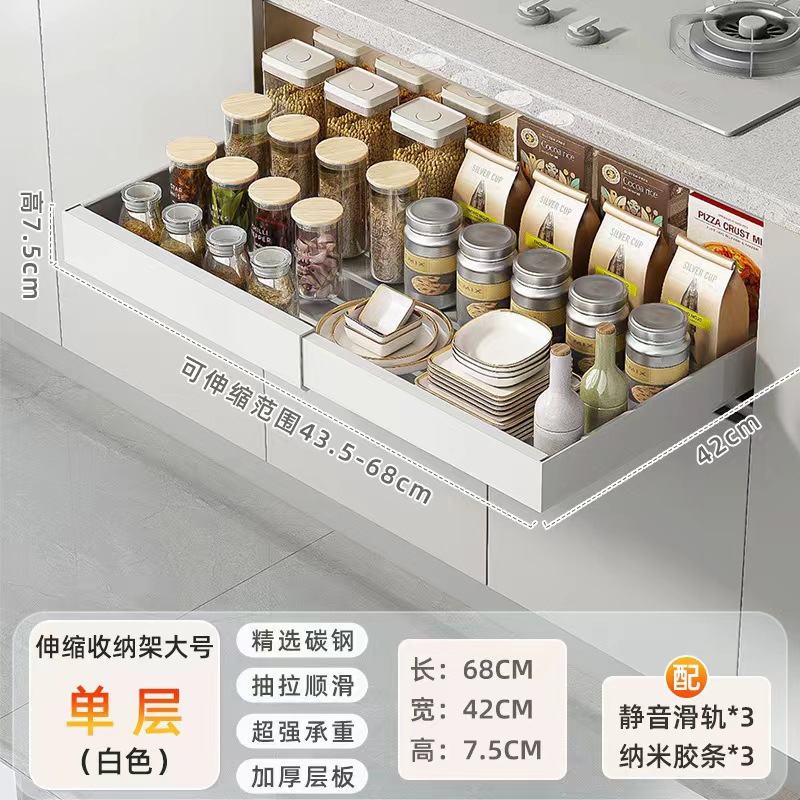 국경 간 개폐식 주방 서랍 형 그릇 바구니 보관함 조미료 병 보관 유물 펀치없는 풀 아웃 보관함스토어 가기