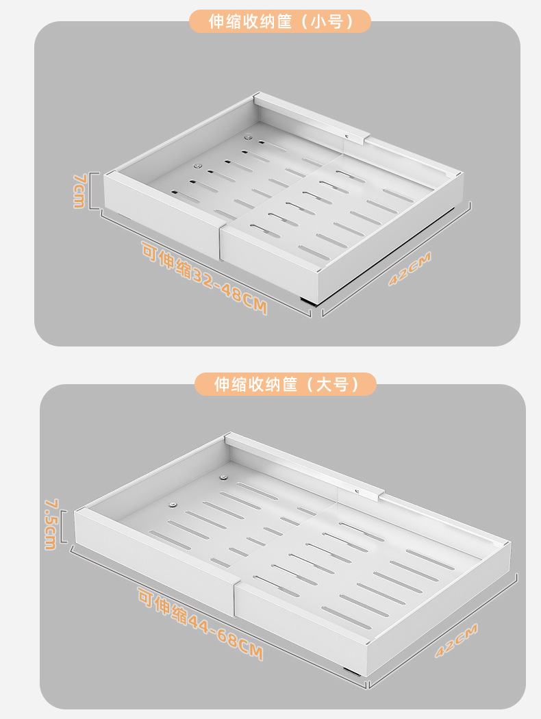 • 스토리지 트레이 텔레스코픽 * C 스몰 사이즈 32 52 (깊이 42*7.5) 흰색 * 더블 후크 크기 2 각