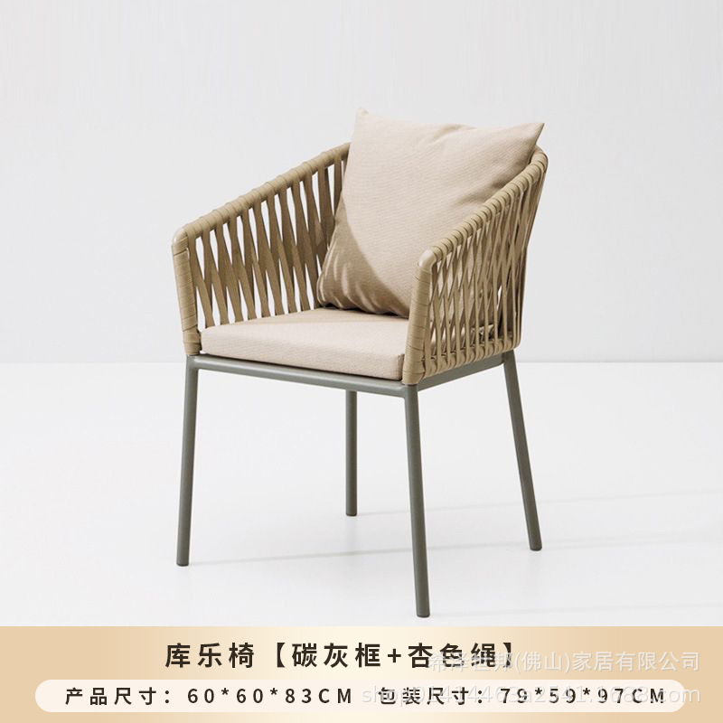 • 쿠레 웨빙 의자 [다크 그레이 프레임 + 살구색 로프 + 베이지 쿠션] - 맞춤 제작