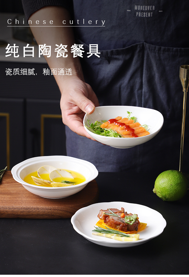 세라믹 접시 가정용 접시 창조적 인 그릇 판 화이트 플레이트 식기 요리 요리 과일 딤섬 그릇 차가운 접시
