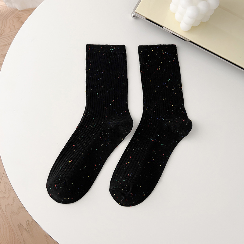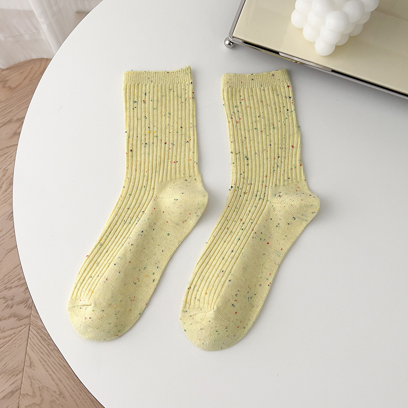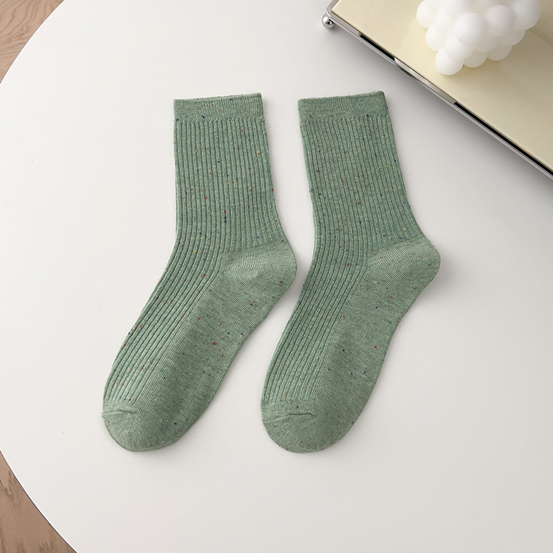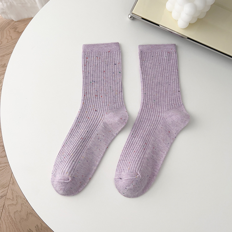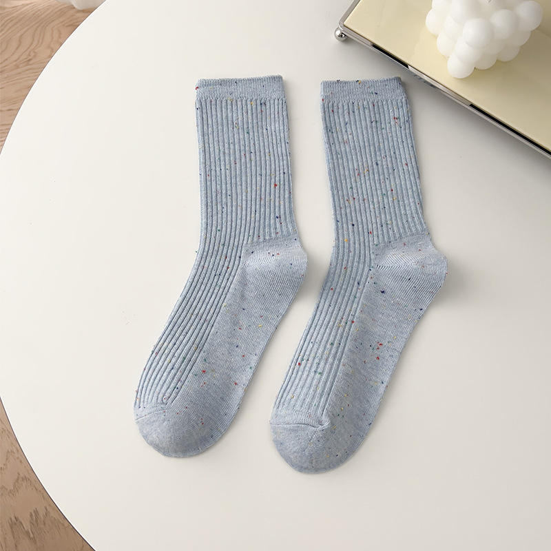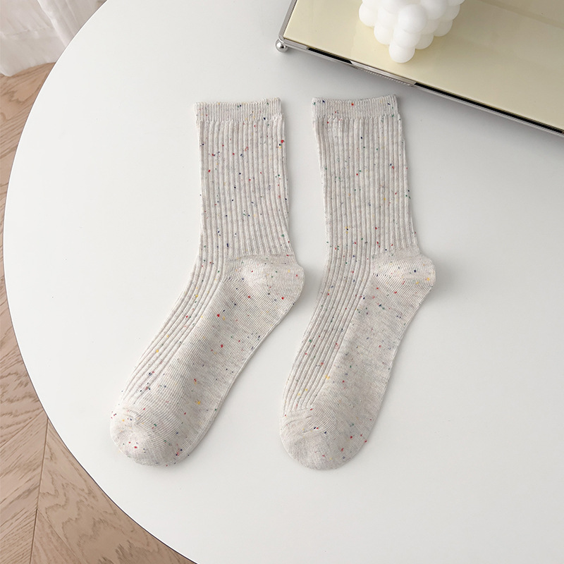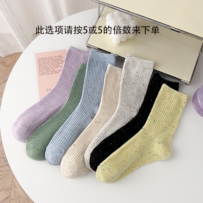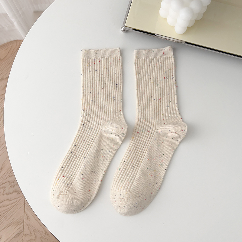 양말 여성의 봄과 가을면 중간 종아리 길이 양말 조석 오트밀 세로 줄무늬 더미 양말 도트 실 이중 바늘 스타킹