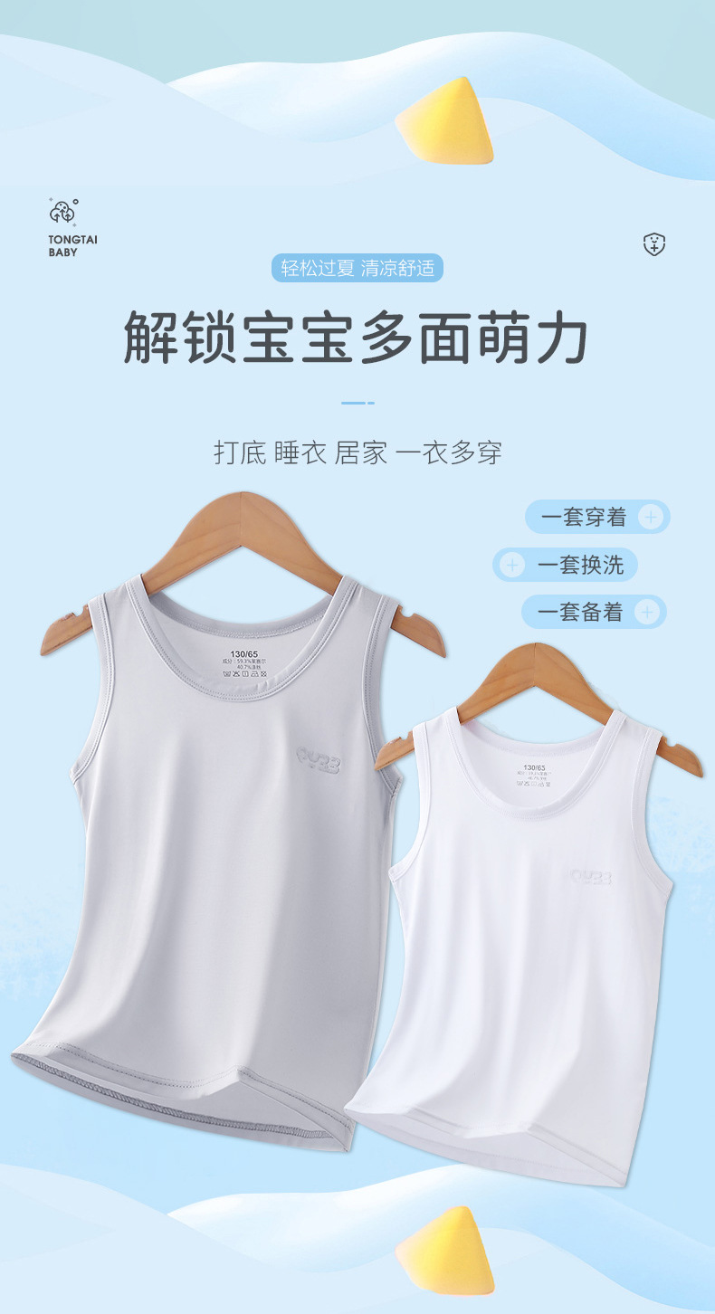 어린이 조끼 여름 클래스 A 소년 소녀 아기 얇은 단색 얼음 느낌 한국 캐주얼 항균 lyocell 슬링