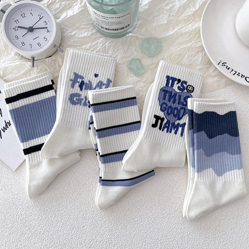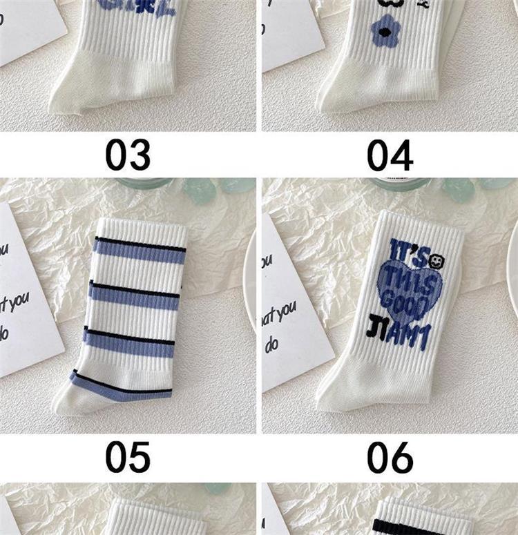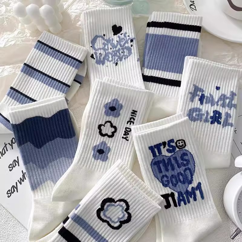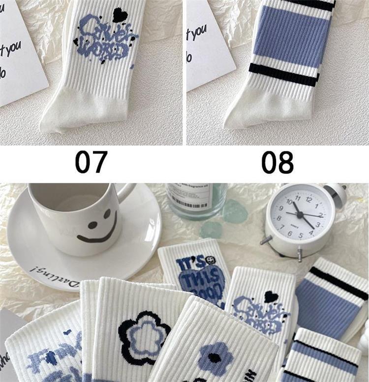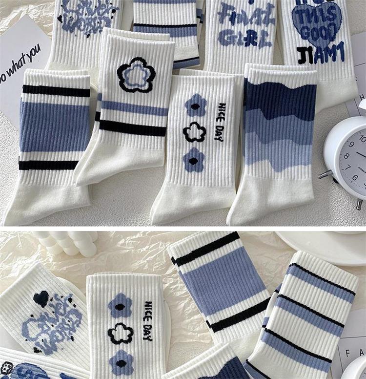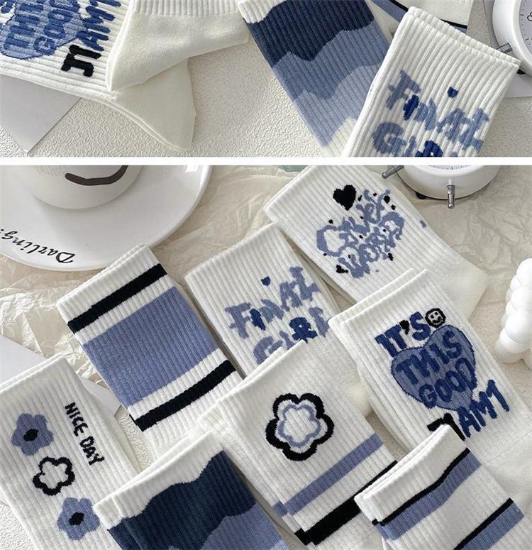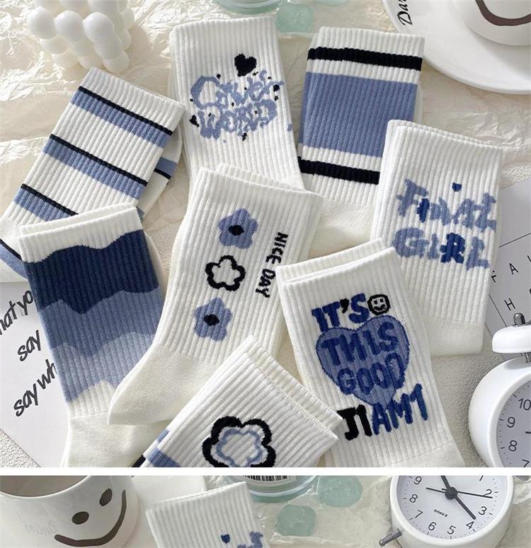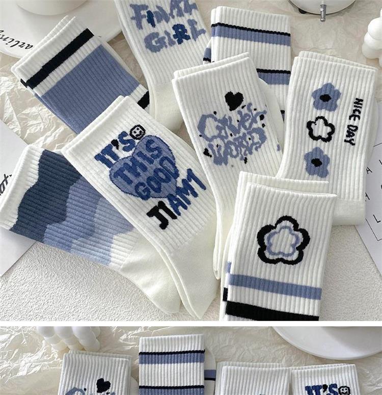 TikTok 폭발 양말 여성 미드 튜브 아우터 착용 유행 양말 Ins 유행 올 매치 스타킹 가을 및 겨울 블루 미드 튜브 스타킹 가을 및 겨울스토어 가기