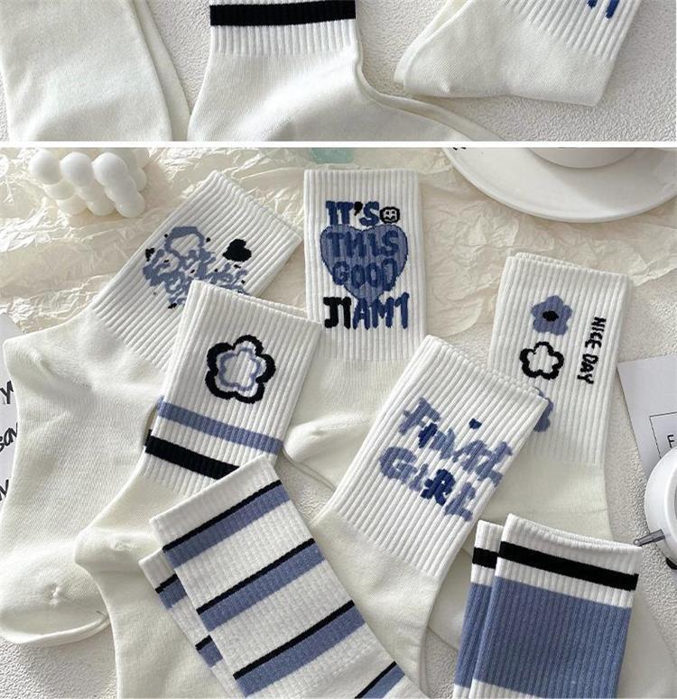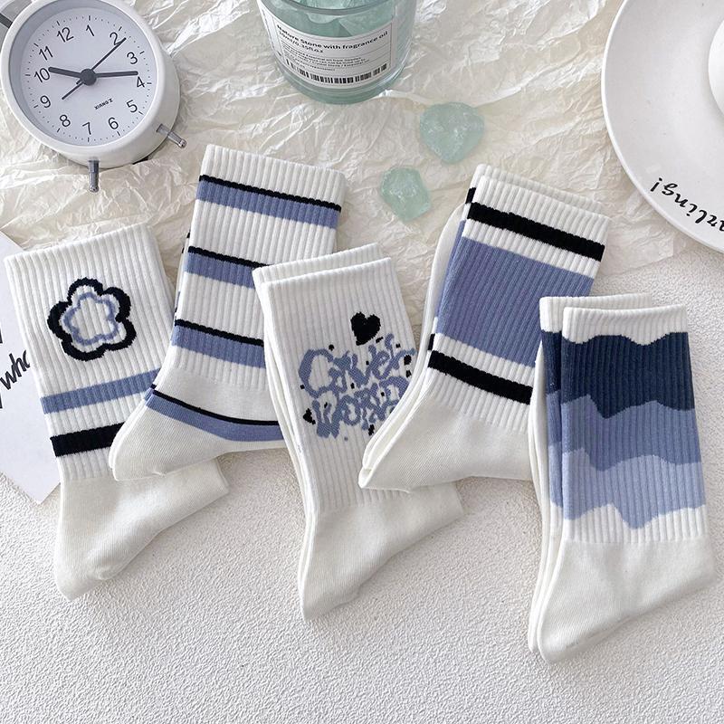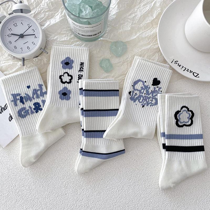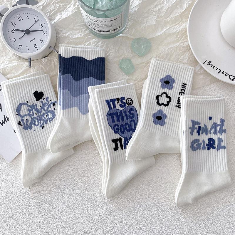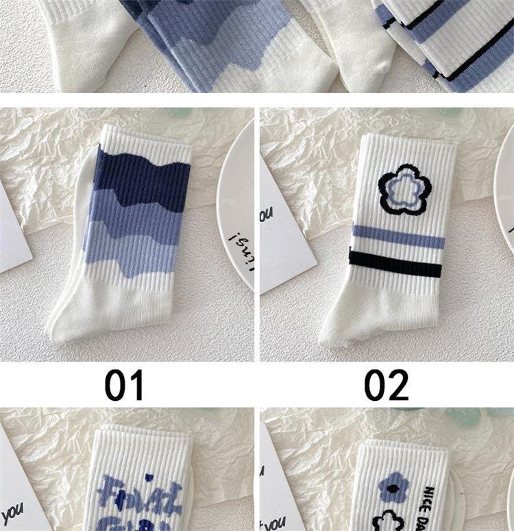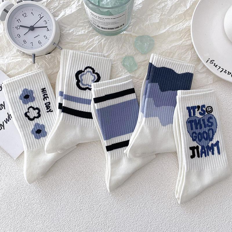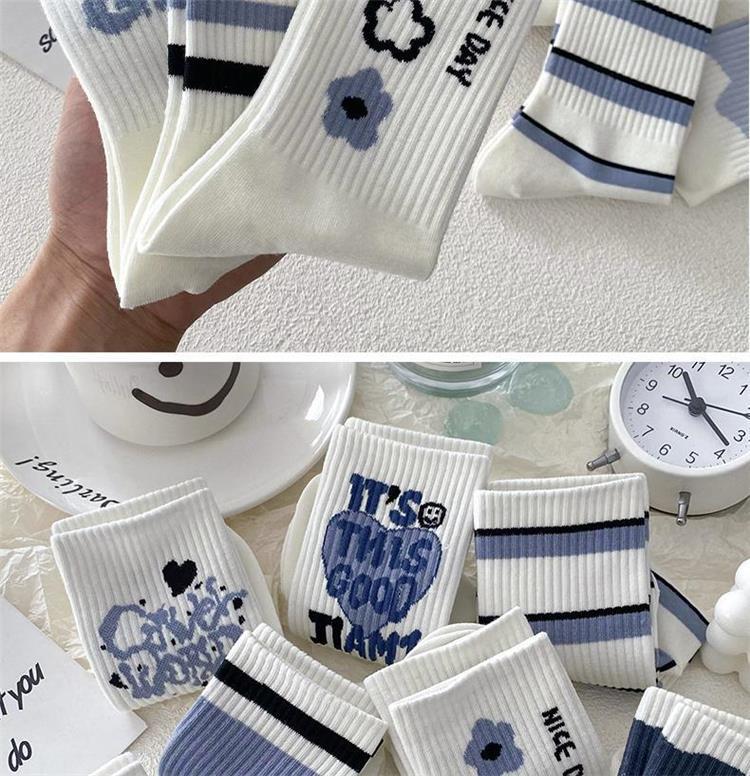 TikTok 폭발 양말 여성 미드 튜브 아우터 착용 유행 양말 Ins 유행 올 매치 스타킹 가을 및 겨울 블루 미드 튜브 스타킹 가을 및 겨울스토어 가기