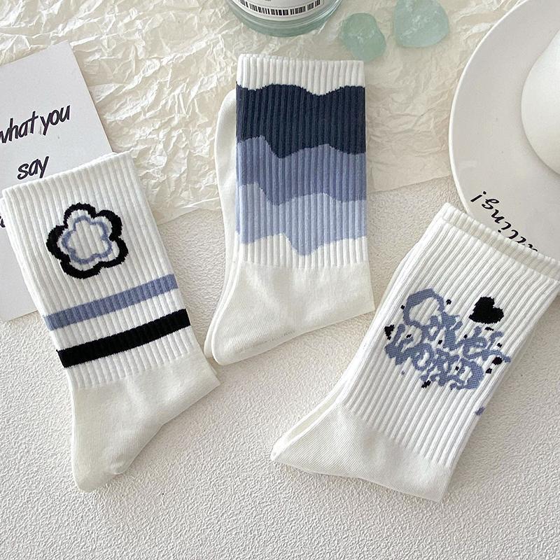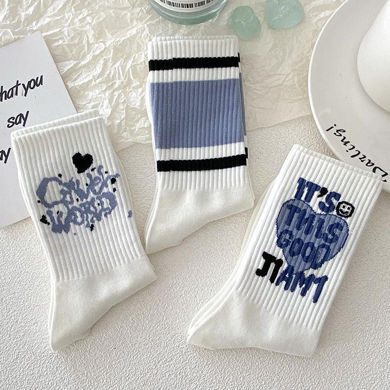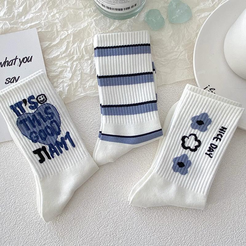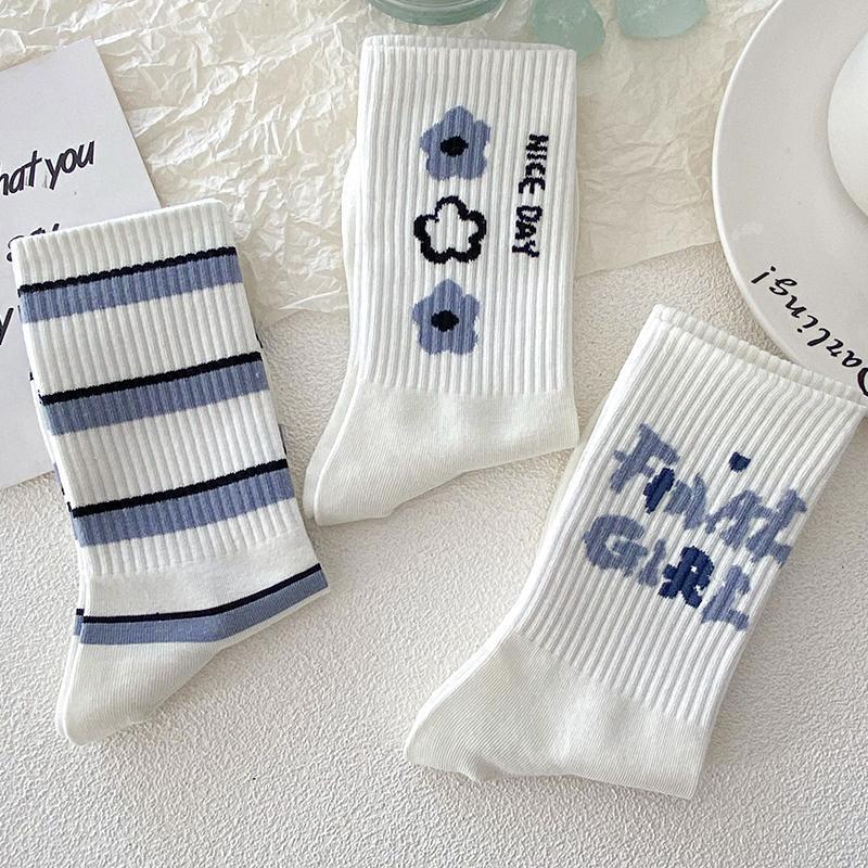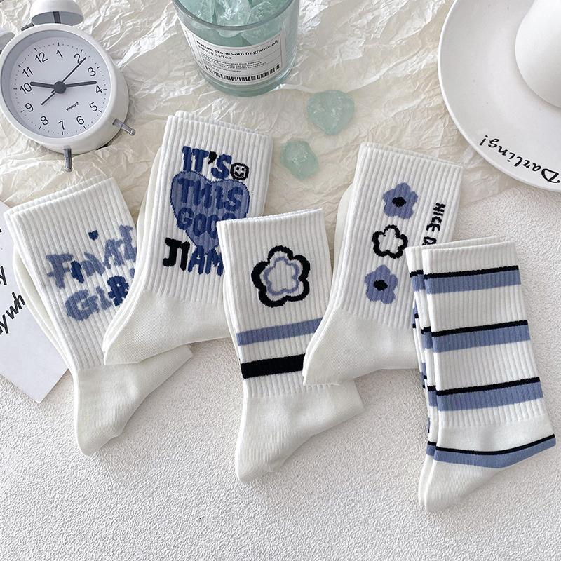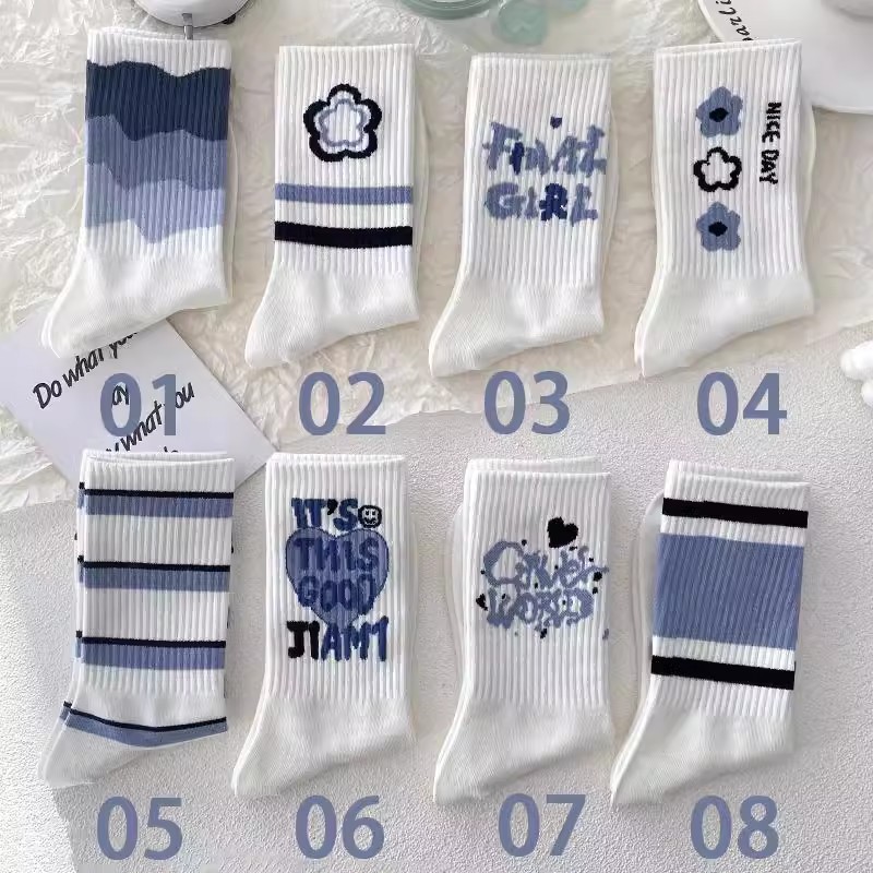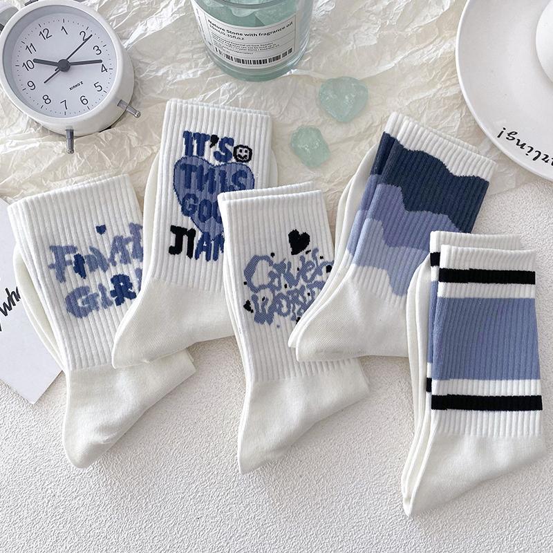 TikTok 폭발 양말 여성 미드 튜브 아우터 착용 유행 양말 Ins 유행 올 매치 스타킹 가을 및 겨울 블루 미드 튜브 스타킹 가을 및 겨울스토어 가기