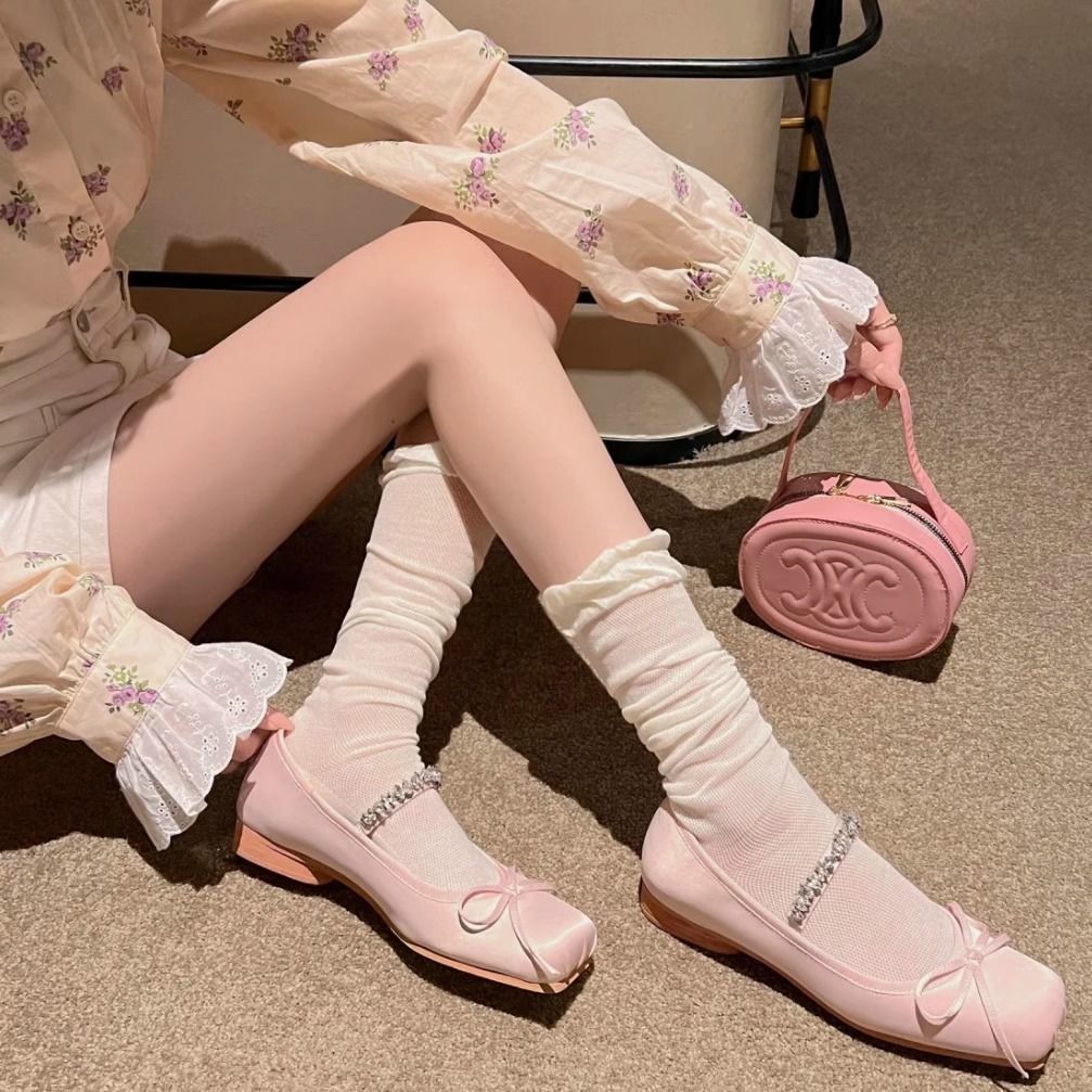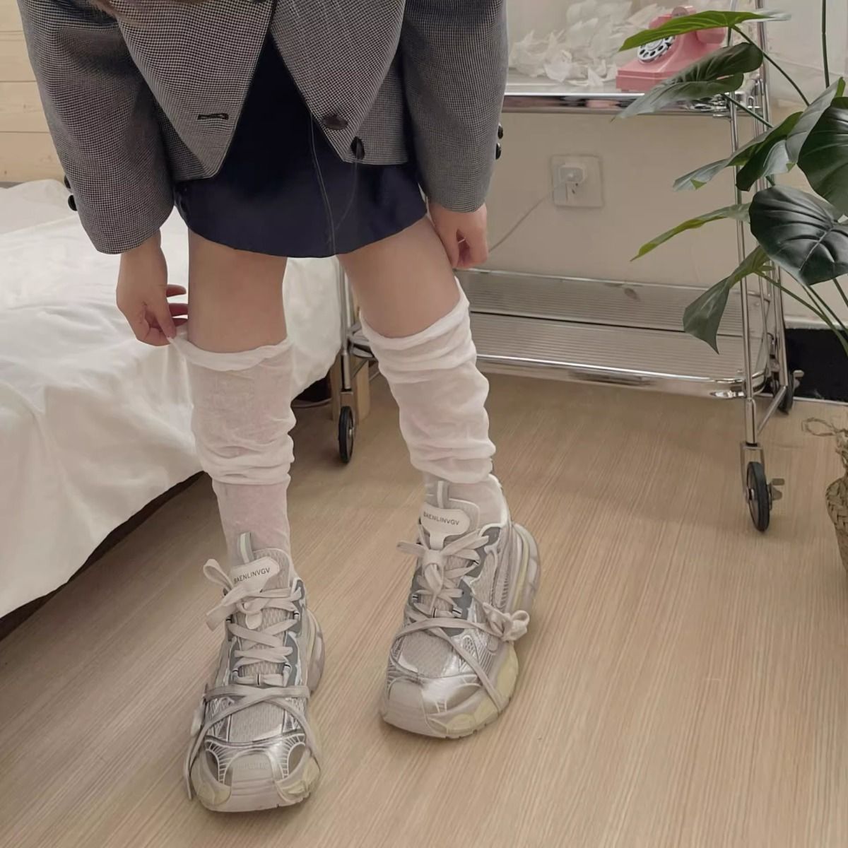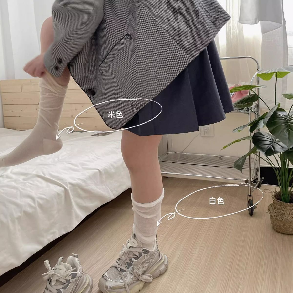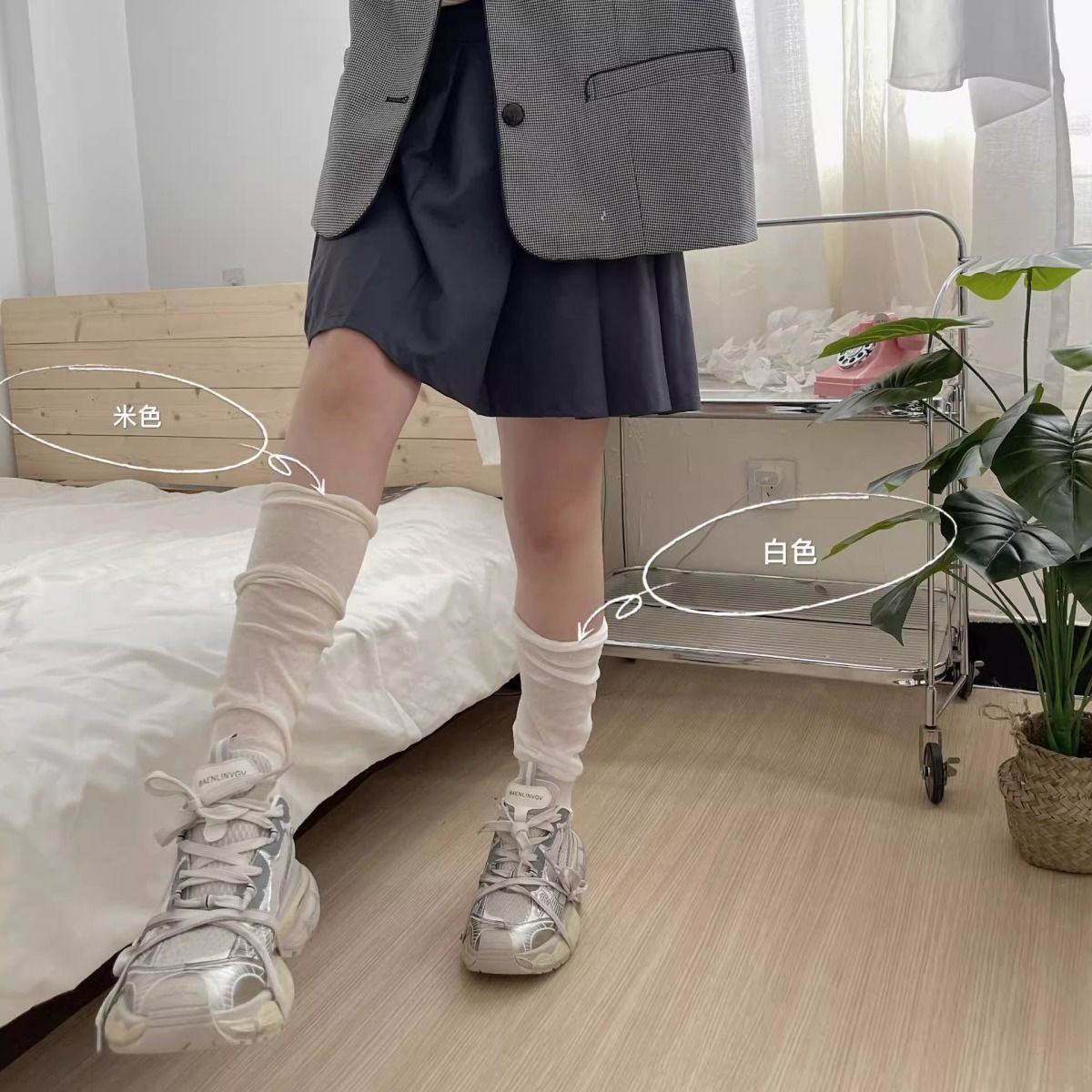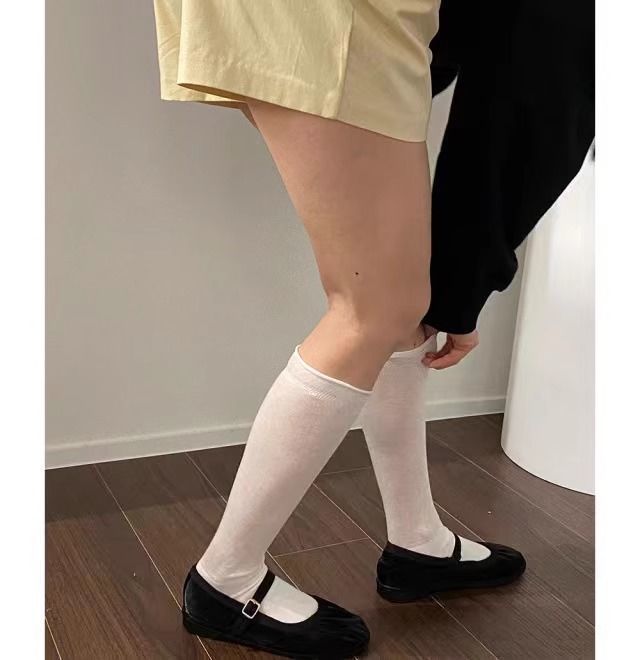 한국 유행 거품 입 디자이너 종아리 양말 착용 통기성 jk 무릎 양말 봄과 여름 얇은 더미 양말스토어 가기