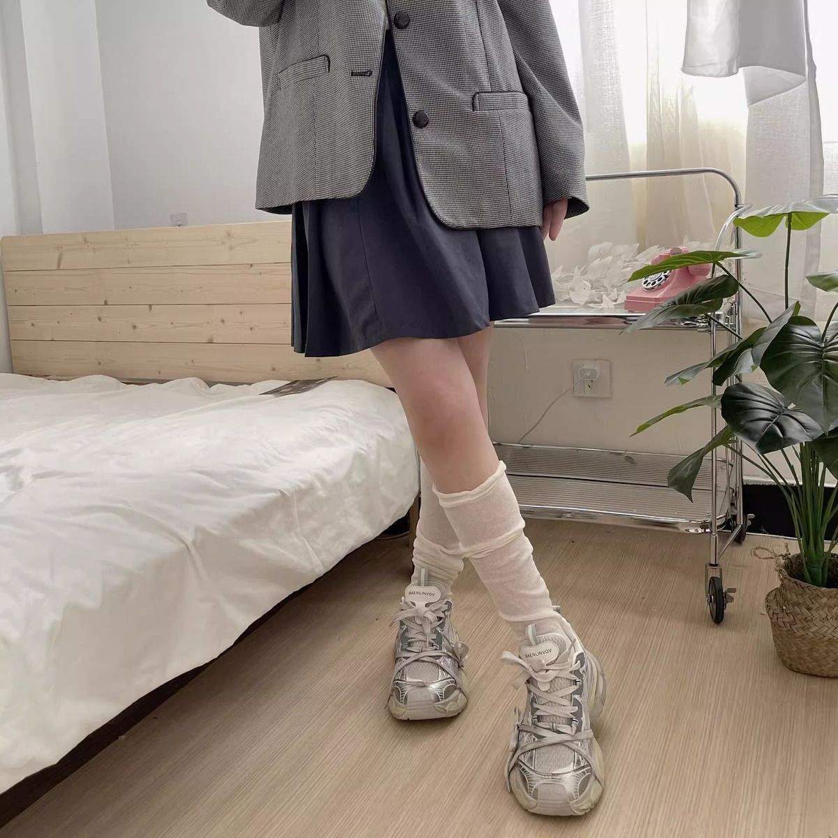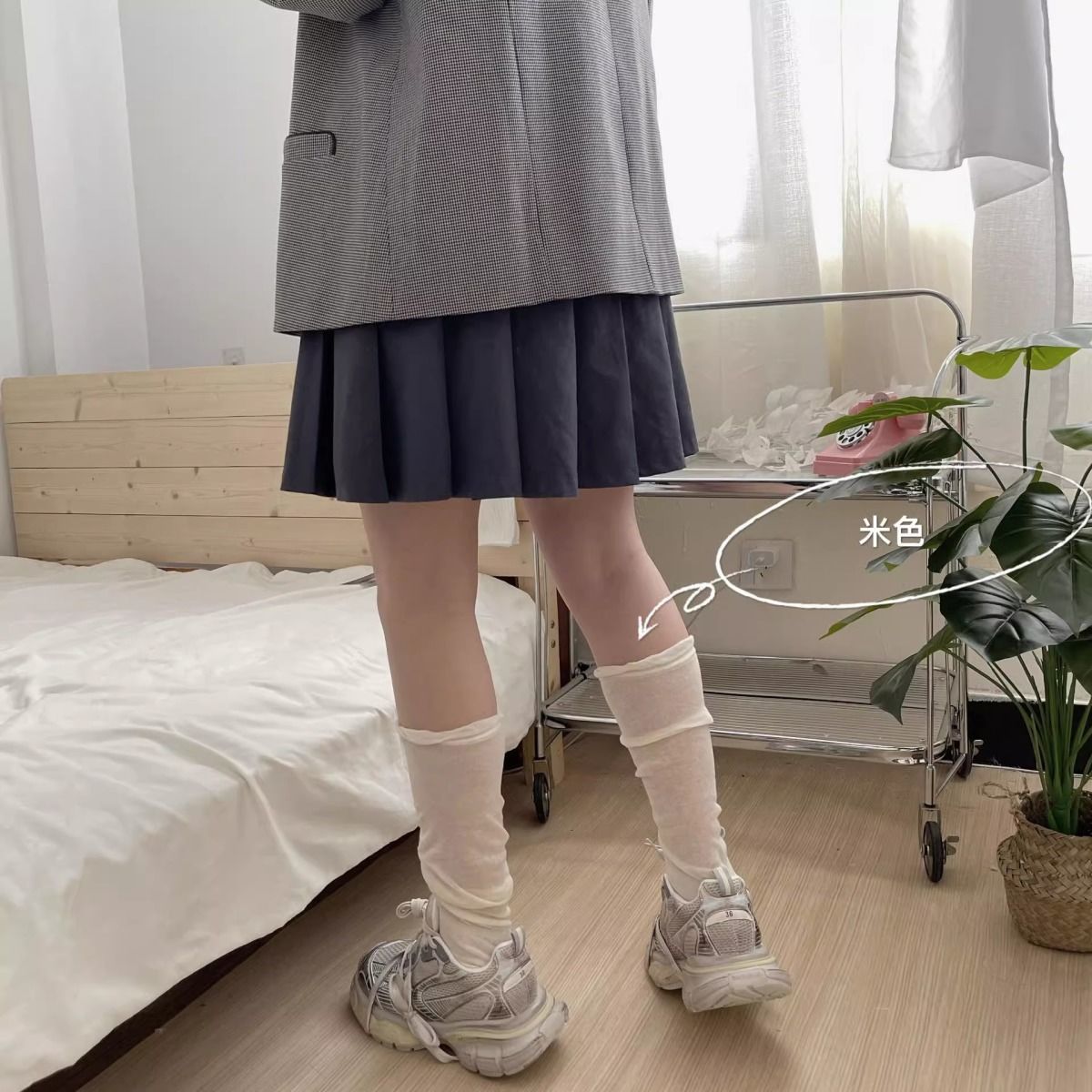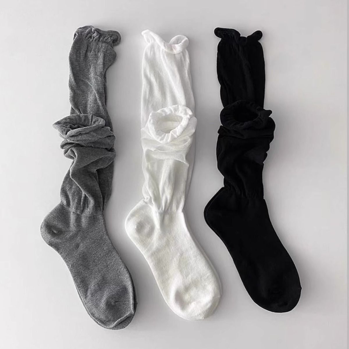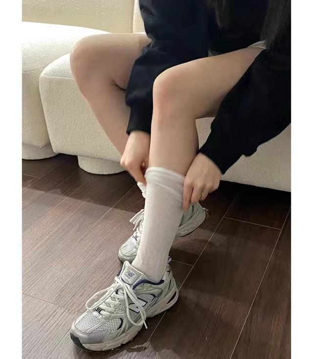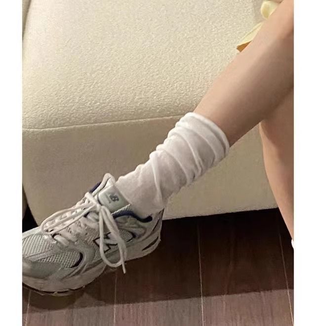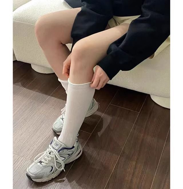 한국 유행 거품 입 디자이너 종아리 양말 착용 통기성 jk 무릎 양말 봄과 여름 얇은 더미 양말
