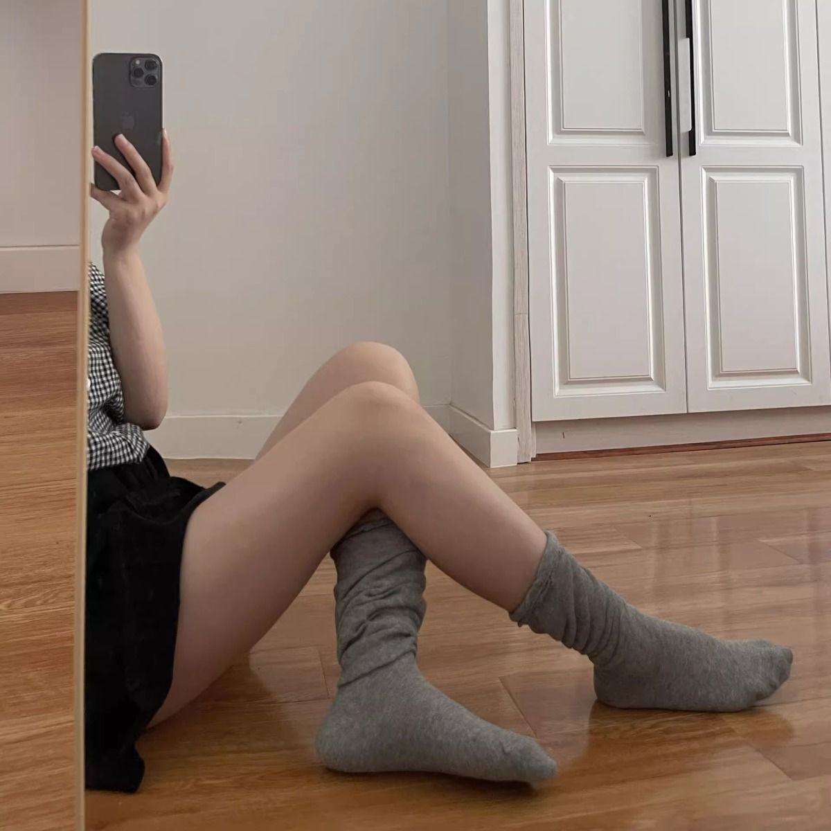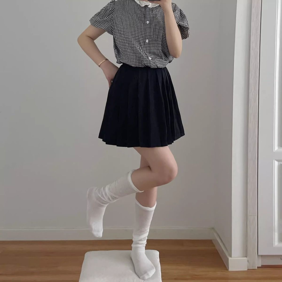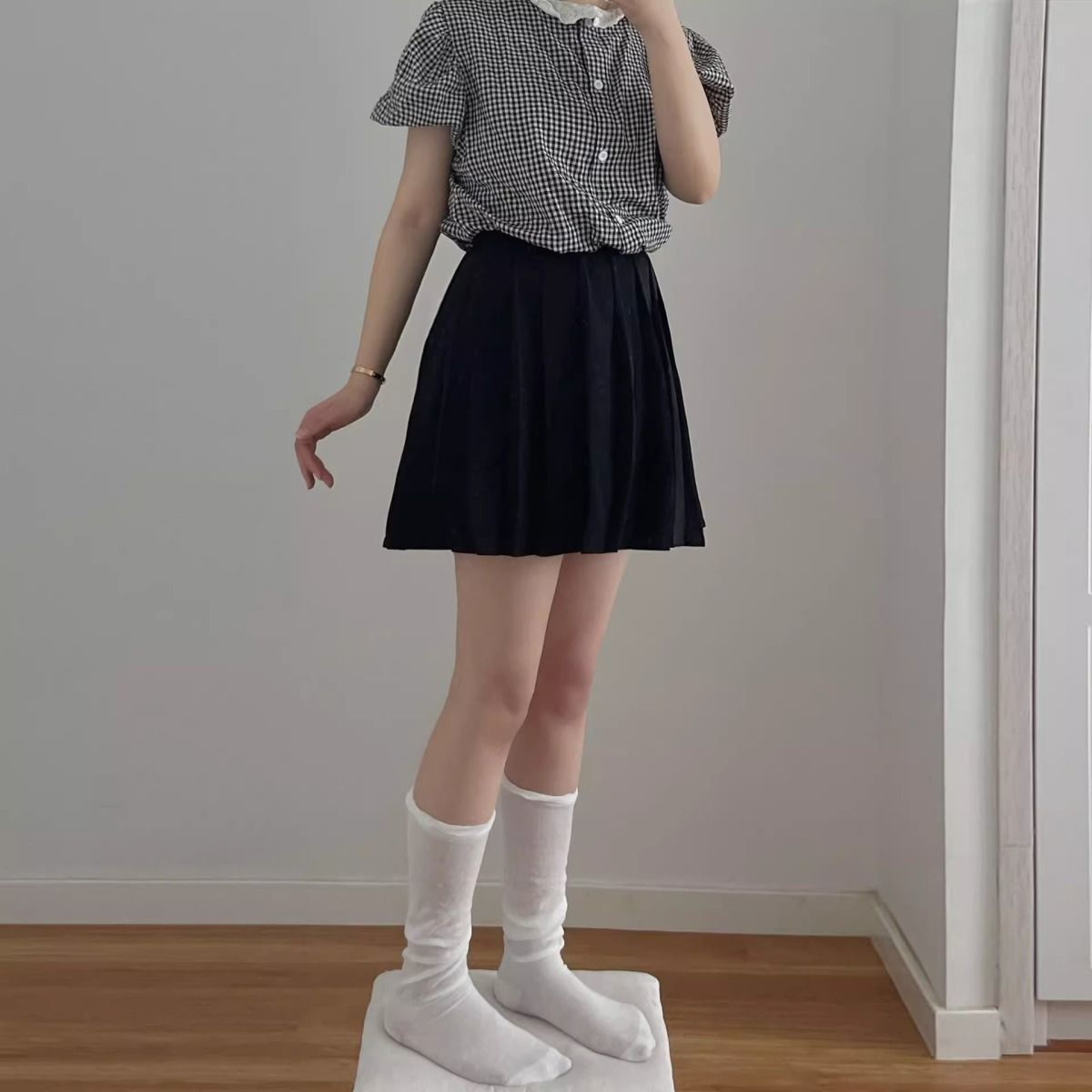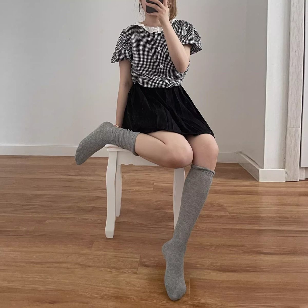 한국 유행 거품 입 디자이너 종아리 양말 착용 통기성 jk 무릎 양말 봄과 여름 얇은 더미 양말