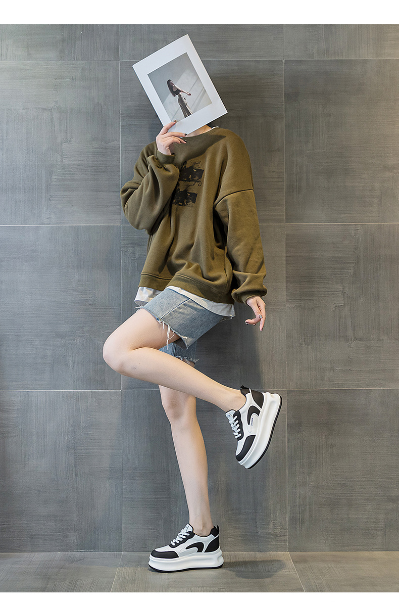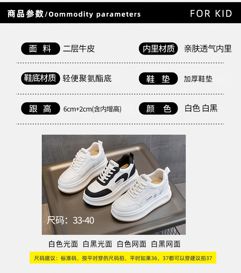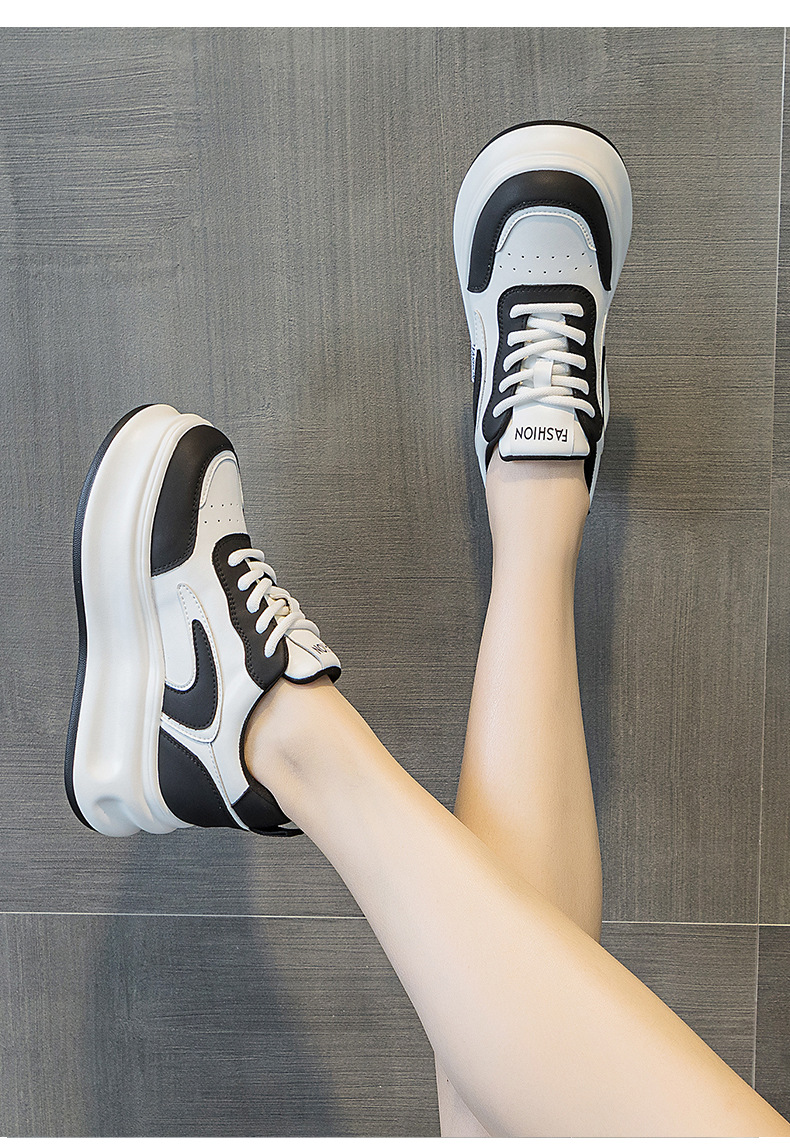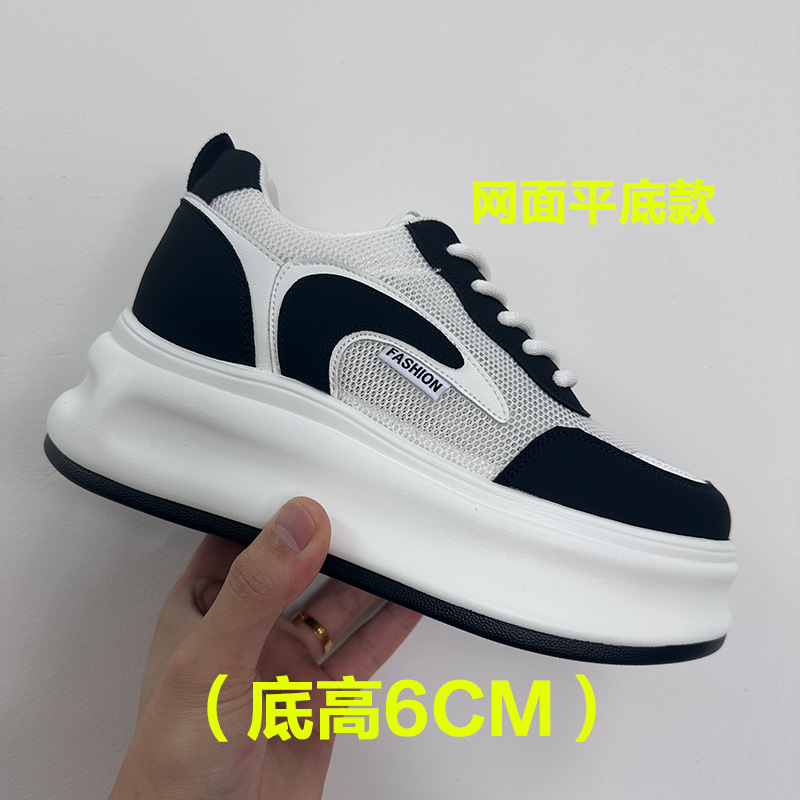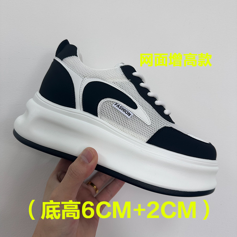 1258- 1-2 작은 높이 증가 플랫폼 흰색 신발 흑백 컬러 매칭 메쉬 통기성 캐주얼 여성 신발 패션스토어 가기
