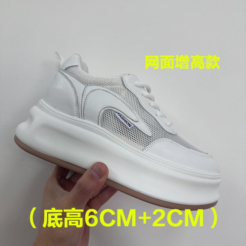 1258- 1-2 작은 높이 증가 플랫폼 흰색 신발 흑백 컬러 매칭 메쉬 통기성 캐주얼 여성 신발 패션