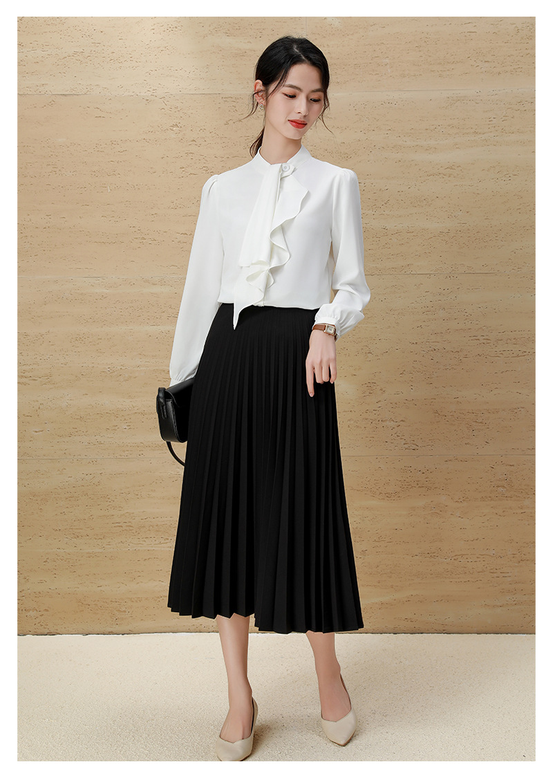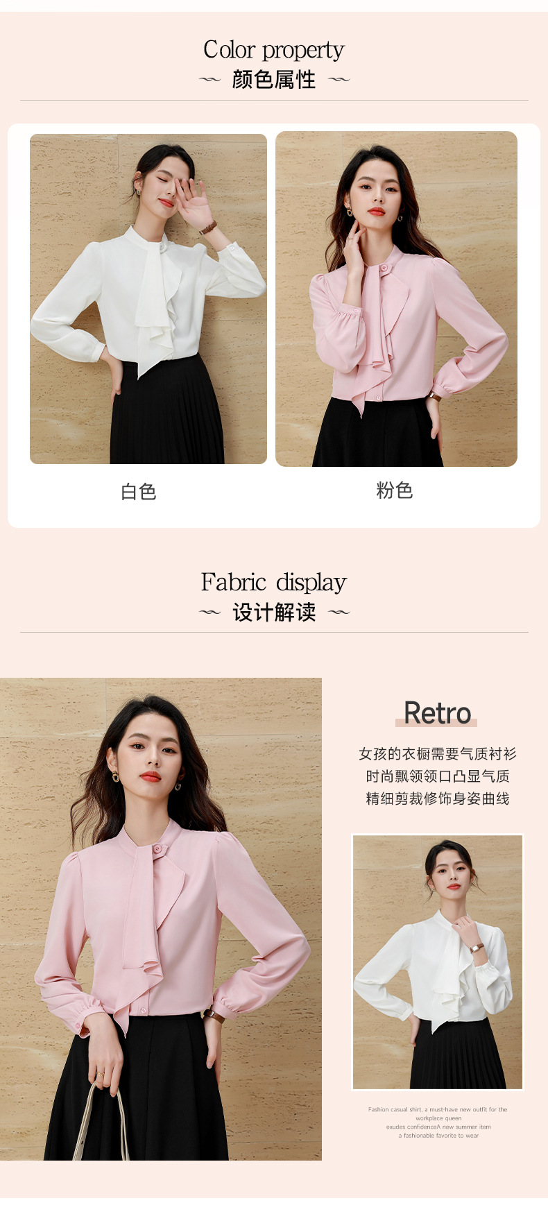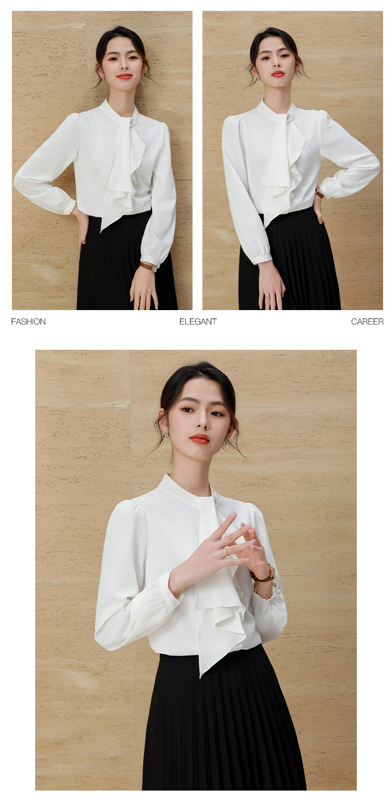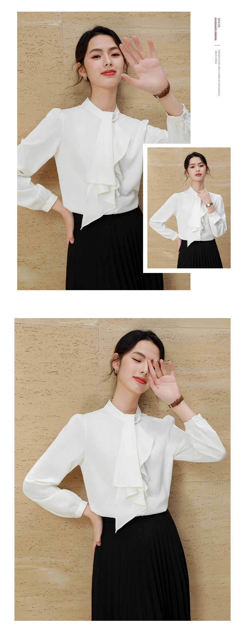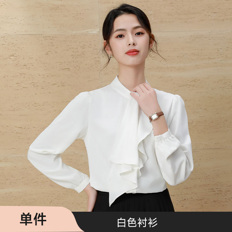 주름진 전문 셔츠 여성용 봄 긴 소매 흰색 드레이핑 세련된 서양식 쉬폰 셔츠 고급 최고 도매스토어 가기