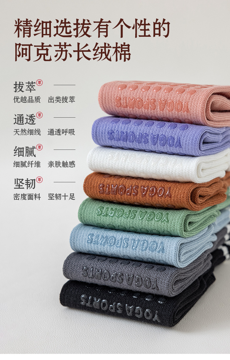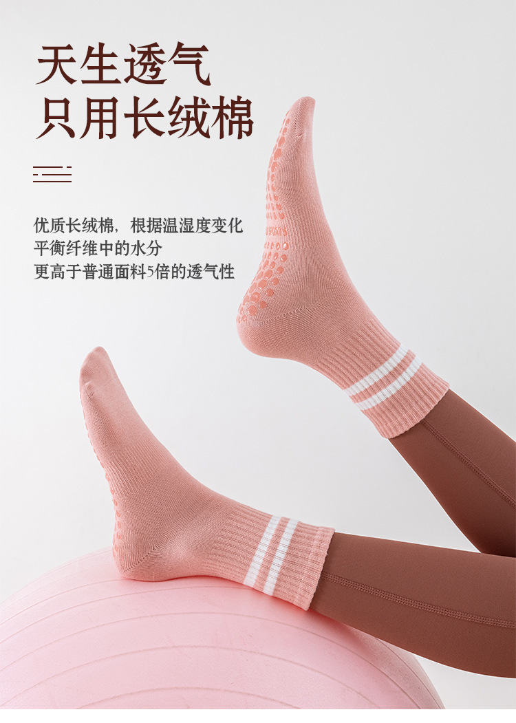 瑜伽袜中筒袜棉袜防滑室内健身袜普拉提女士舞蹈运动袜地板袜