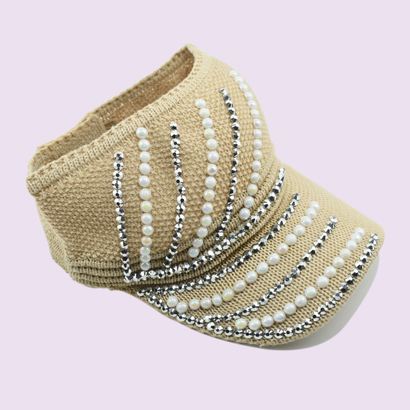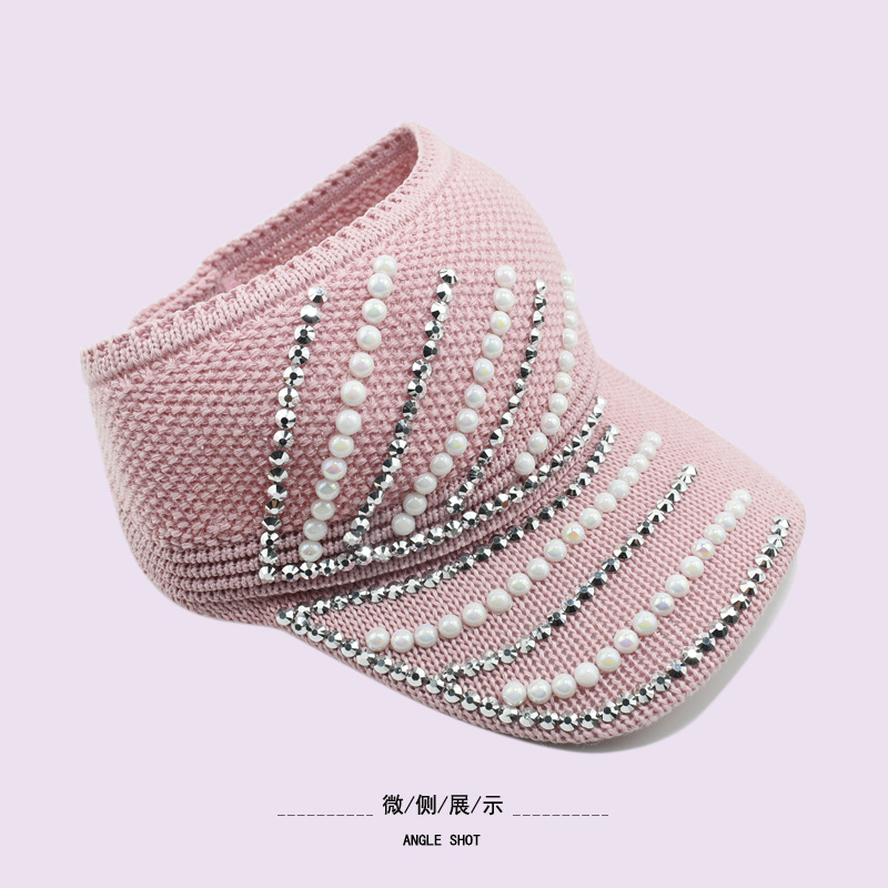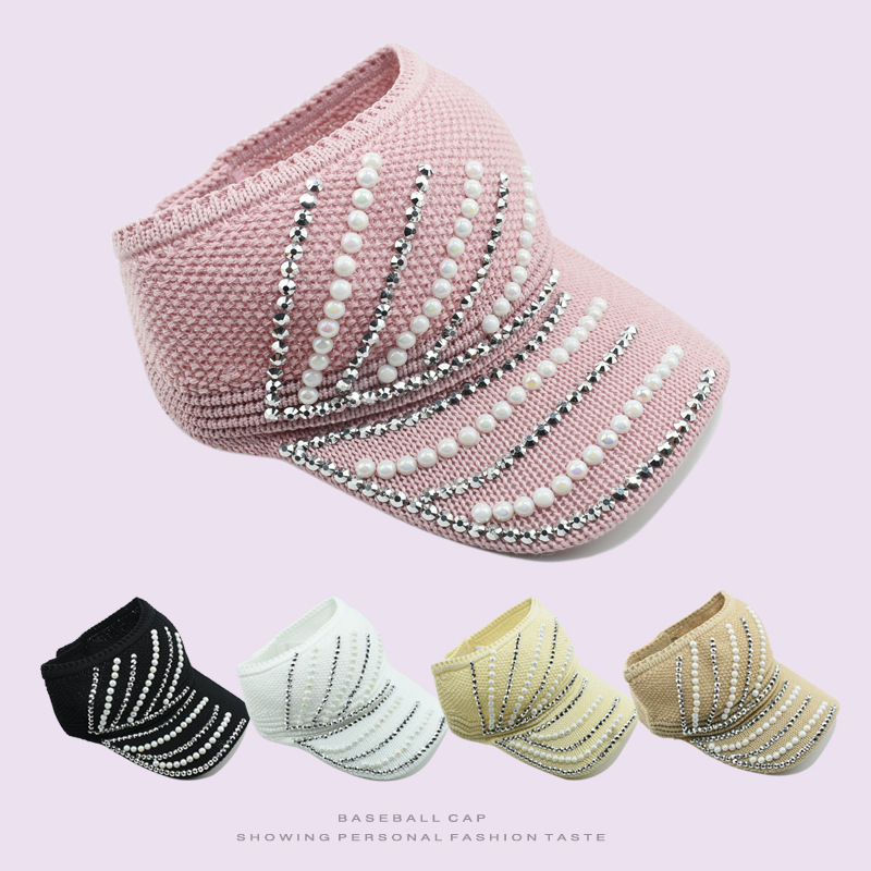 새로운 여름 태양 보호 모자 한국식 빈 탑 다이아몬드 내장 니트 야구 모자 태양 보호 큰 테두리 야외 태양 보호 피크 캡스토어 가기