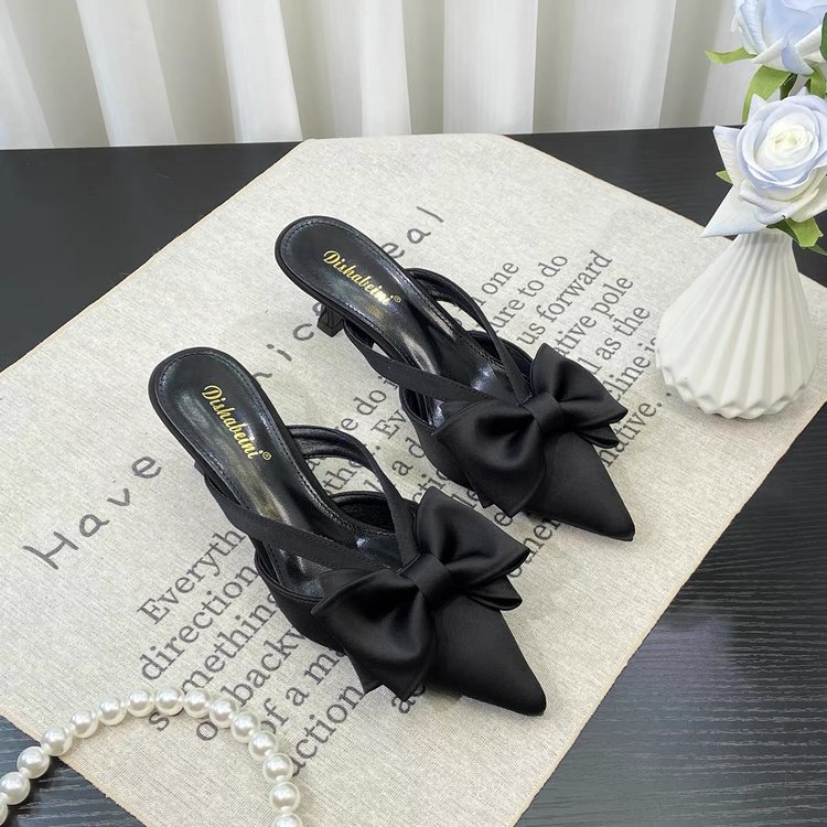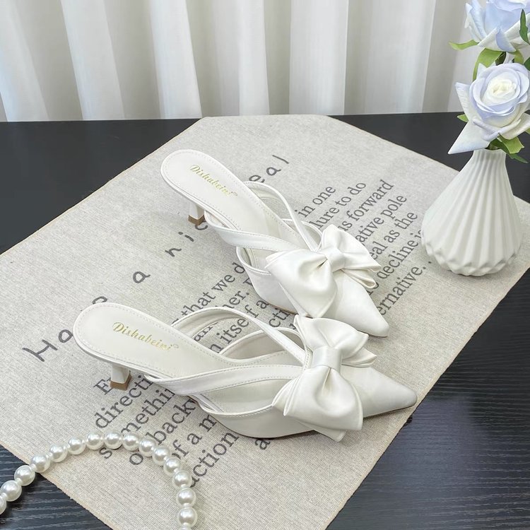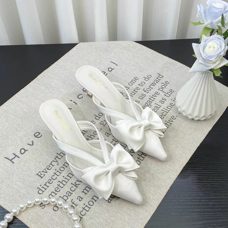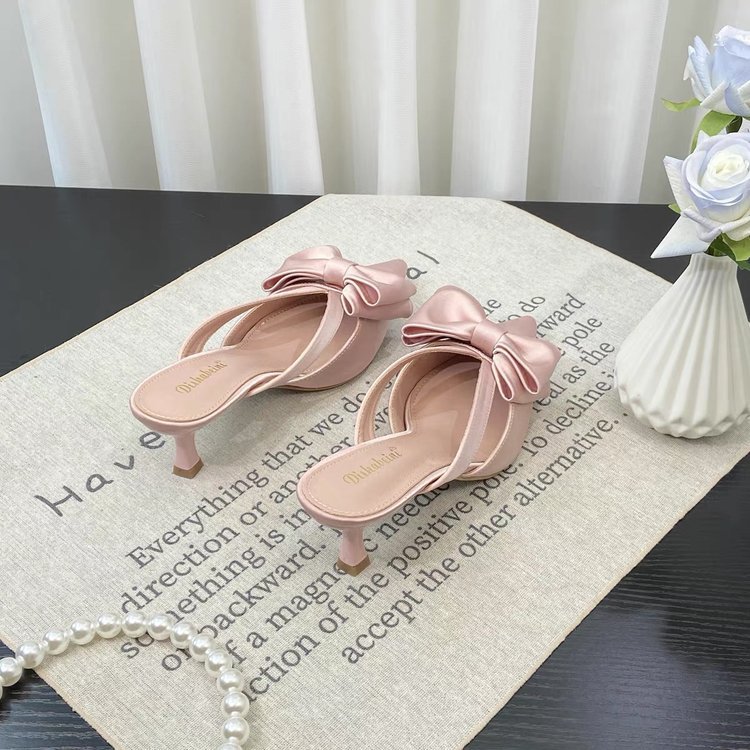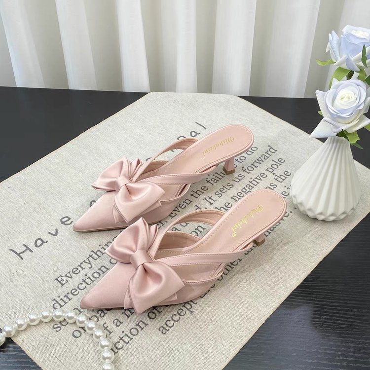 페어리 스타일 핑크 샌들 여성 프랑스 뾰족한 활 중공 하이힐 하프 폐쇄 발가락 슬리퍼 봄과 여름 2024스토어 가기
