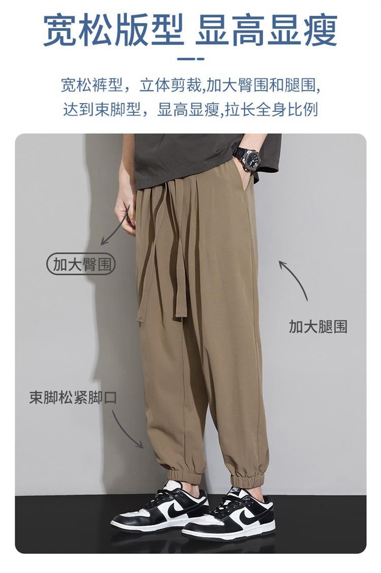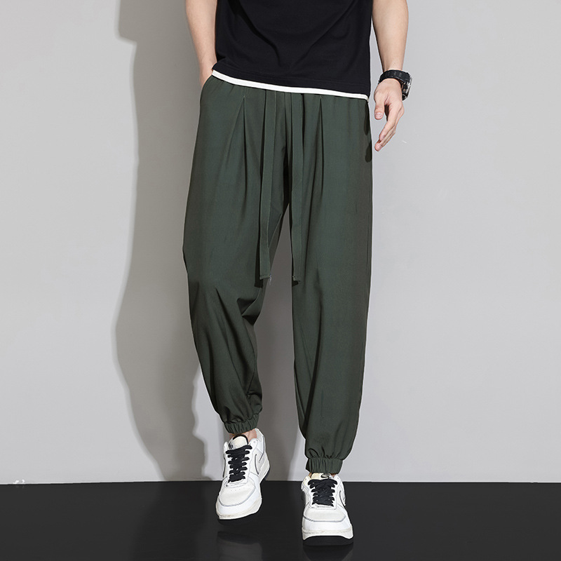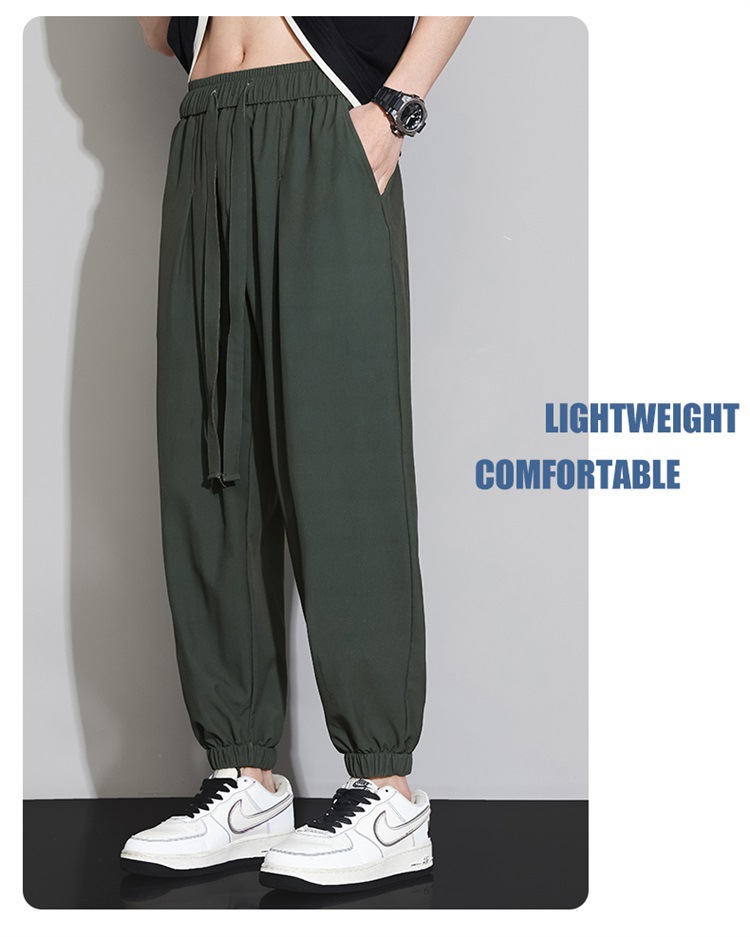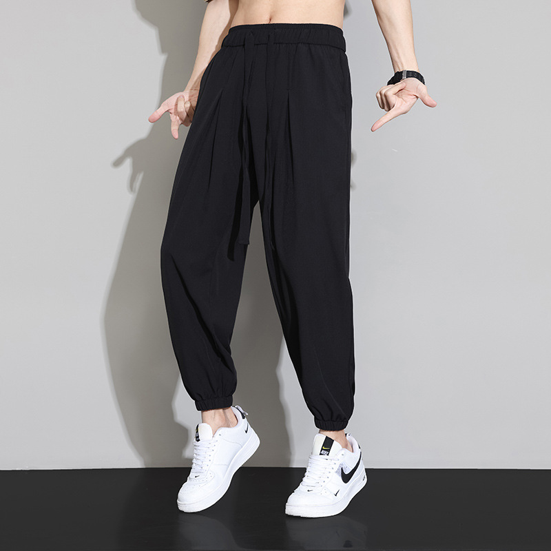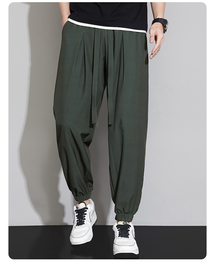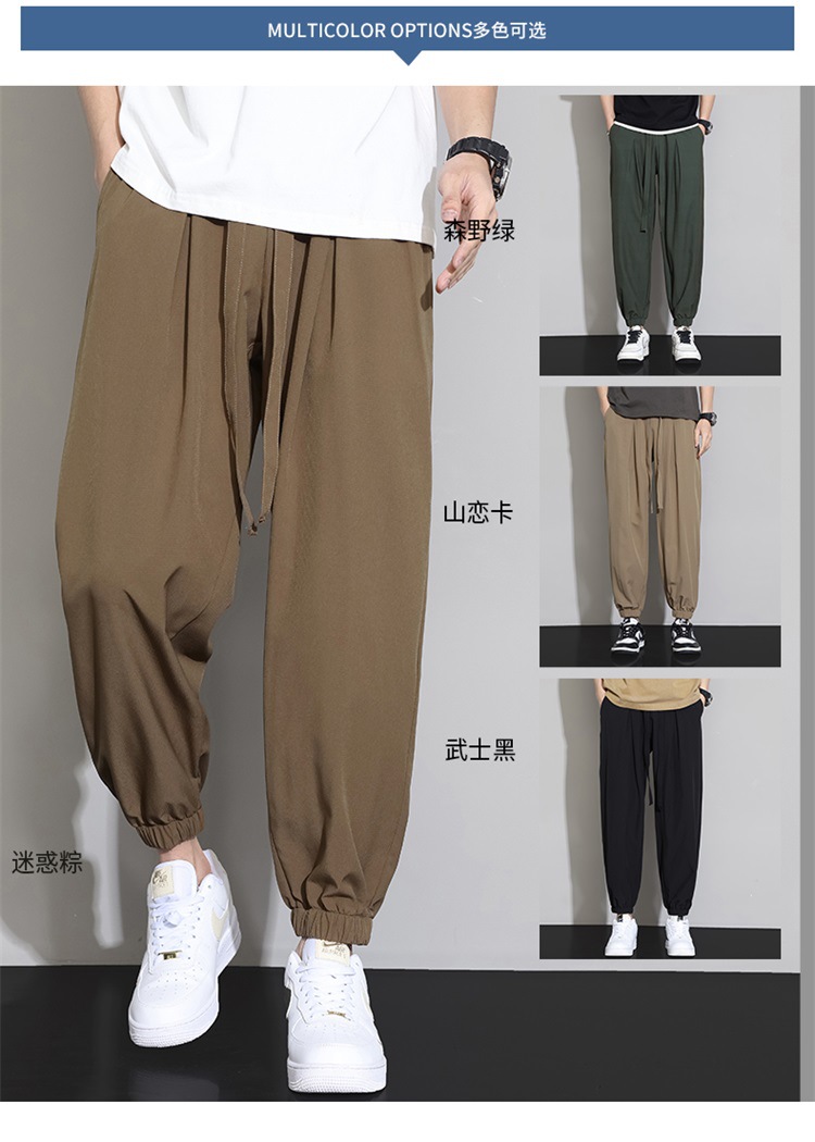 M-8XL 아이스 실크 바지 남성용 여름 얇은 발목 길이 바지, 일본식 트렌디 한 드로우 스트링 발목 길이 바지, 캐주얼 바지스토어 가기
