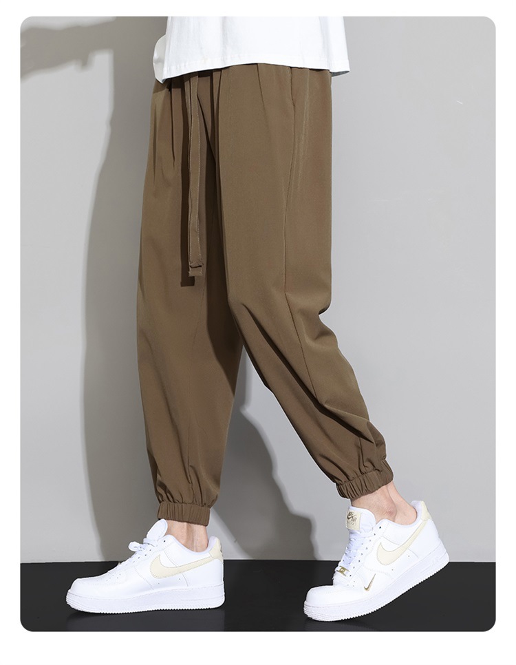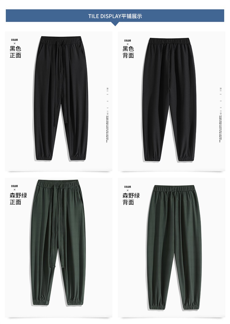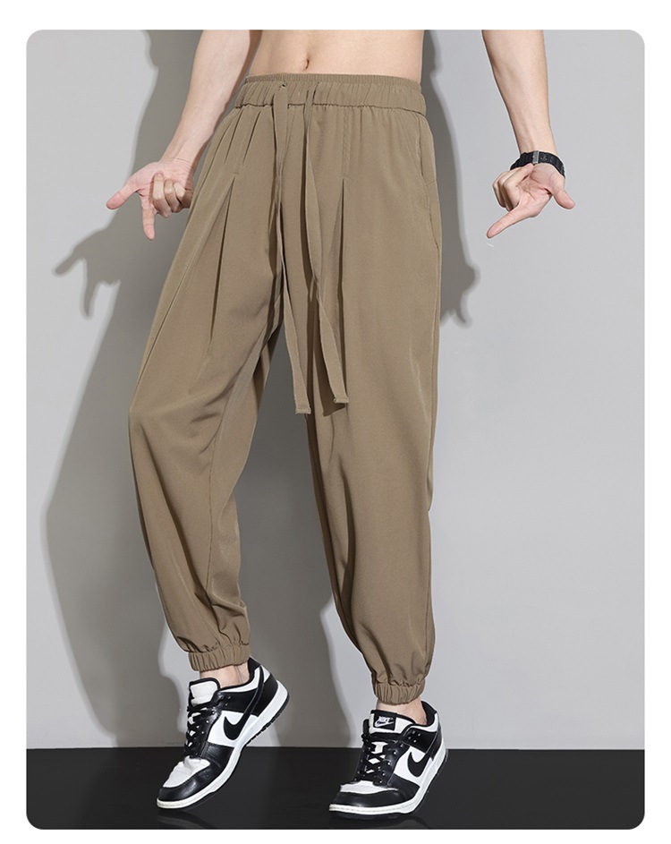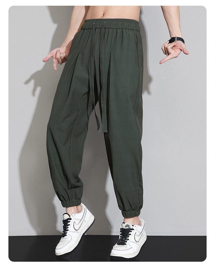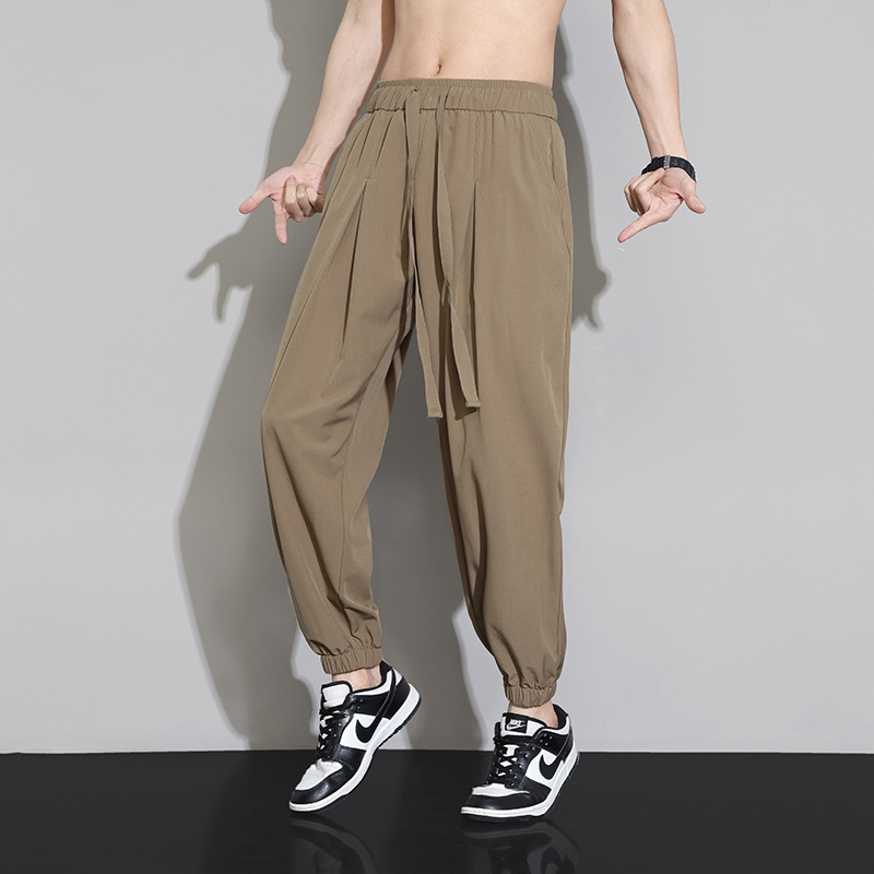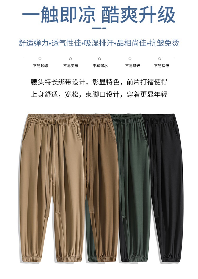 M-8XL 아이스 실크 바지 남성용 여름 얇은 발목 길이 바지, 일본식 트렌디 한 드로우 스트링 발목 길이 바지, 캐주얼 바지스토어 가기