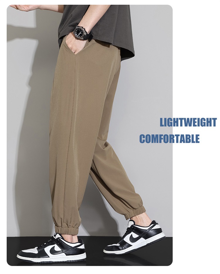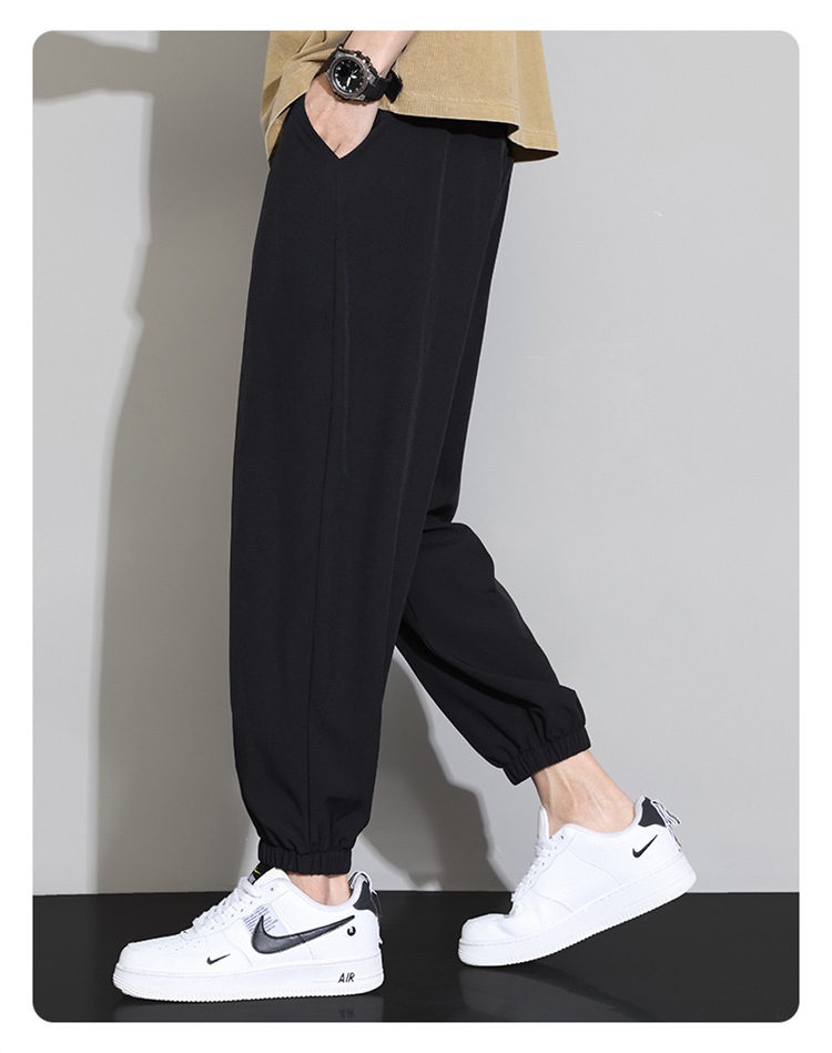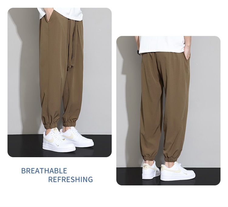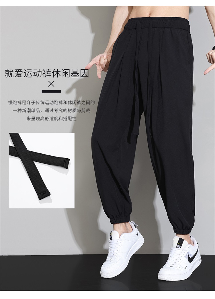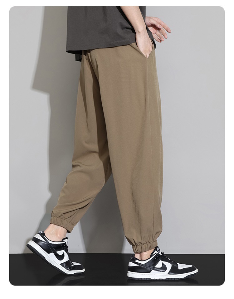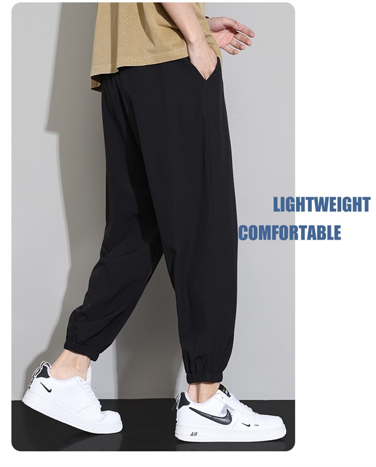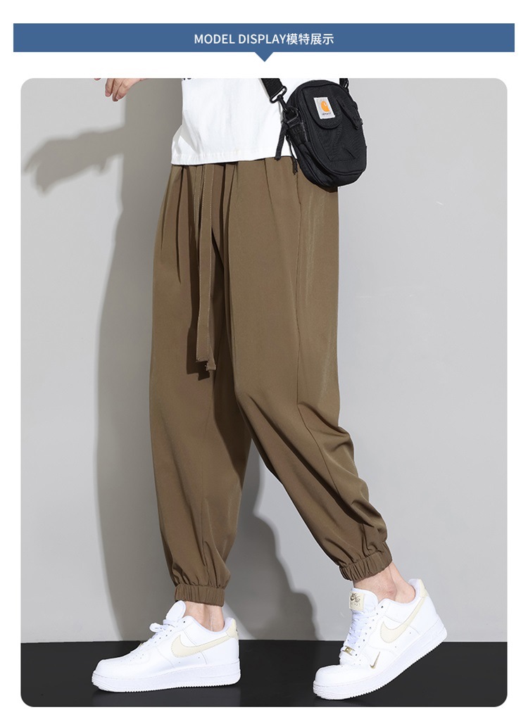 M-8XL 아이스 실크 바지 남성용 여름 얇은 발목 길이 바지, 일본식 트렌디 한 드로우 스트링 발목 길이 바지, 캐주얼 바지스토어 가기