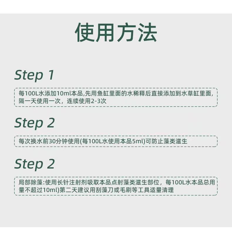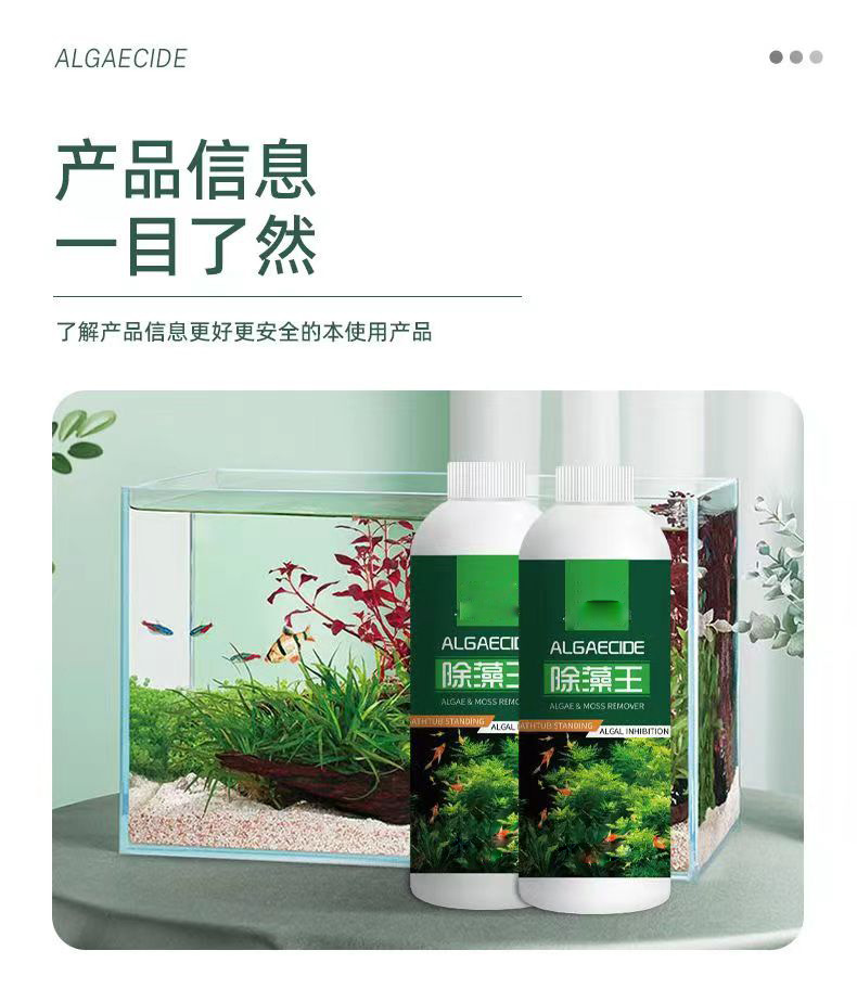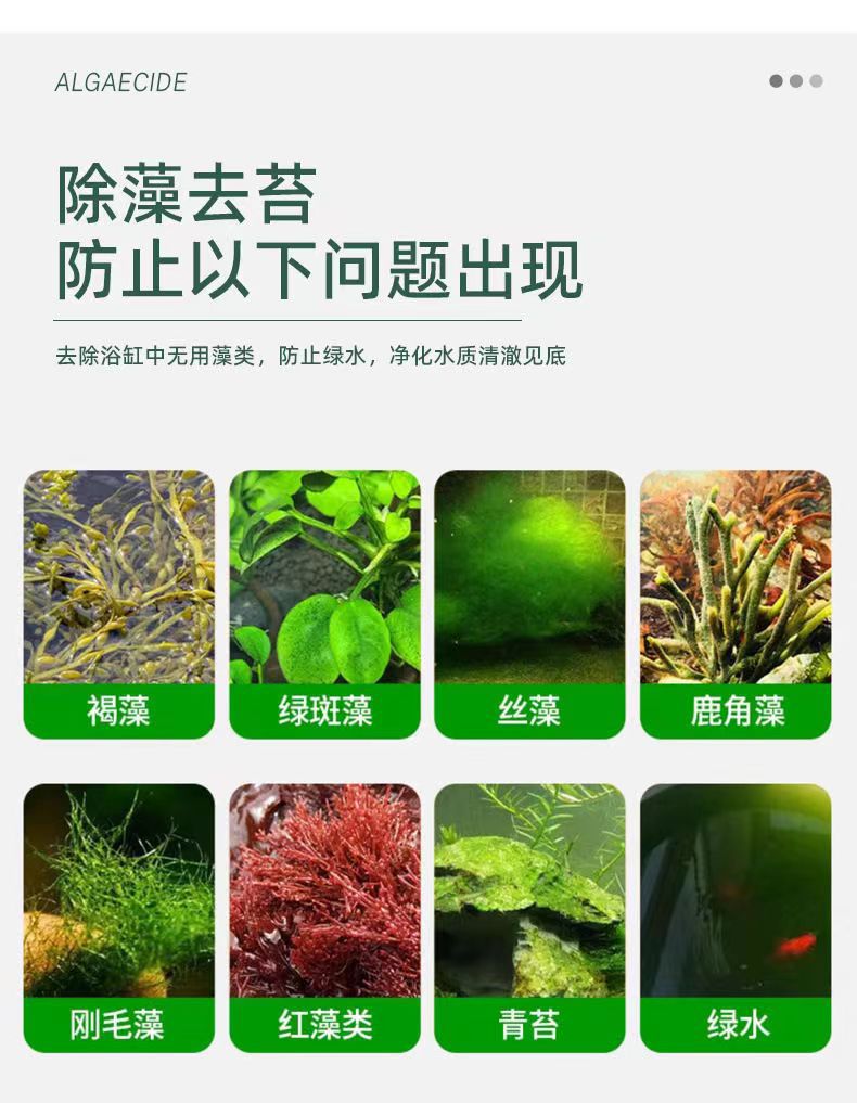 어항용 조류제거제는 수생식물을 손상시키지 않고 물고기도 손상시키지 않으며, 녹조류, 갈조류, 실크조류, 검은모조류를 제거하는 녹조류제거제입니다.