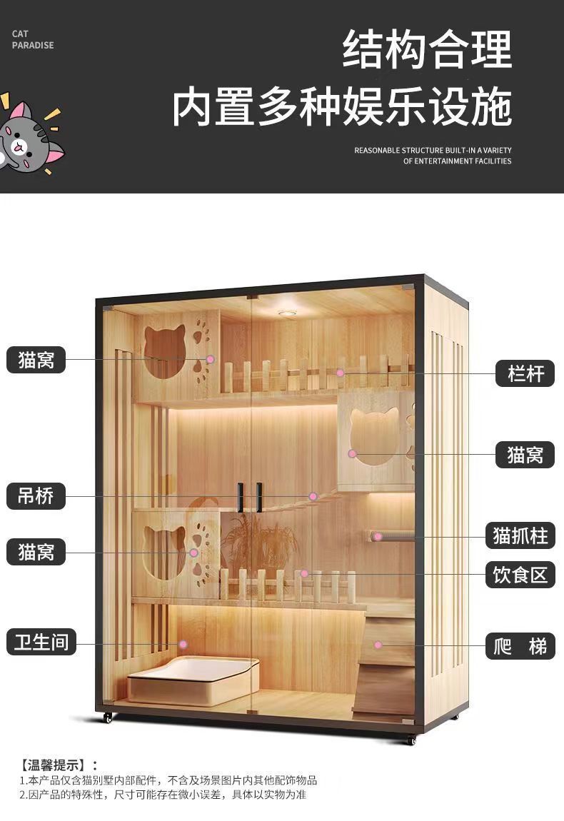비원목 고양이 케이지 고양이 빌라 가정용 실내 초대형 고양이 집 방음 고양이 케이지 초저소음 고양이 둥지 고양이 성스토어 가기