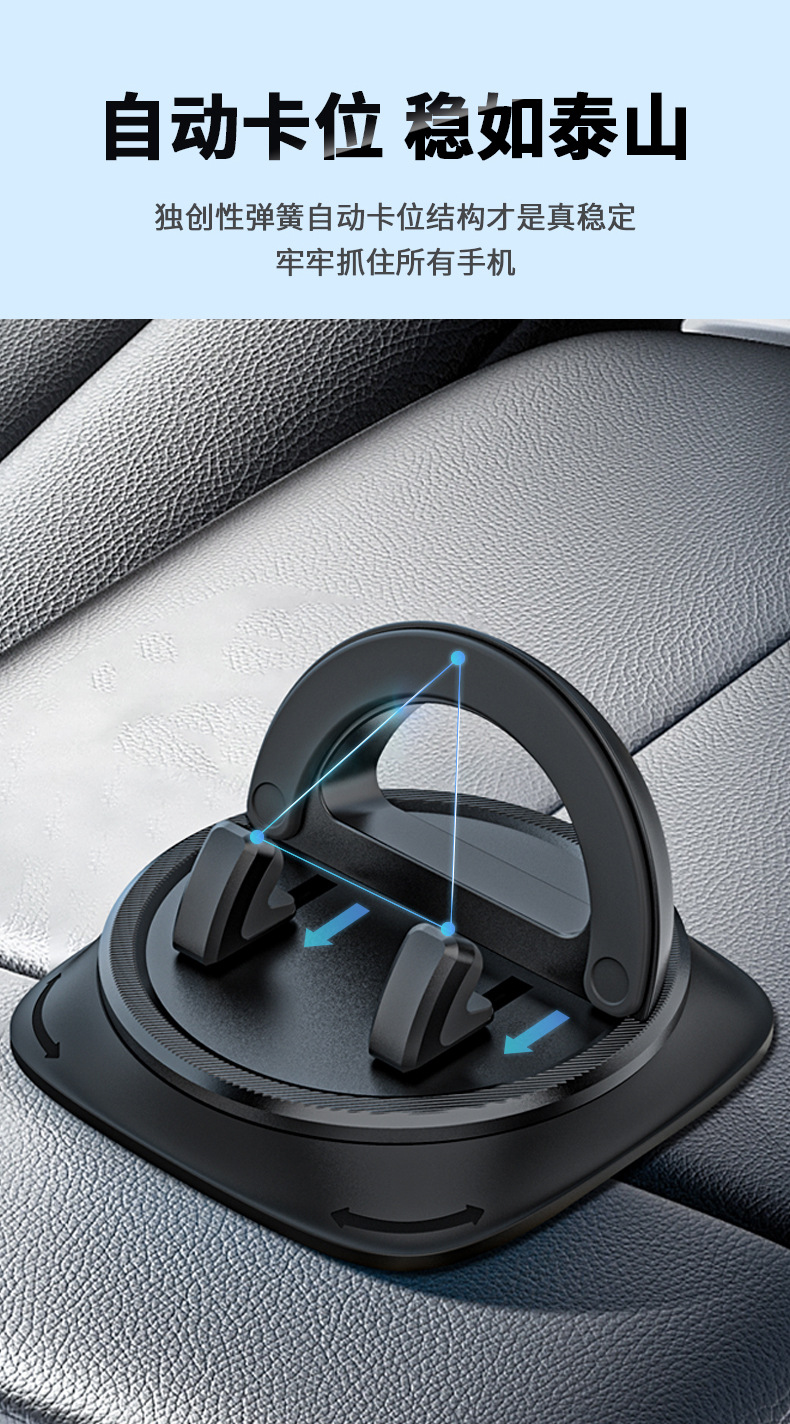 3.创新型弹簧结构自动卡位,兼容所有手机带壳同时牢牢抓住手机