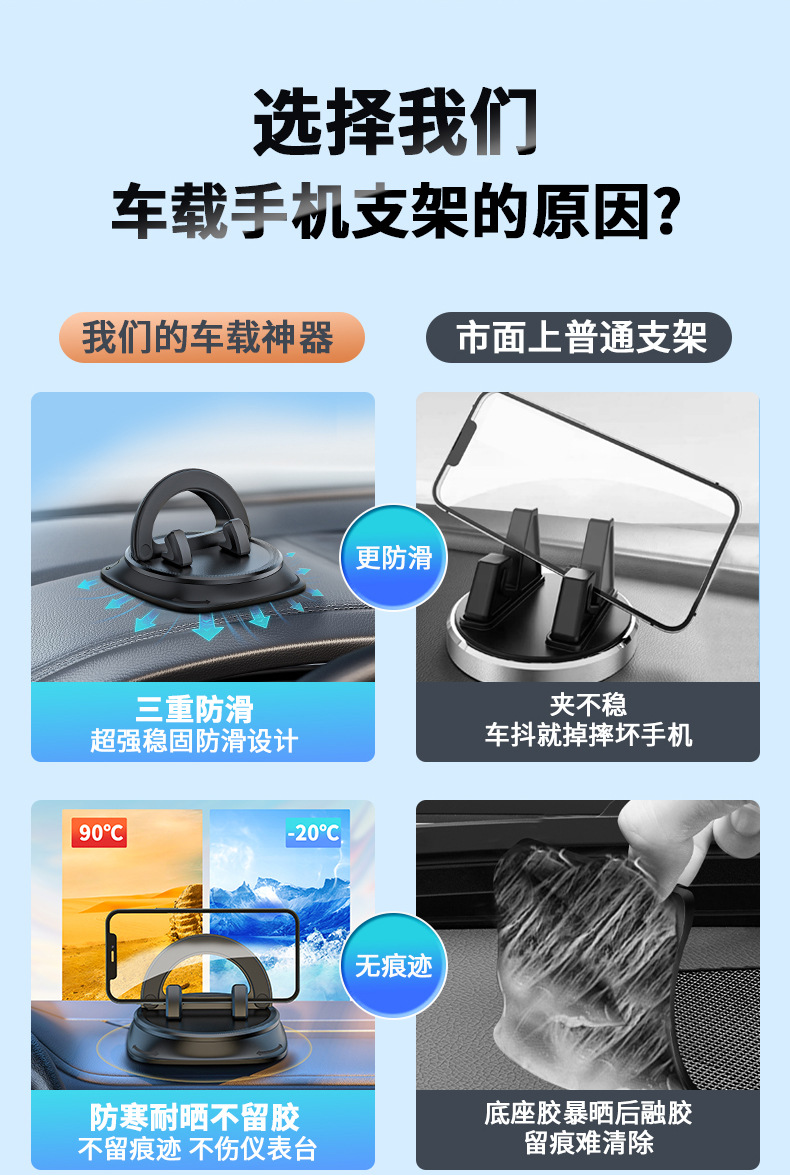 2.堡垒般稳重底座,搭配全新升级纳米凝胶,不留胶痕永不掉落