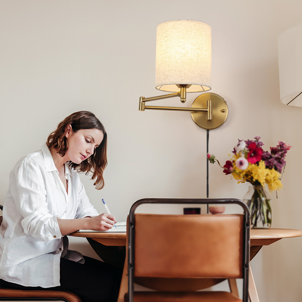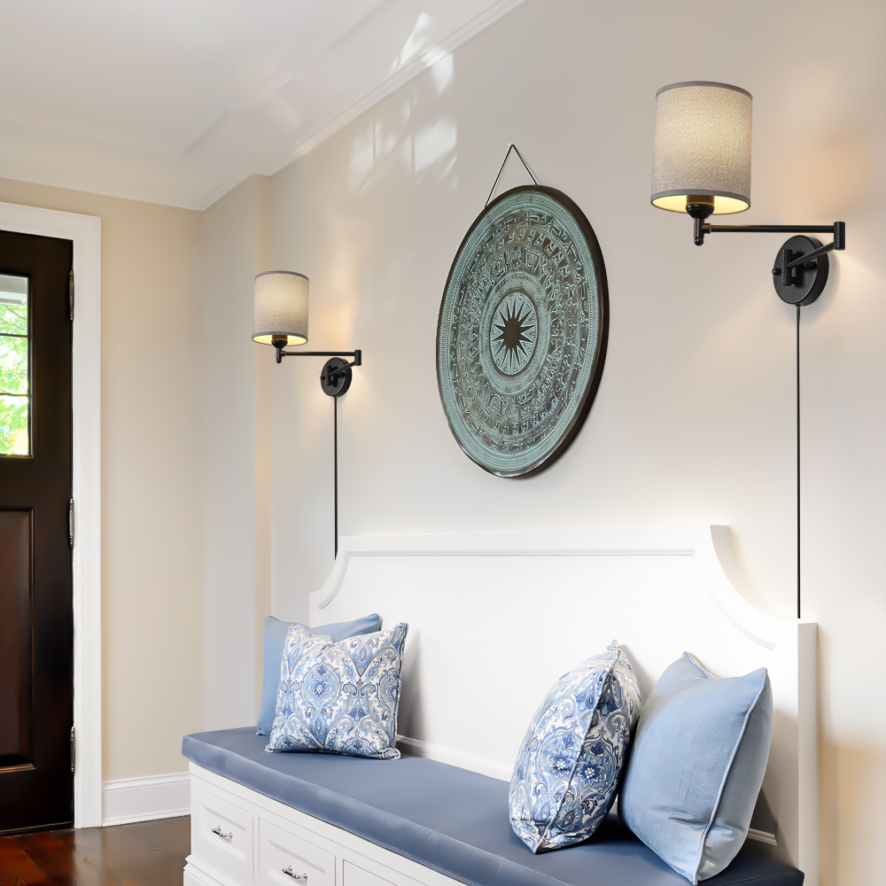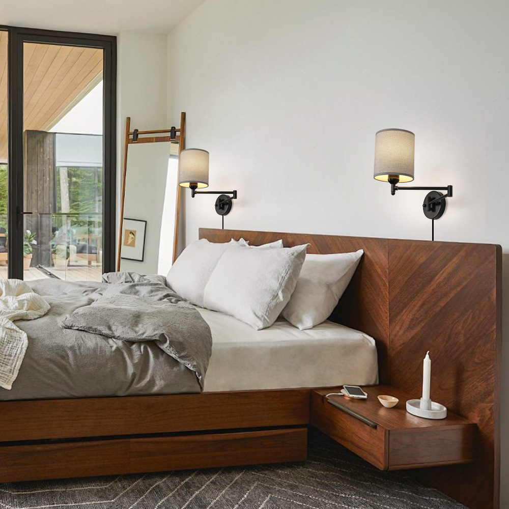 패브릭 거실등, 모던 침실 벽등, 고정형 침대 옆 벽등, 로커 암 벽등, 서재 독서용 패브릭 램프스토어 가기