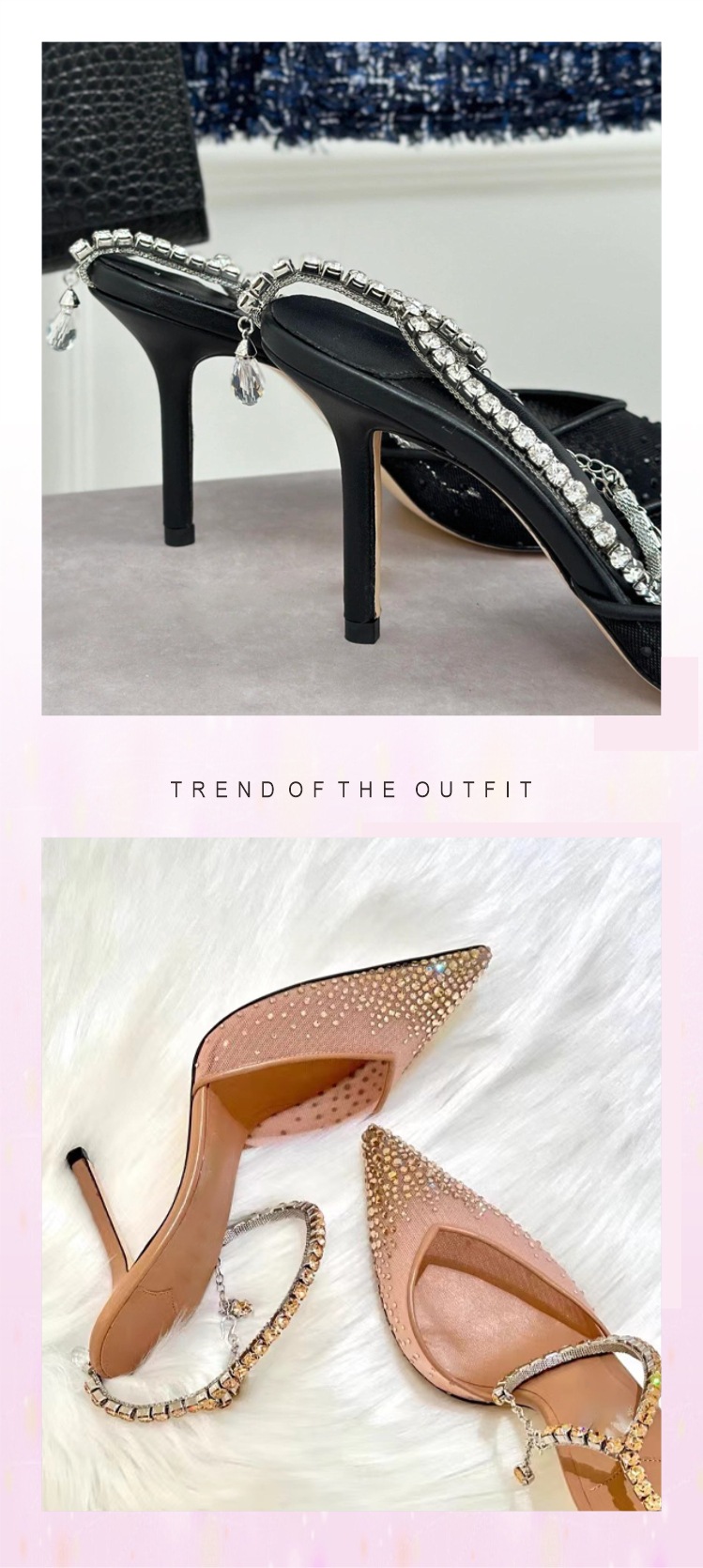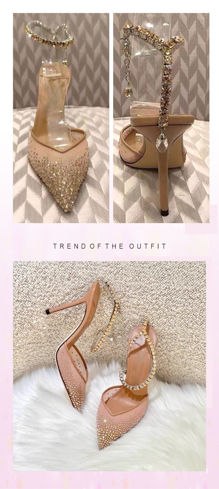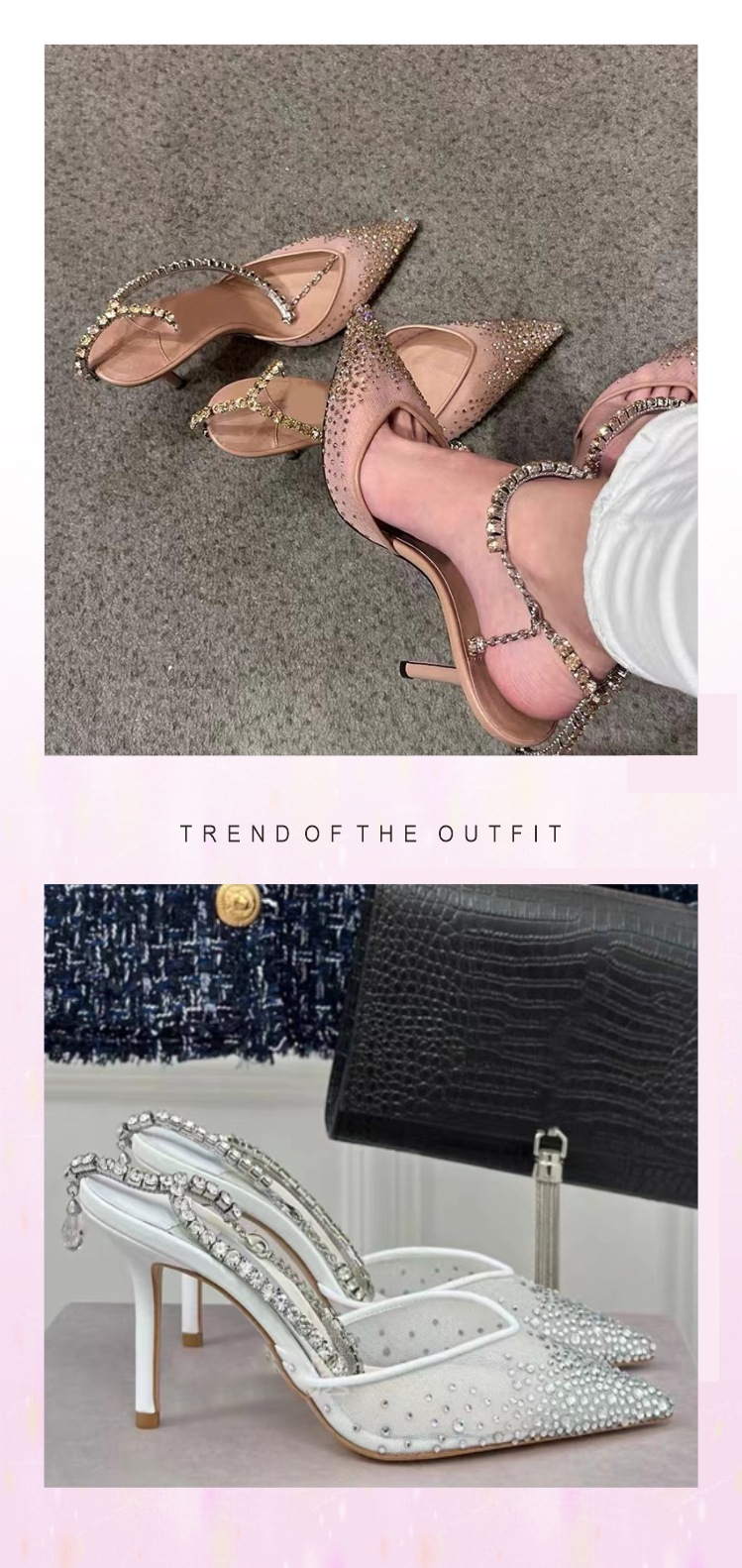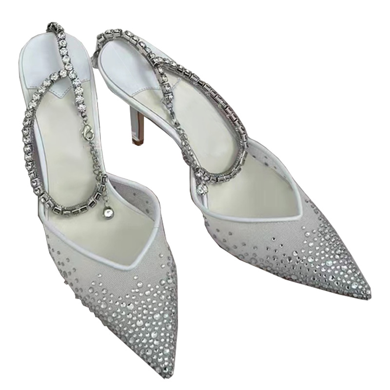 공장 맞춤형 크리스탈 하이힐 샌들 스틸레토 힐 뾰족한 크리스탈 하이힐 신발 간단한 하이힐 샌들