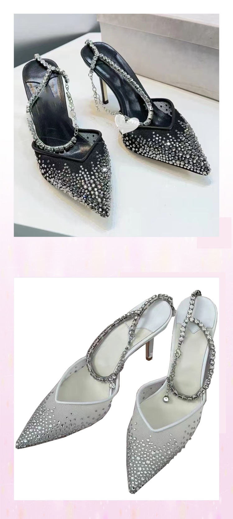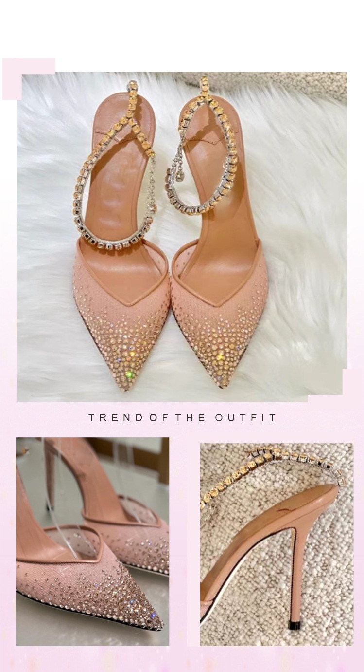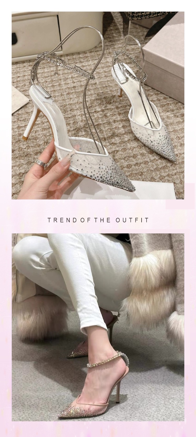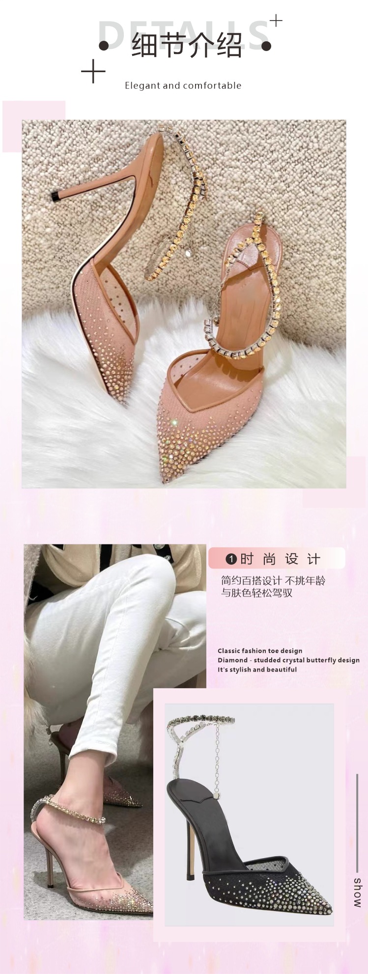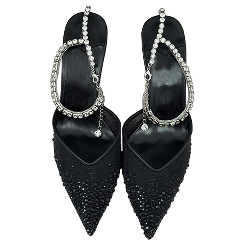공장 맞춤형 크리스탈 하이힐 샌들 스틸레토 힐 뾰족한 크리스탈 하이힐 신발 간단한 하이힐 샌들