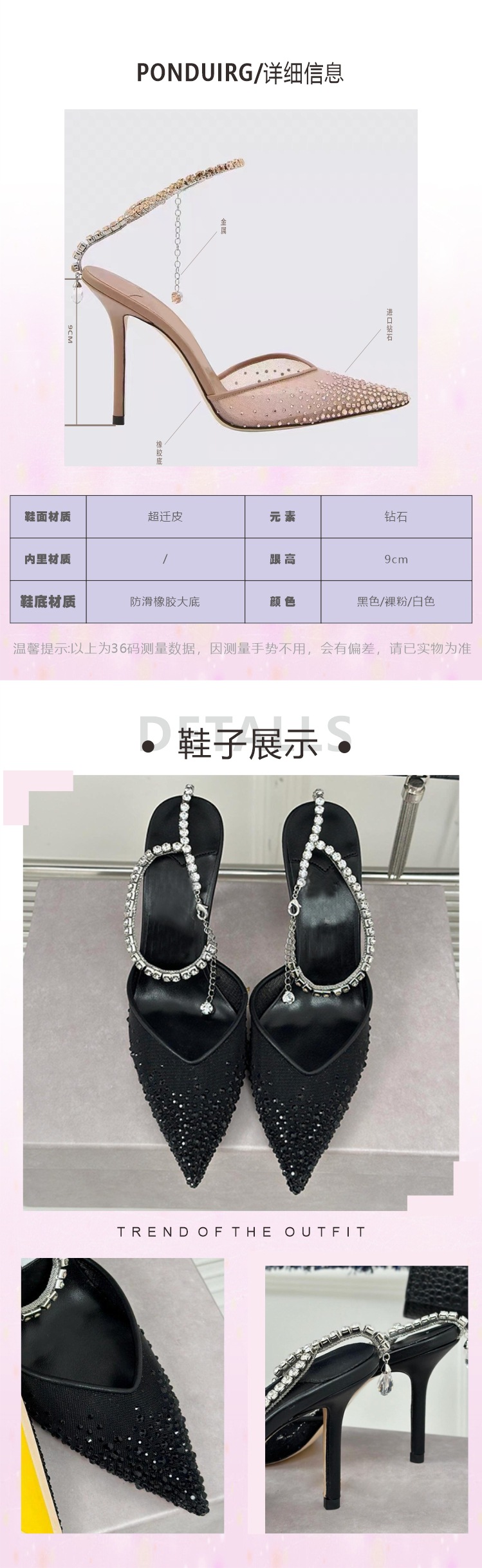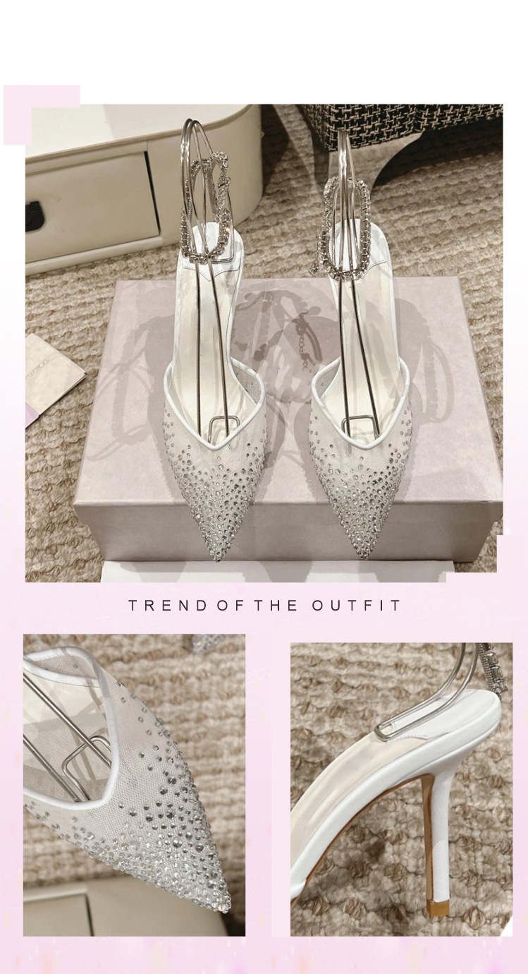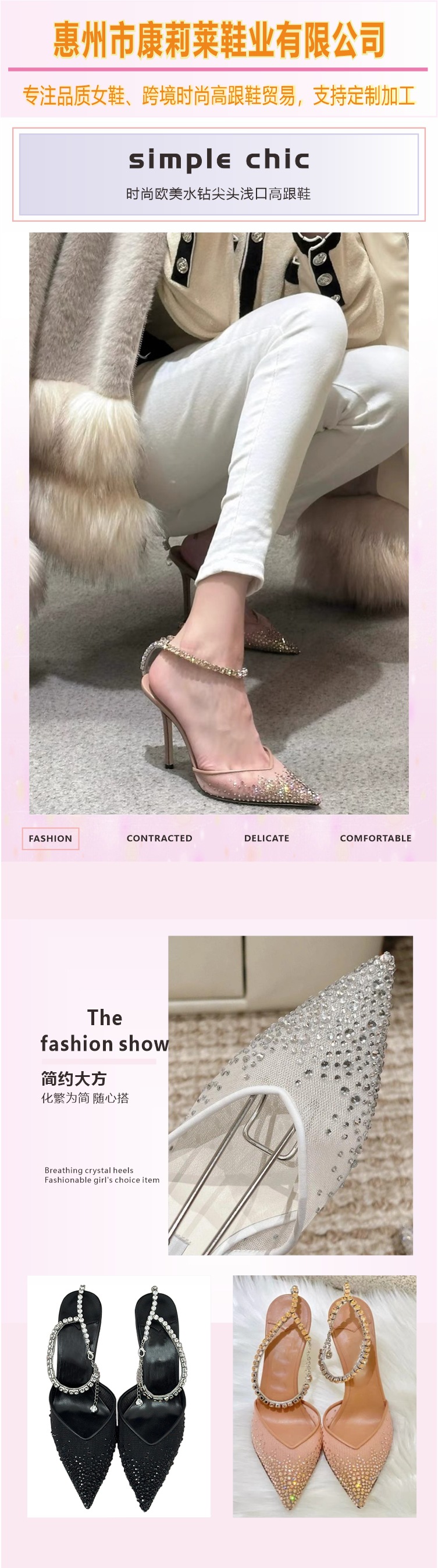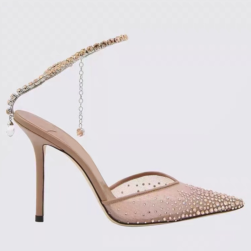 공장 맞춤형 크리스탈 하이힐 샌들 스틸레토 힐 뾰족한 크리스탈 하이힐 신발 간단한 하이힐 샌들