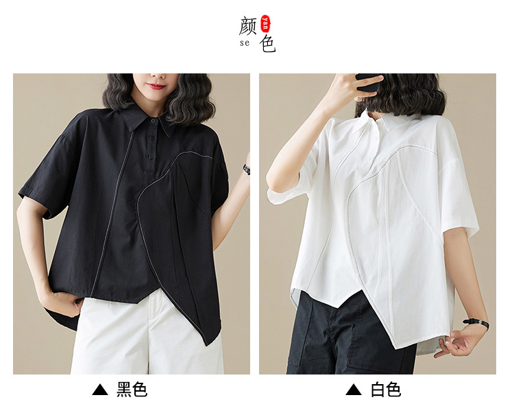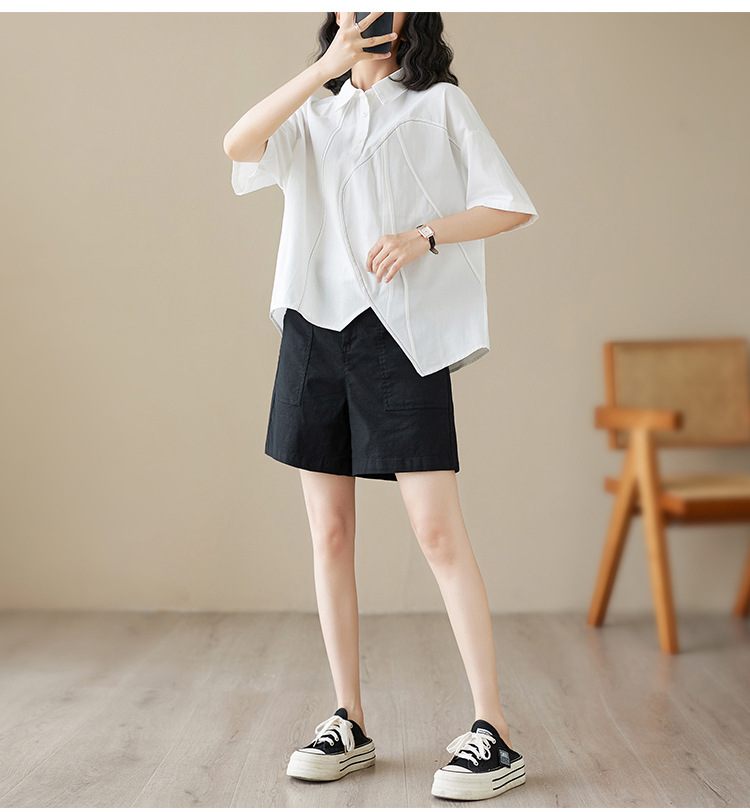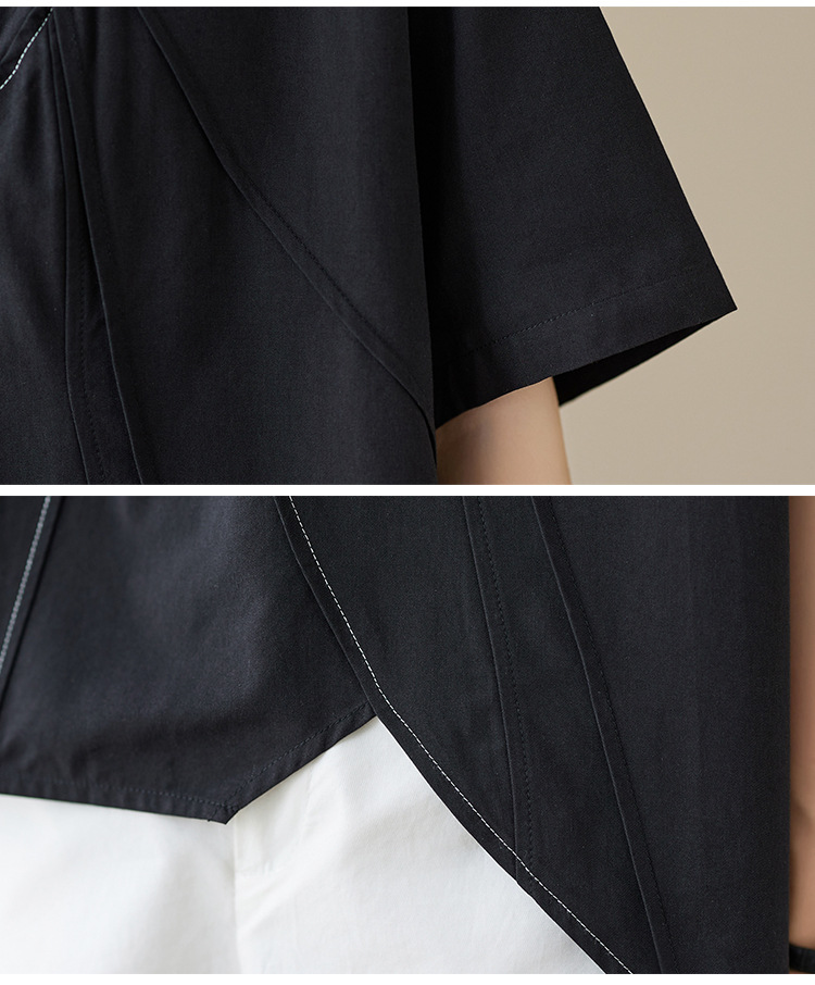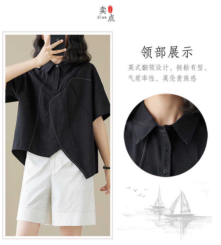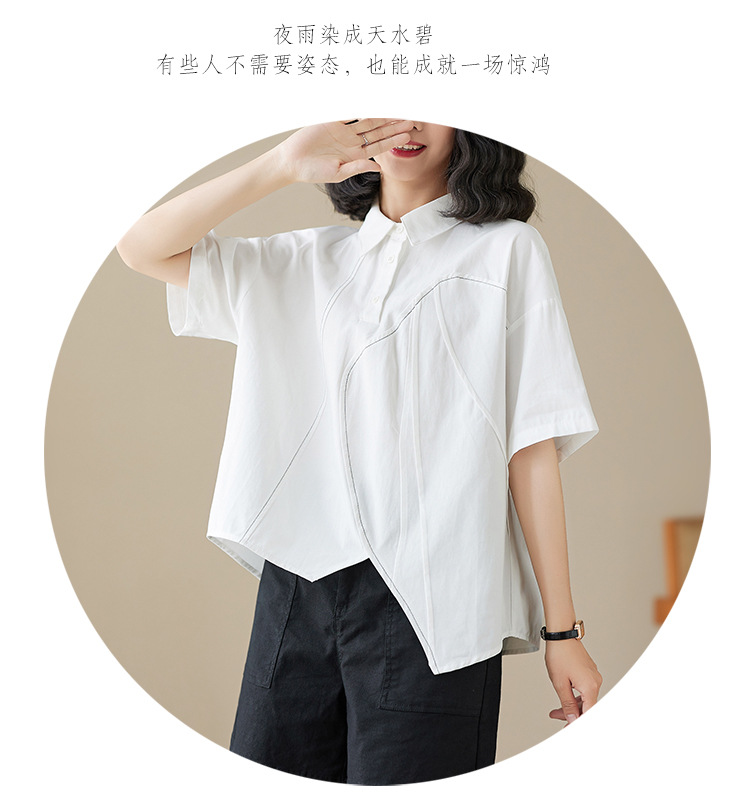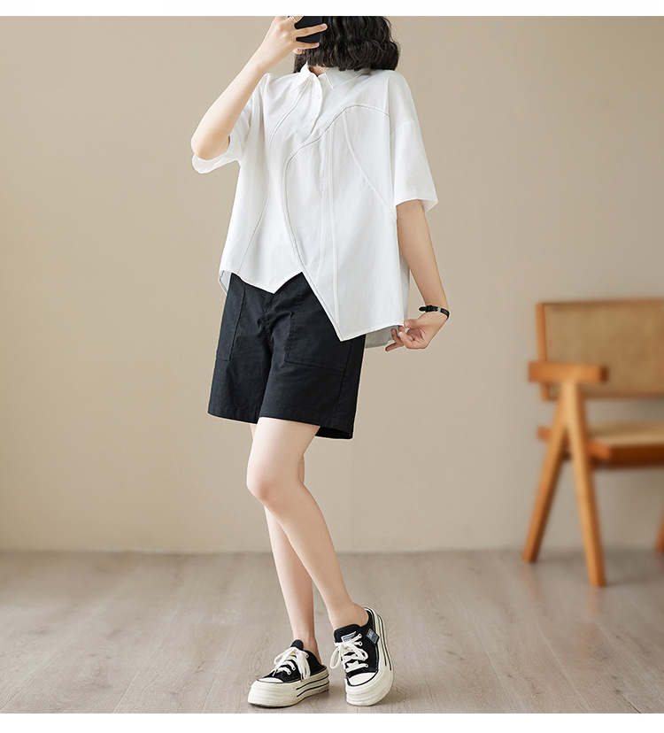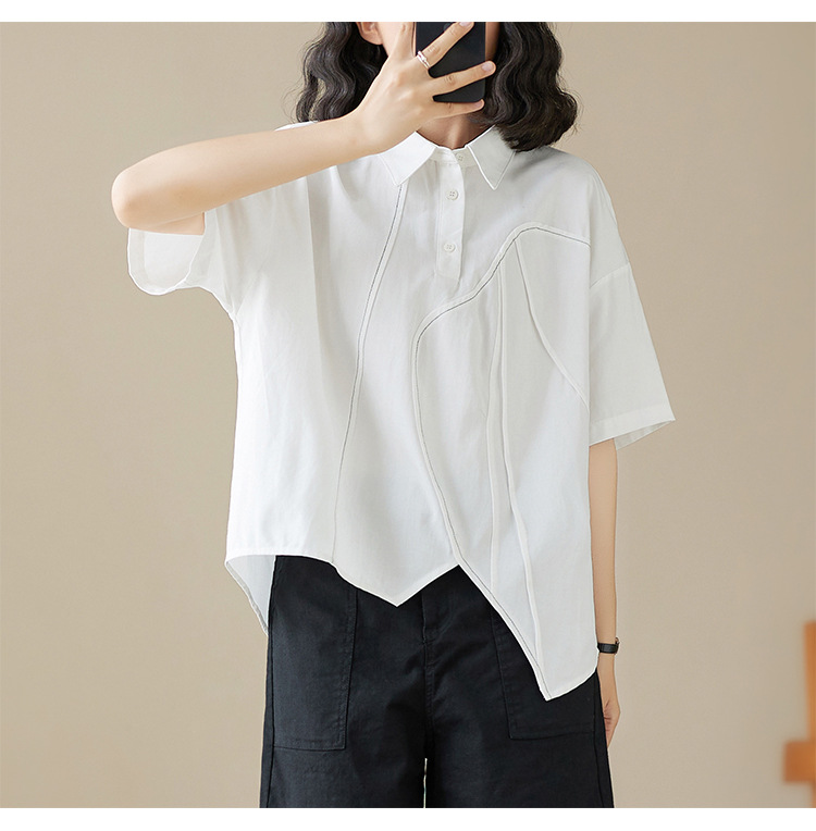 실제 촬영 2024 여름 한국 스타일 느슨한 불규칙한 틈새 셔츠 단색 캐주얼 디자인 다목적 셔츠스토어 가기