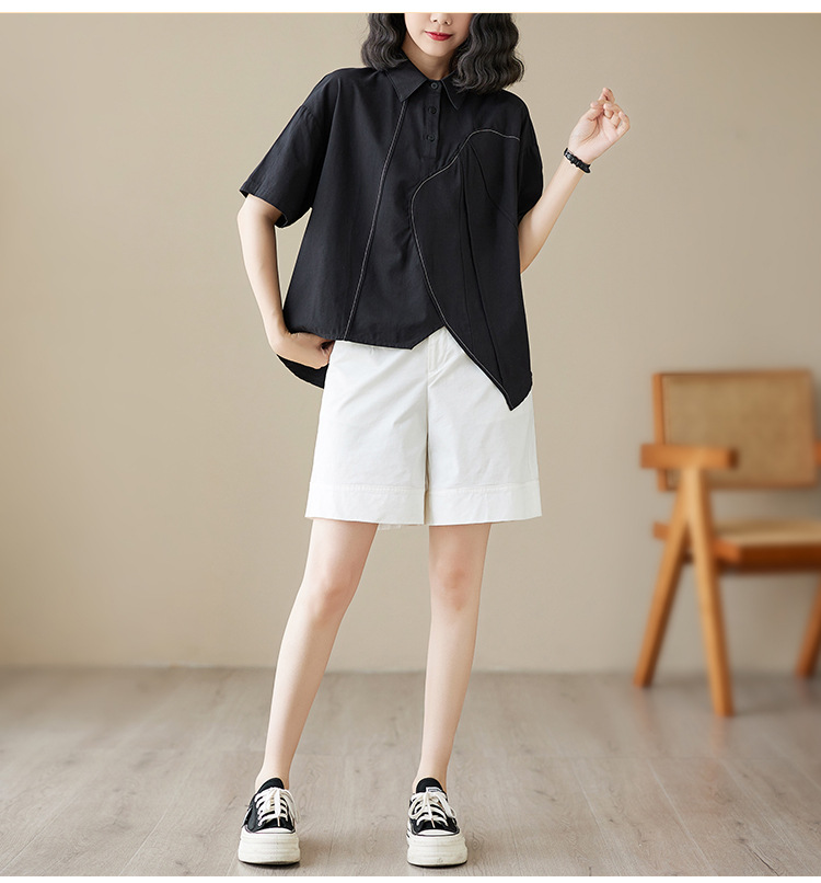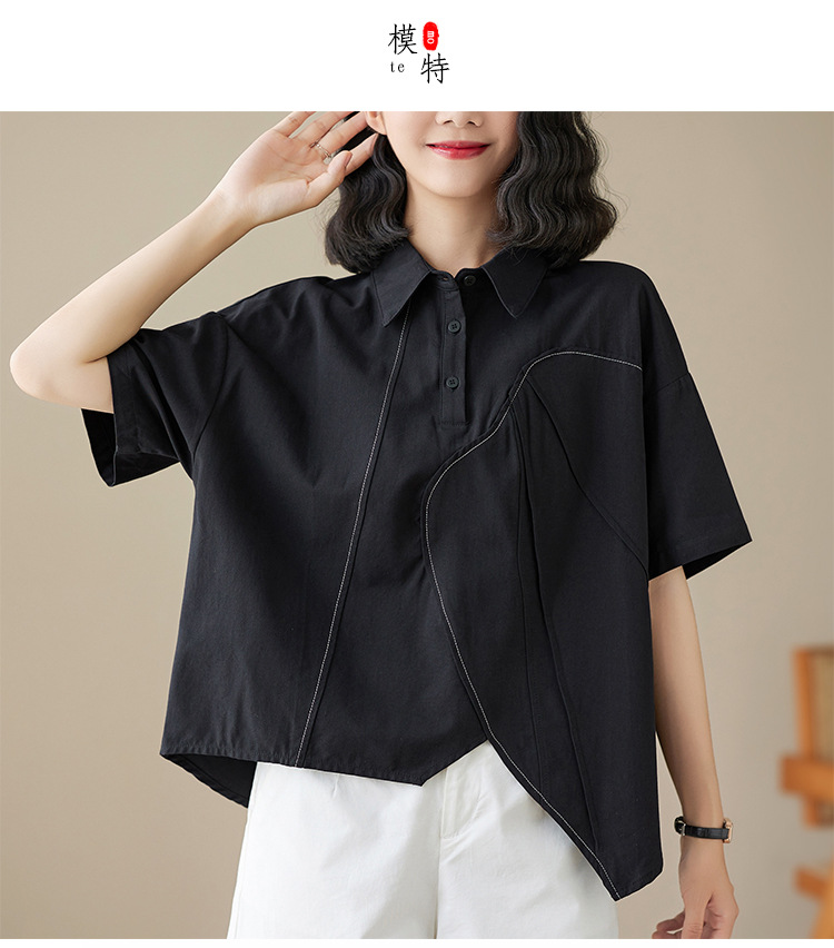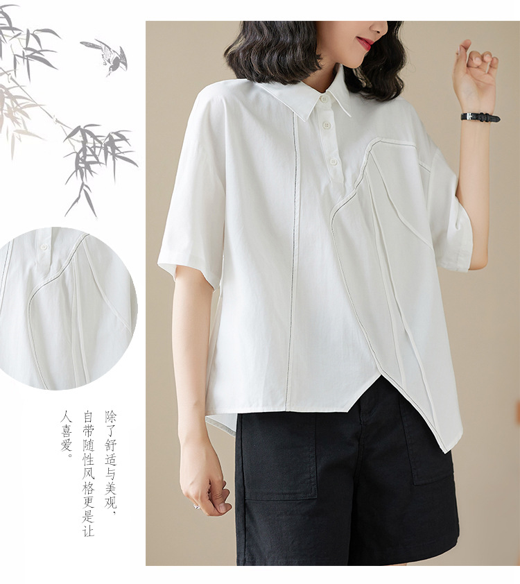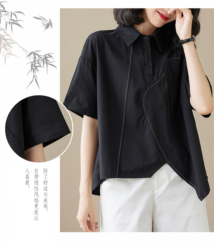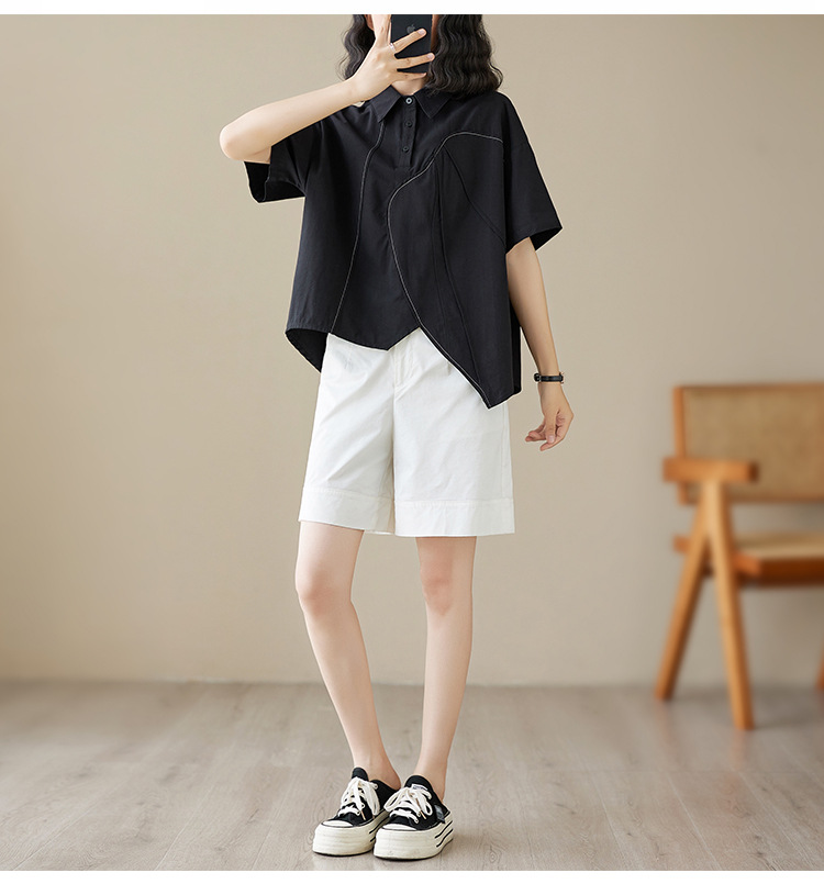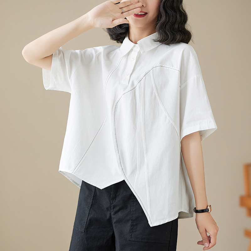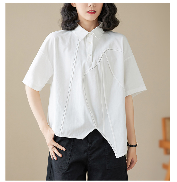 실제 촬영 2024 여름 한국 스타일 느슨한 불규칙한 틈새 셔츠 단색 캐주얼 디자인 다목적 셔츠스토어 가기