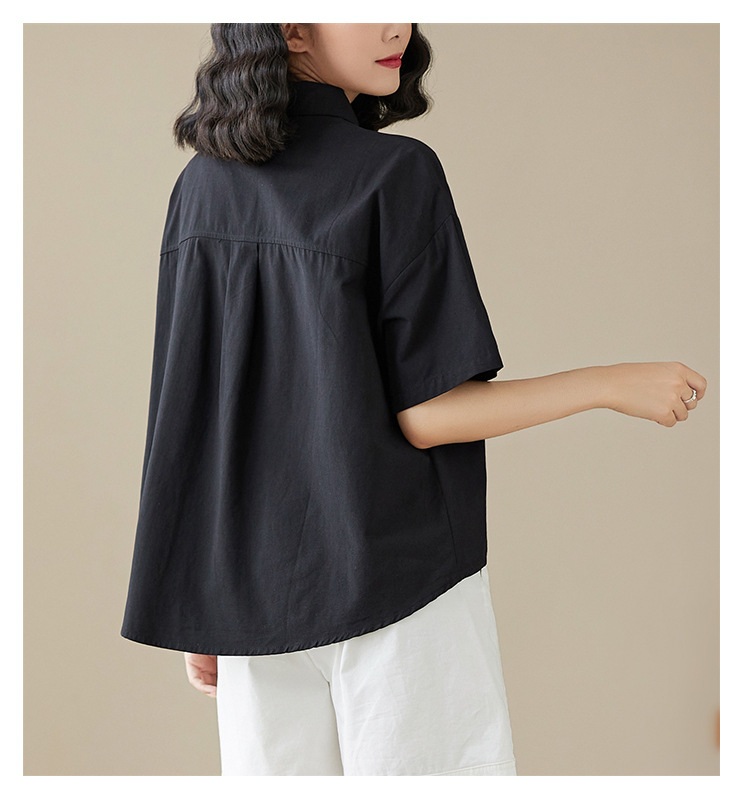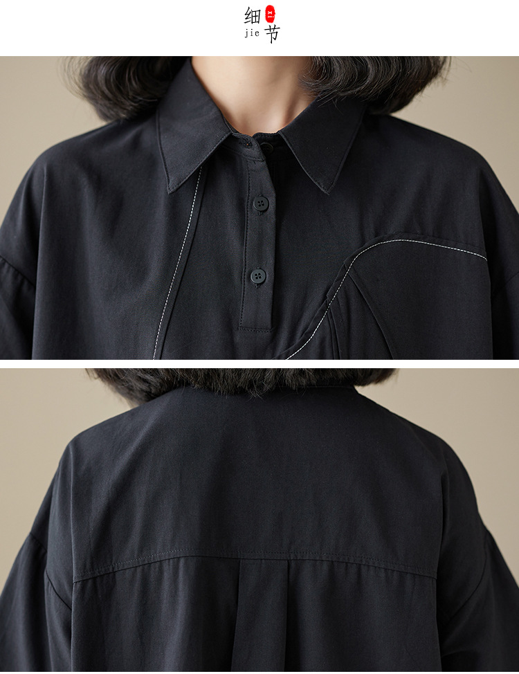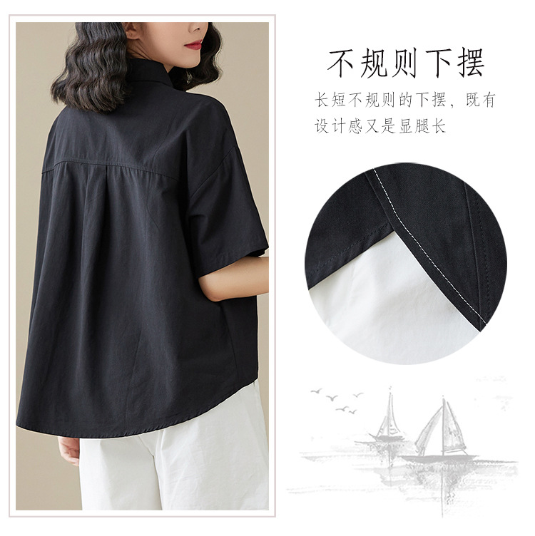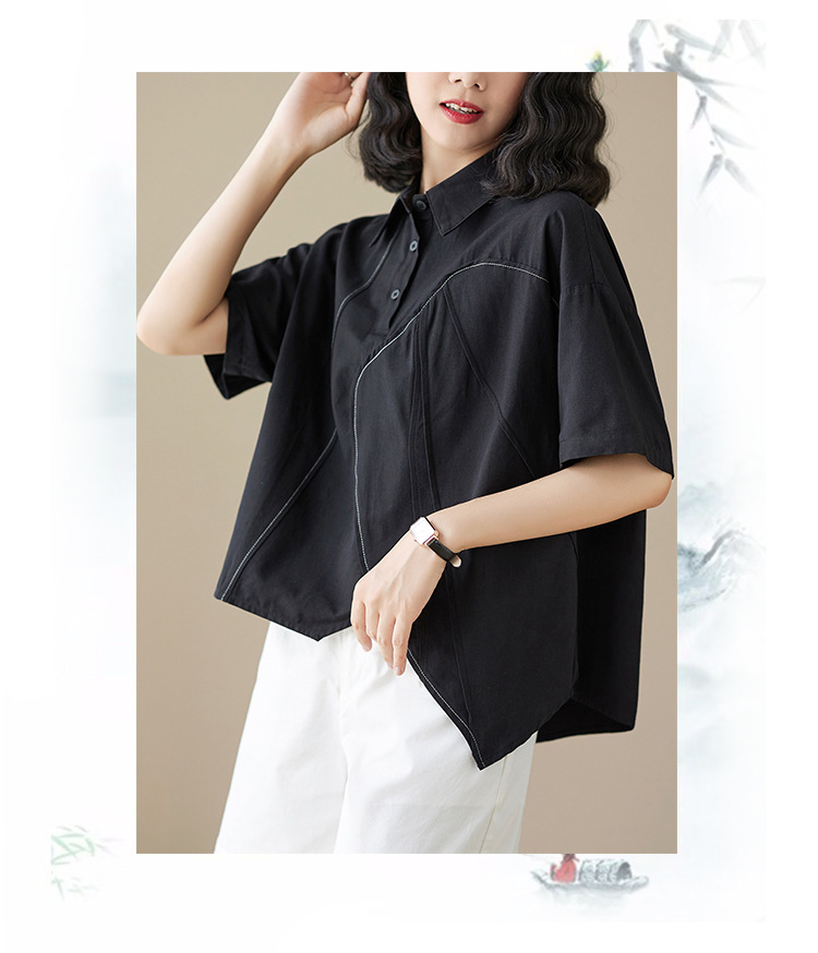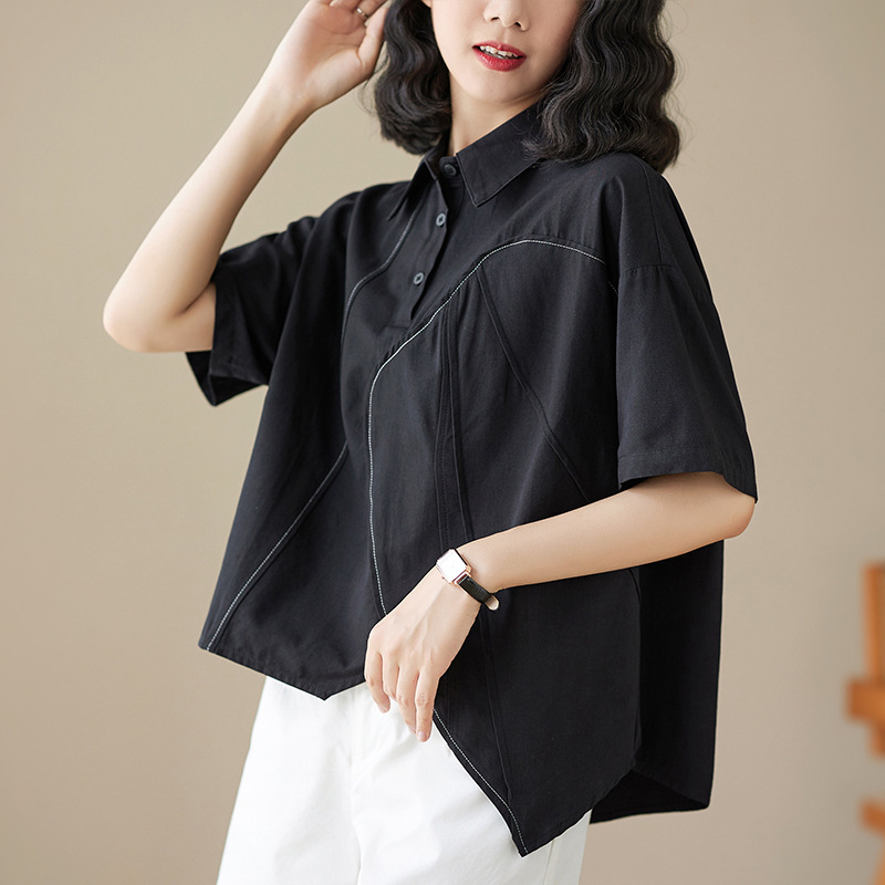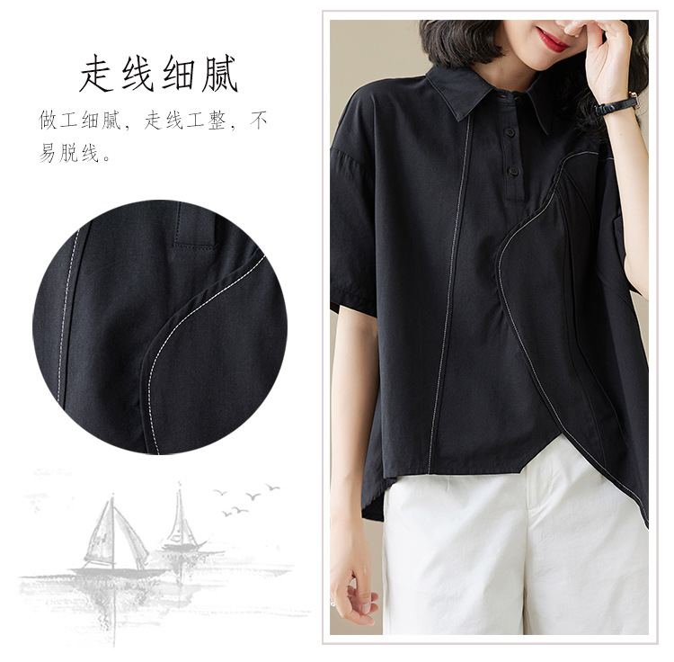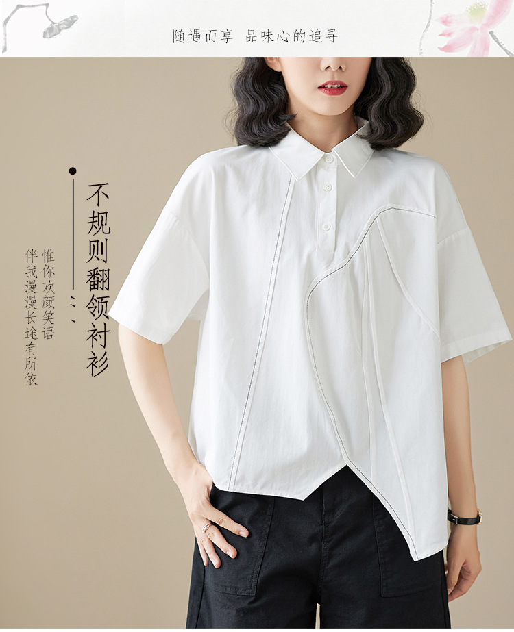 실제 촬영 2024 여름 한국 스타일 느슨한 불규칙한 틈새 셔츠 단색 캐주얼 디자인 다목적 셔츠스토어 가기