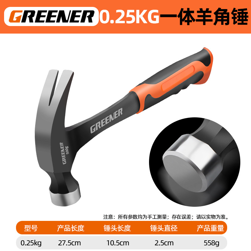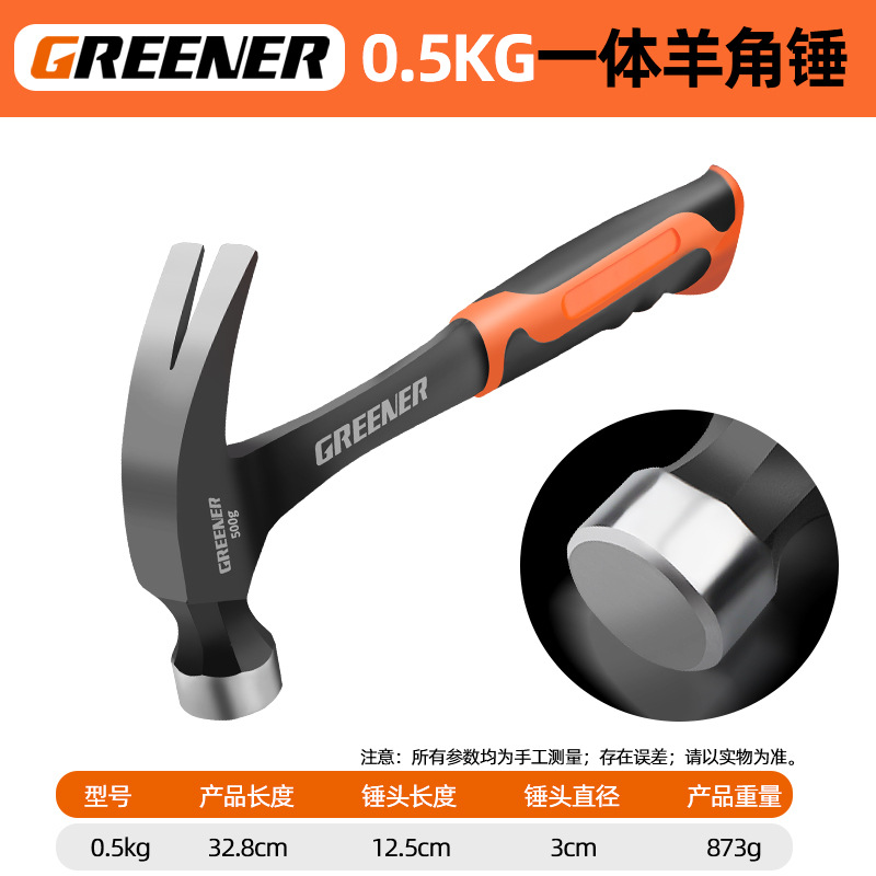 그린 포레스트 클로 해머 통합 성형 철 망치 도구 망치 미니 가정용 소형 해머 목공 특수 해머