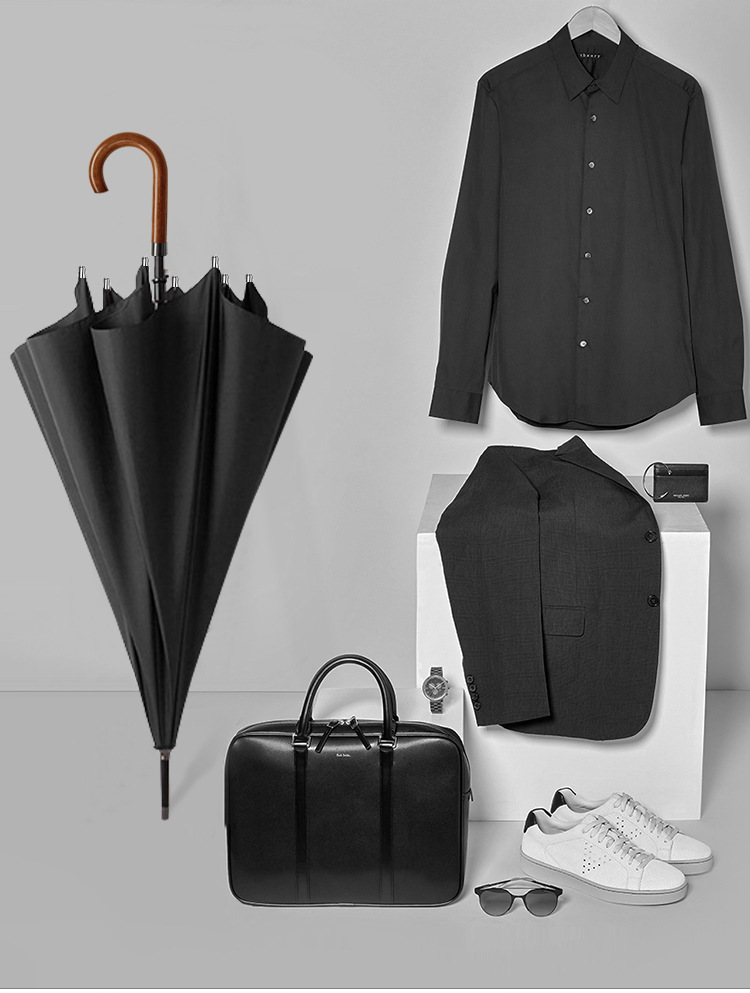 • 16본 곡선 핸들 원목 280t 임팩트 천 - 비즈니스 블랙