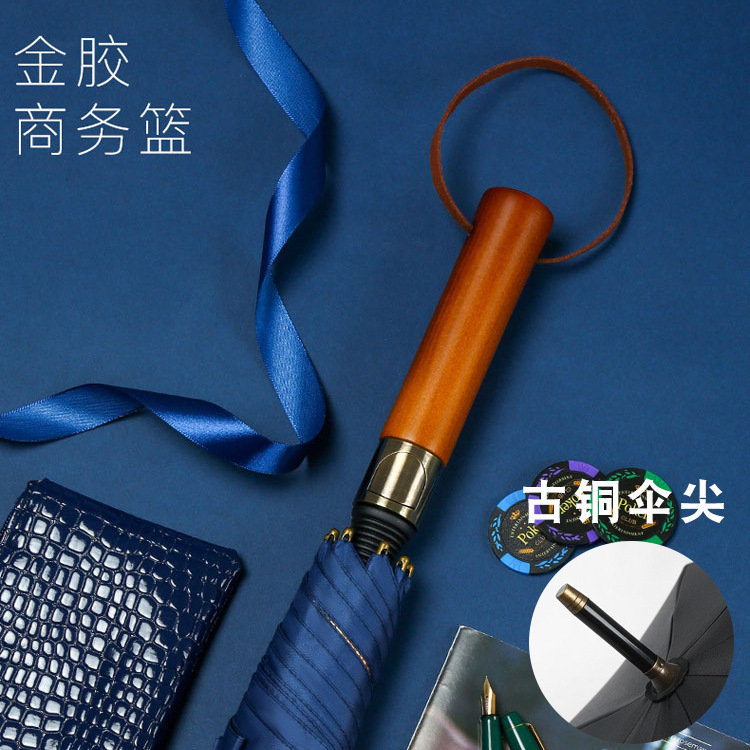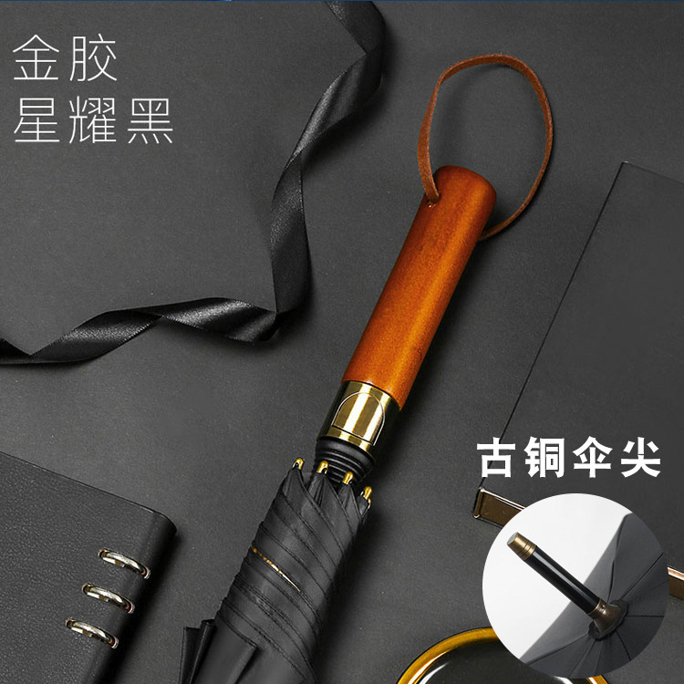 청동 솔리드 우드 핸들 골프 우산 남성 비즈니스 선물 맞춤형 골드 접착제 광고 우산 도매 스트레이트 로드 긴 핸들 우산